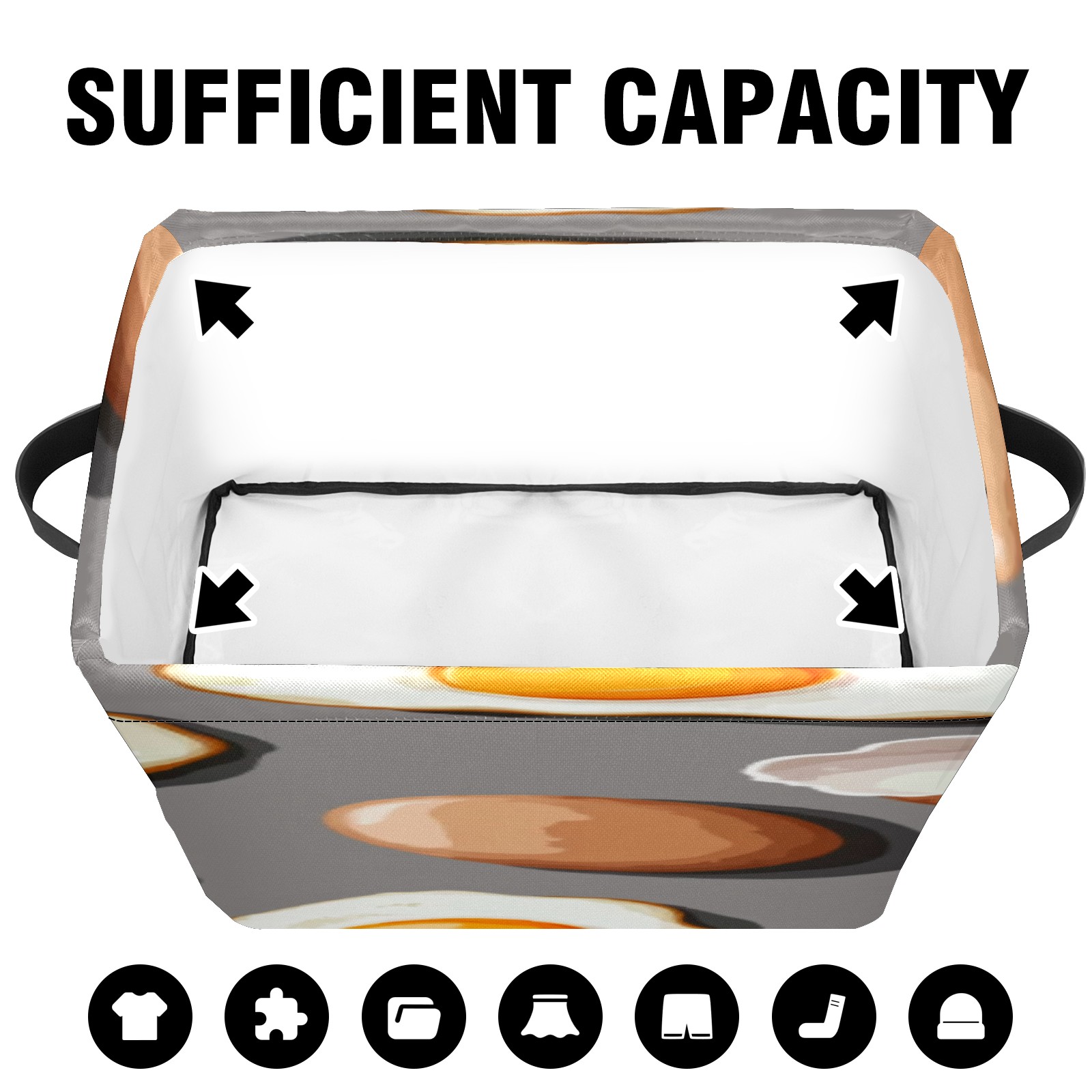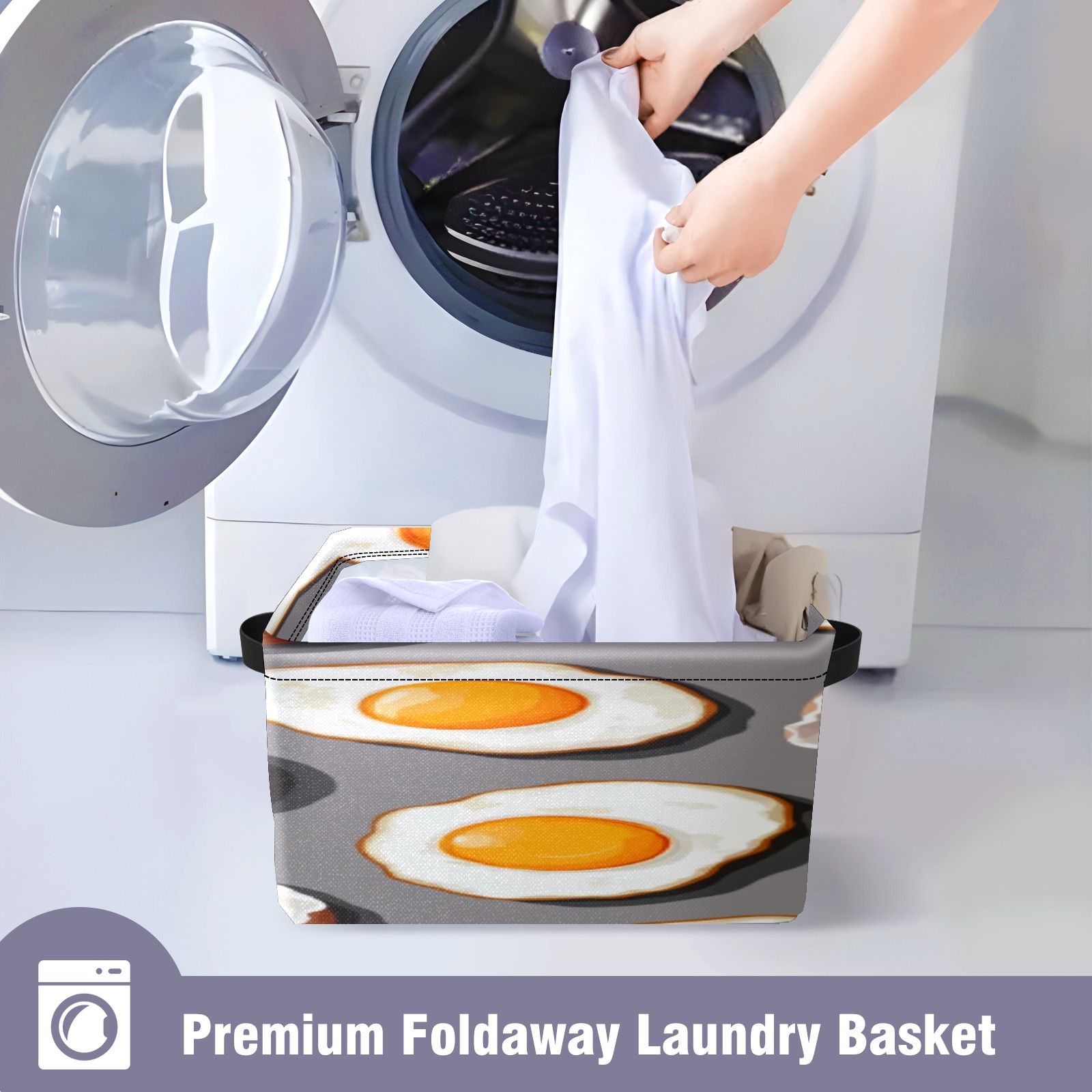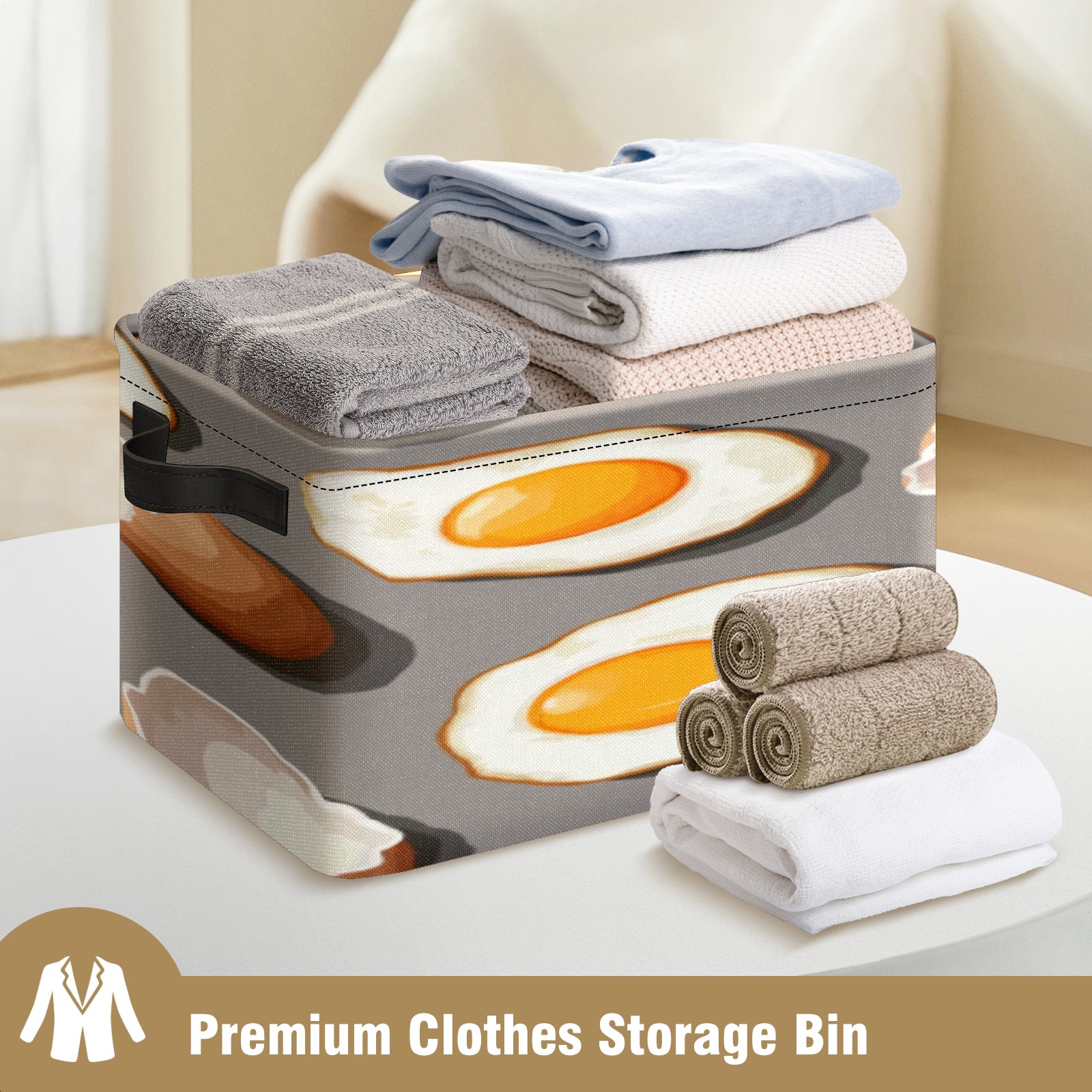 Foldable and Stackable Fabric Storage Basket for Home Organization with Handles, Decorative Closet Bins for Shelves, Laundry, and Toy Storage( Fried Eggs And Eggshells)