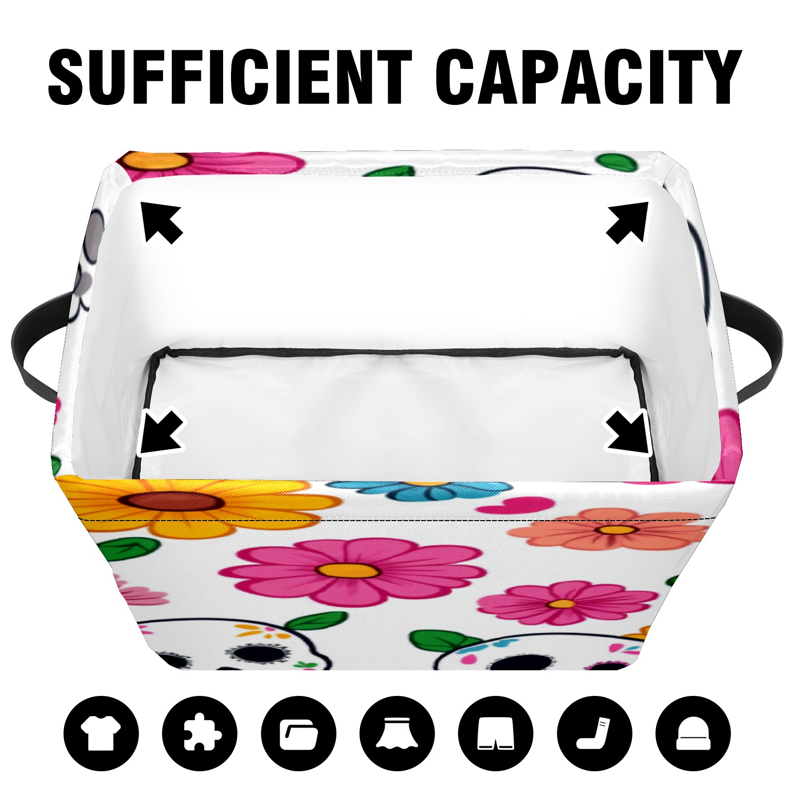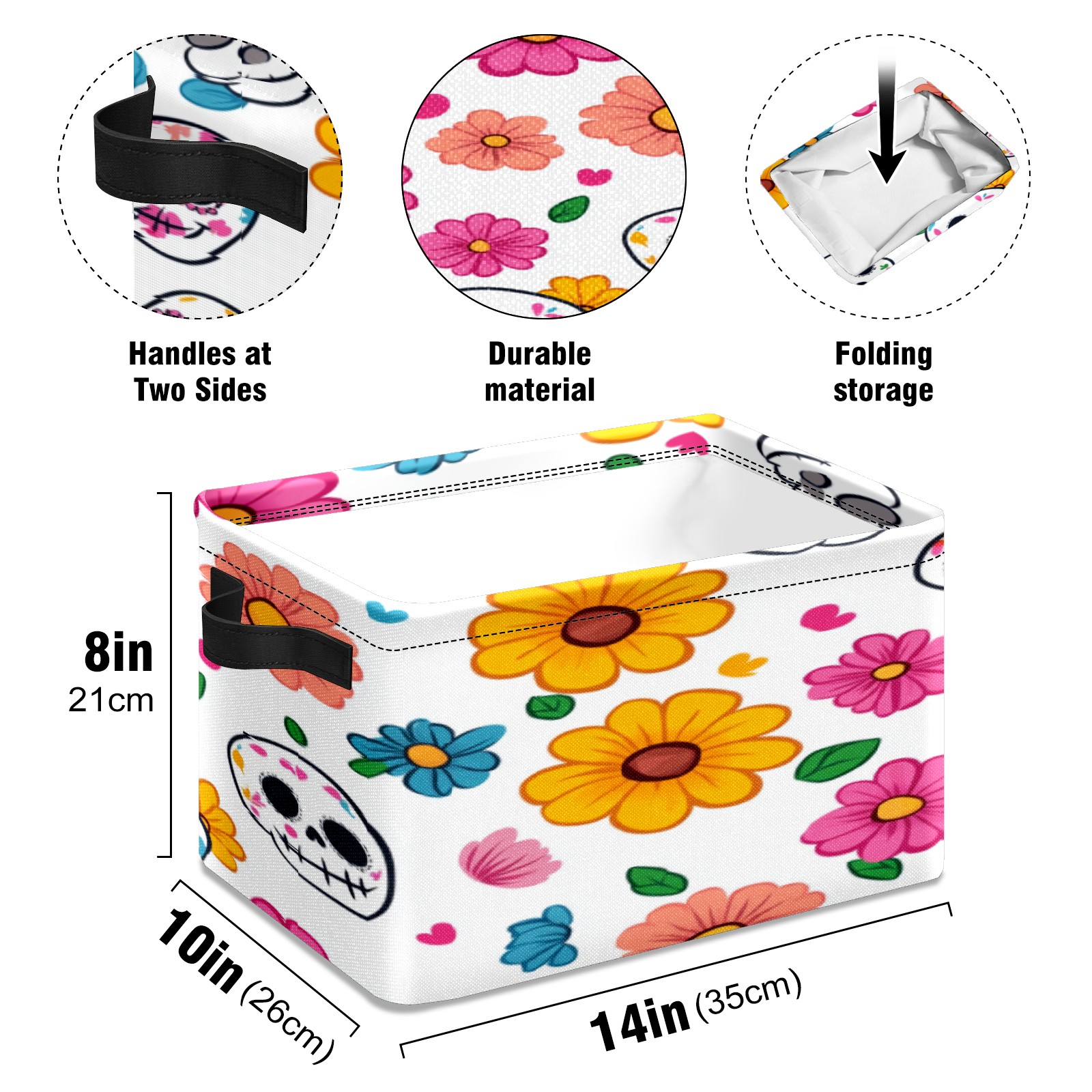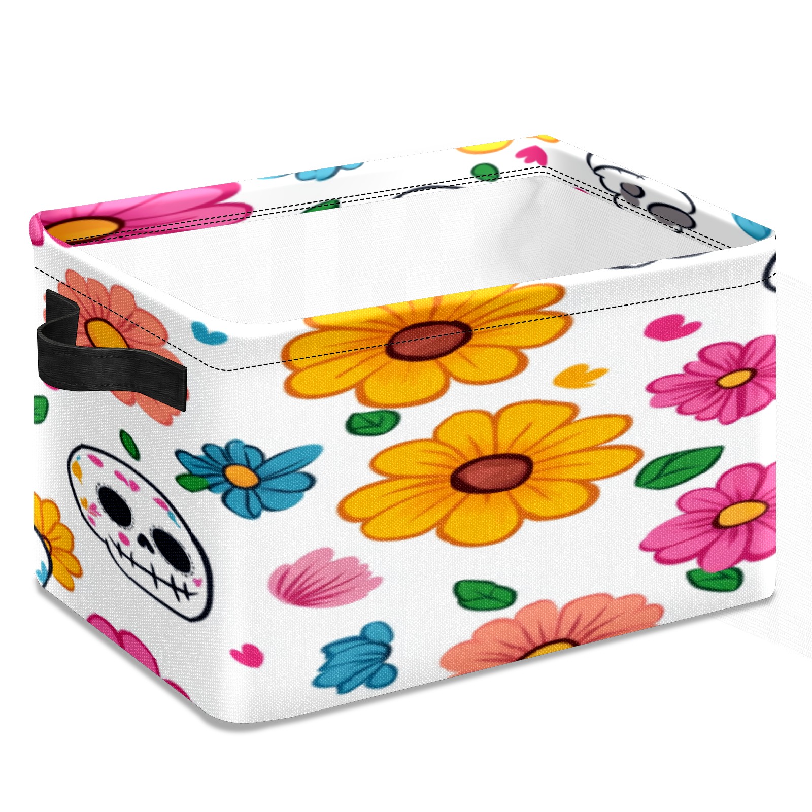 Foldable and Stackable Fabric Storage Basket for Home Organization with Handles, Decorative Closet Bins for Shelves, Laundry, and Toy Storage( Sugar Skulls)