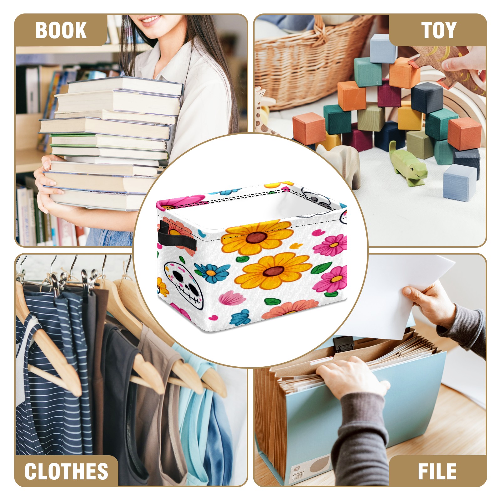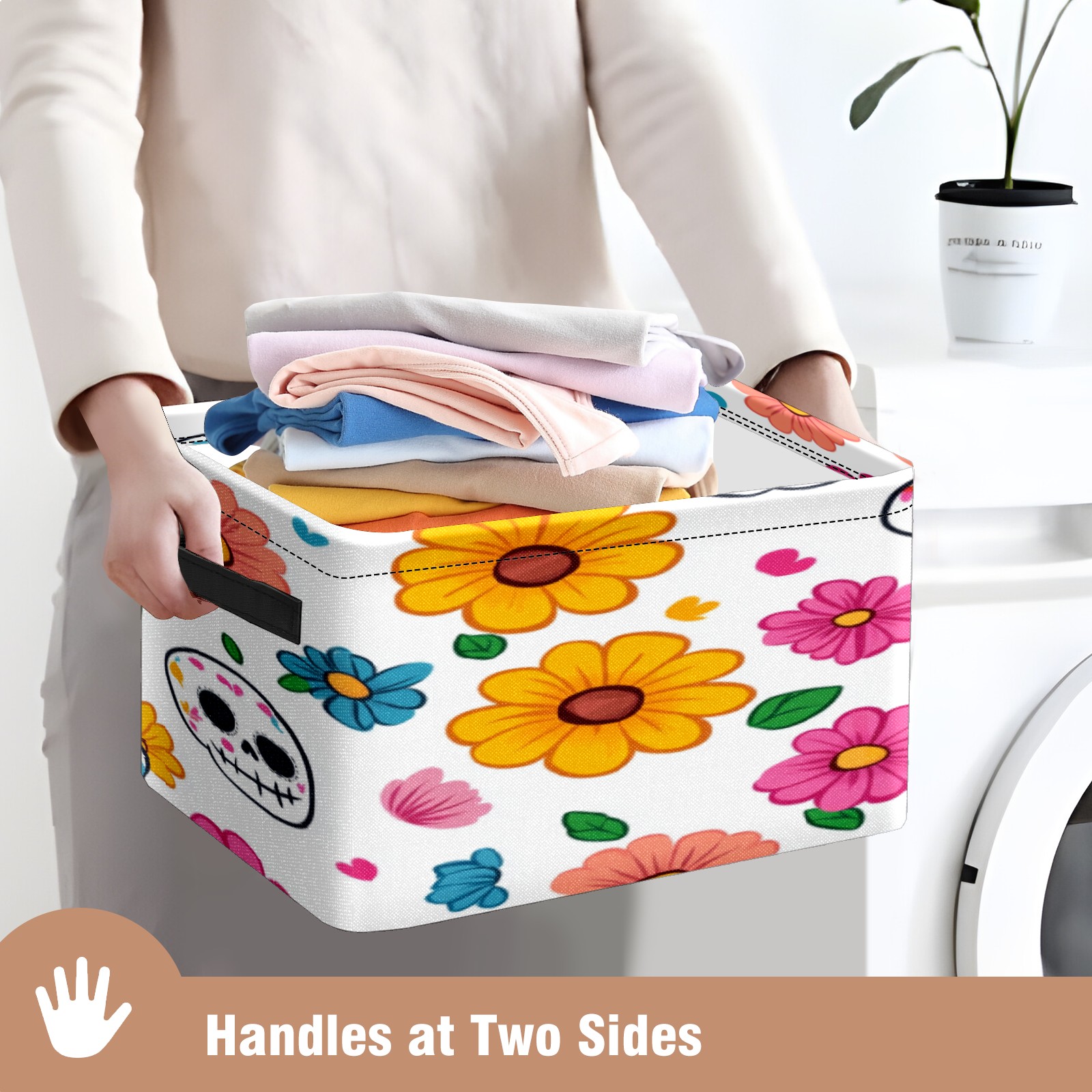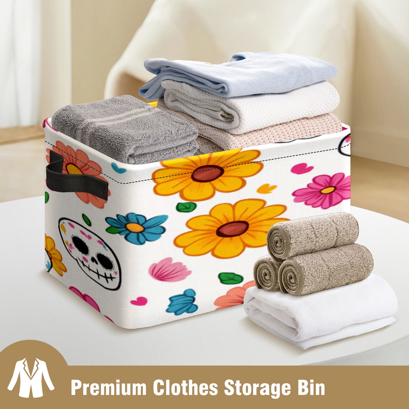 Foldable and Stackable Fabric Storage Basket for Home Organization with Handles, Decorative Closet Bins for Shelves, Laundry, and Toy Storage( Sugar Skulls)