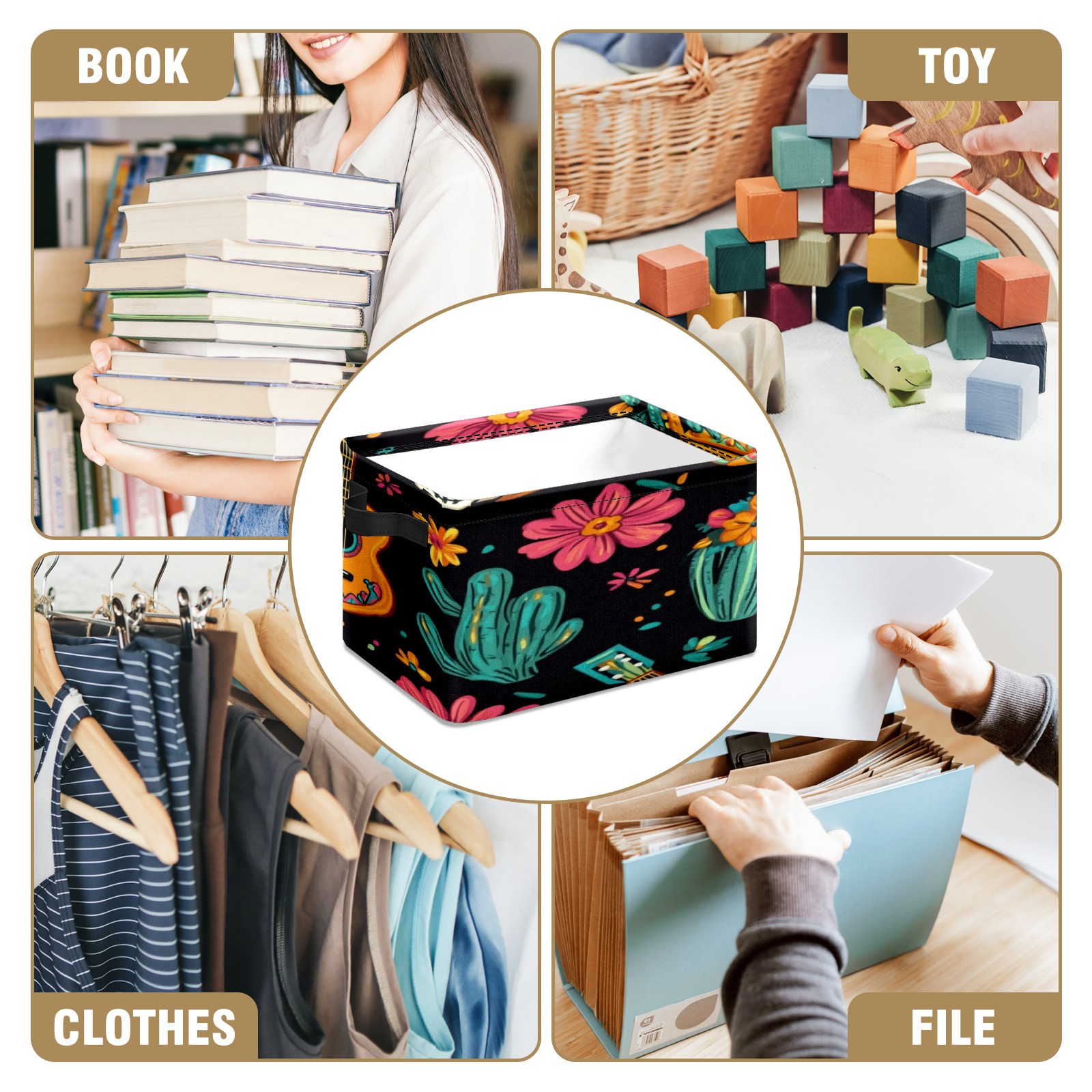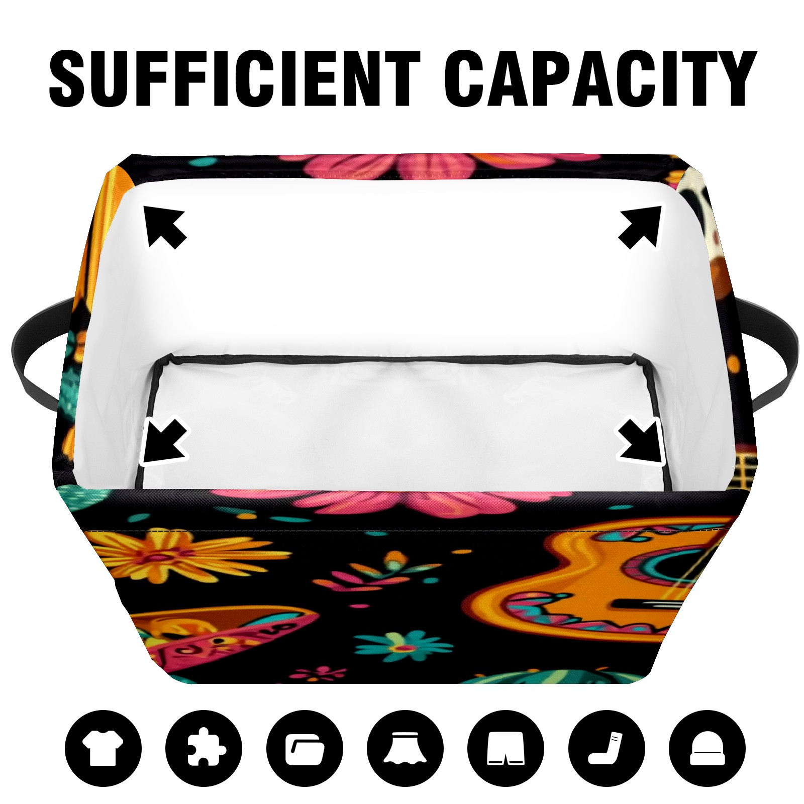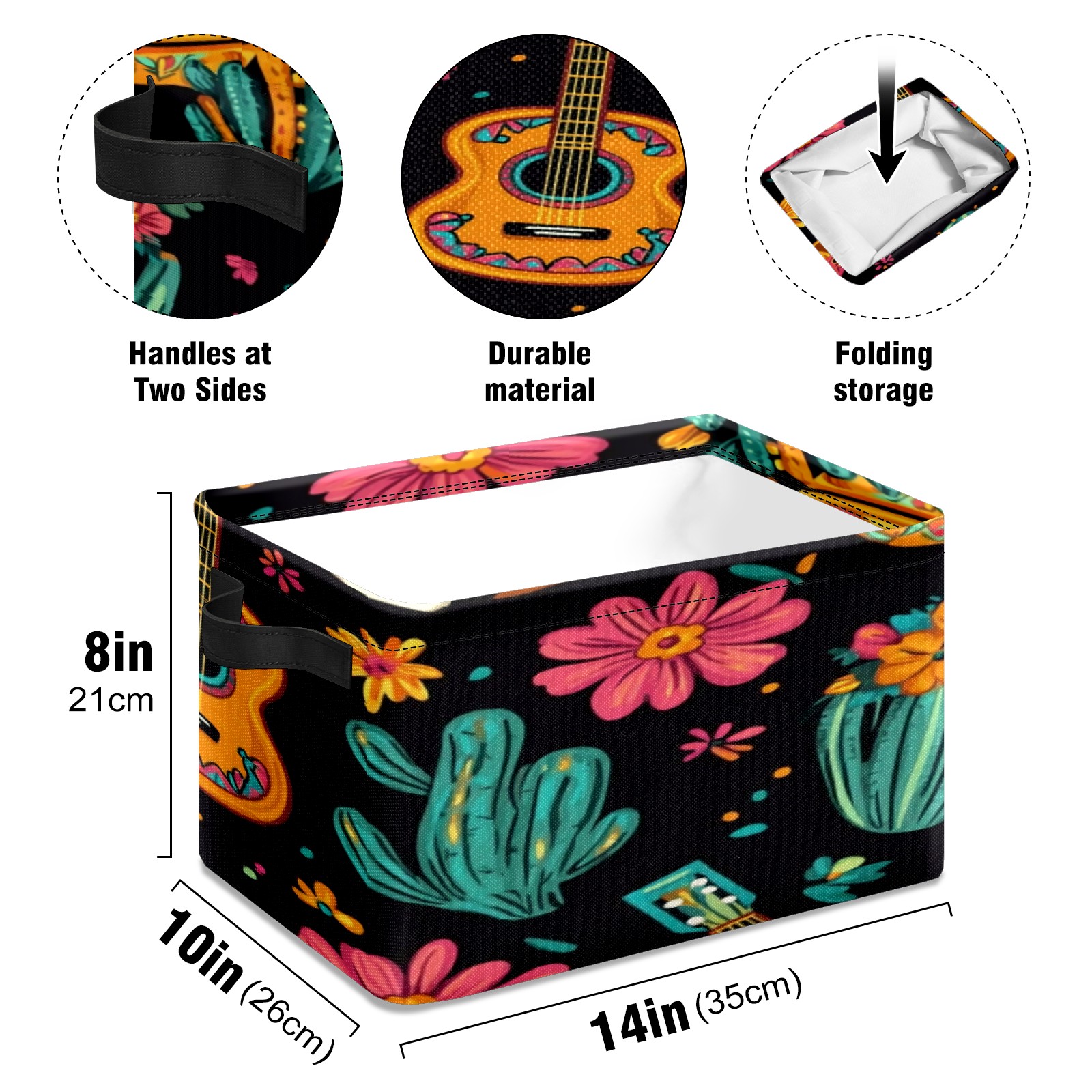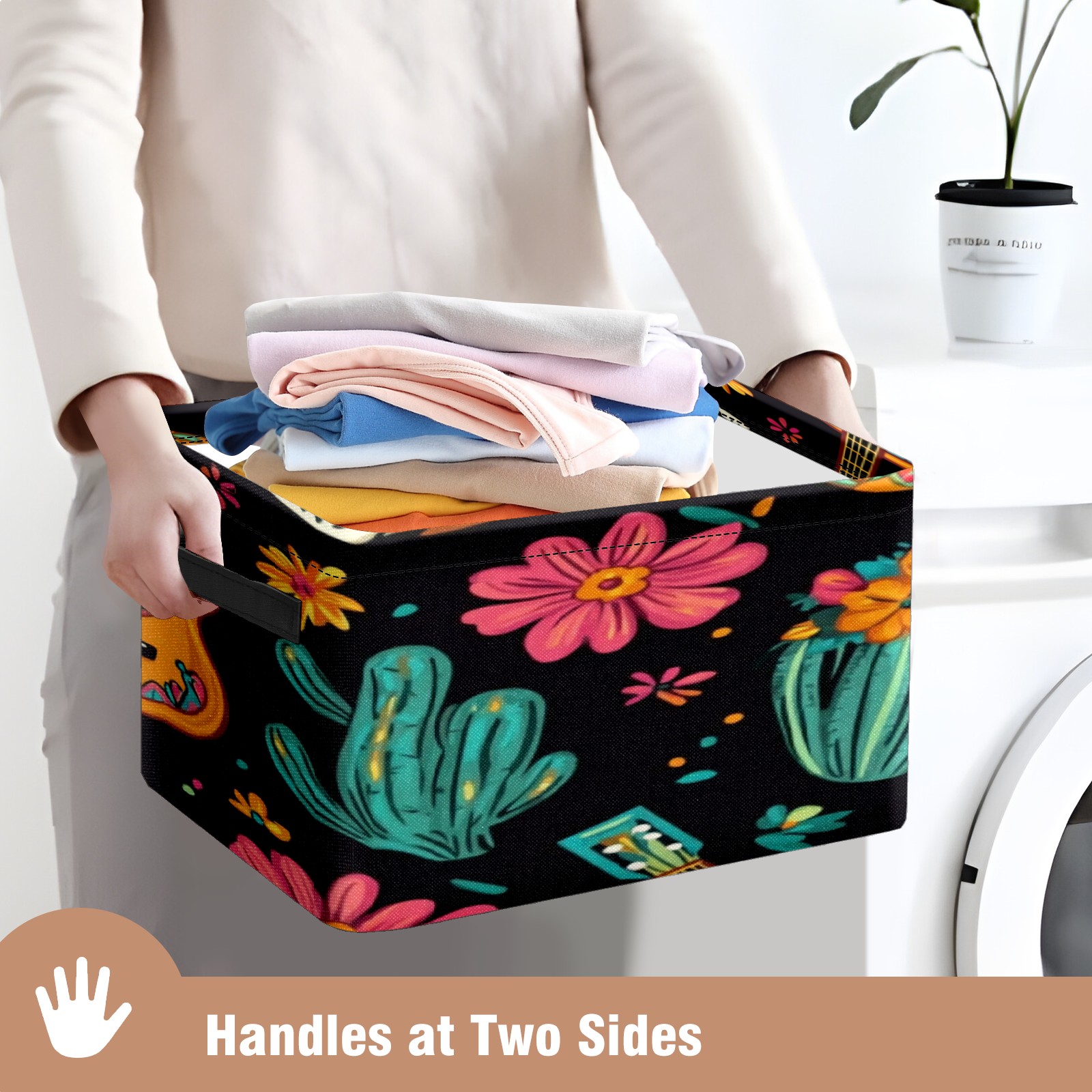 Foldable and Stackable Fabric Storage Basket for Home Organization with Handles, Decorative Closet Bins for Shelves, Laundry, and Toy Storage( Mexican Seamless Pattern)
