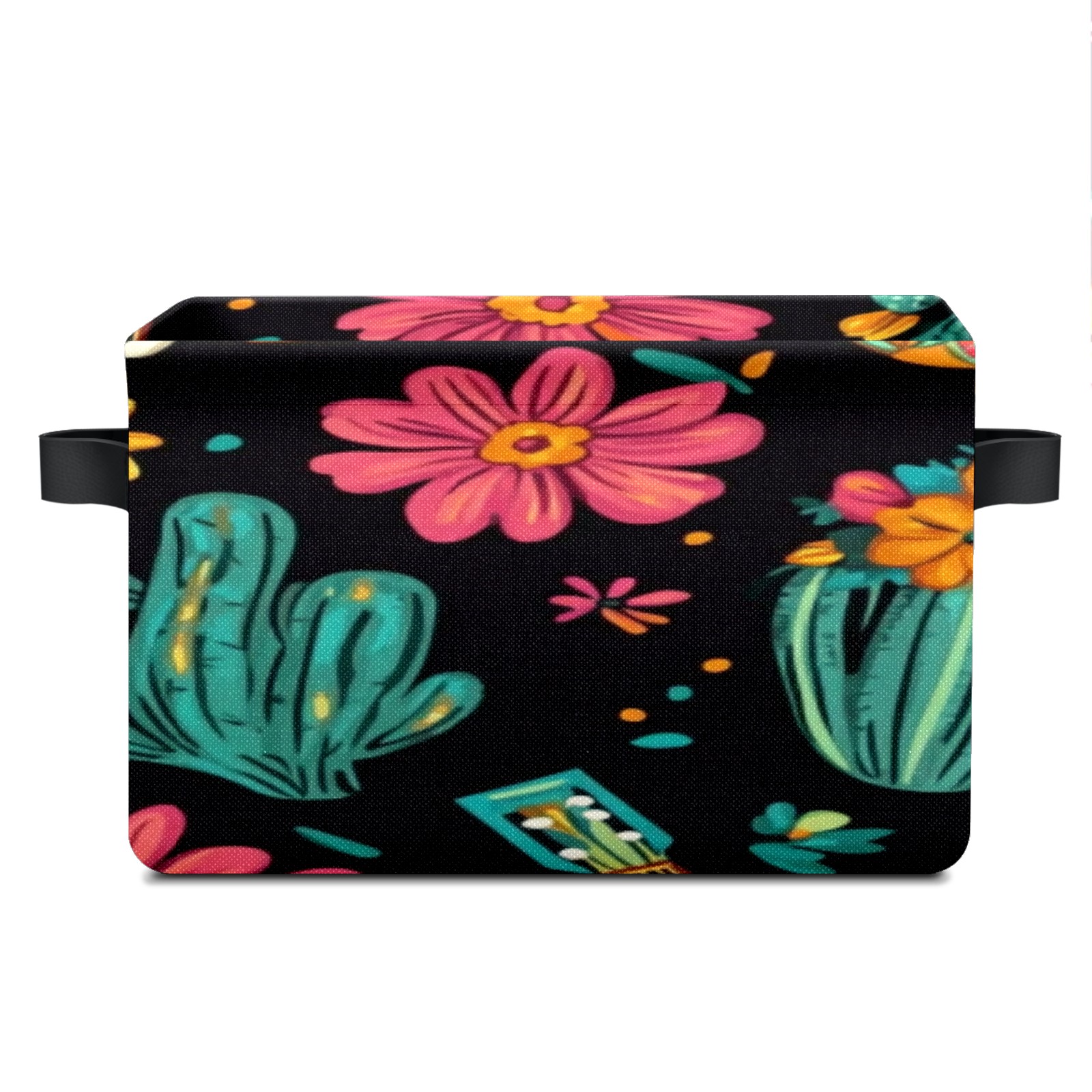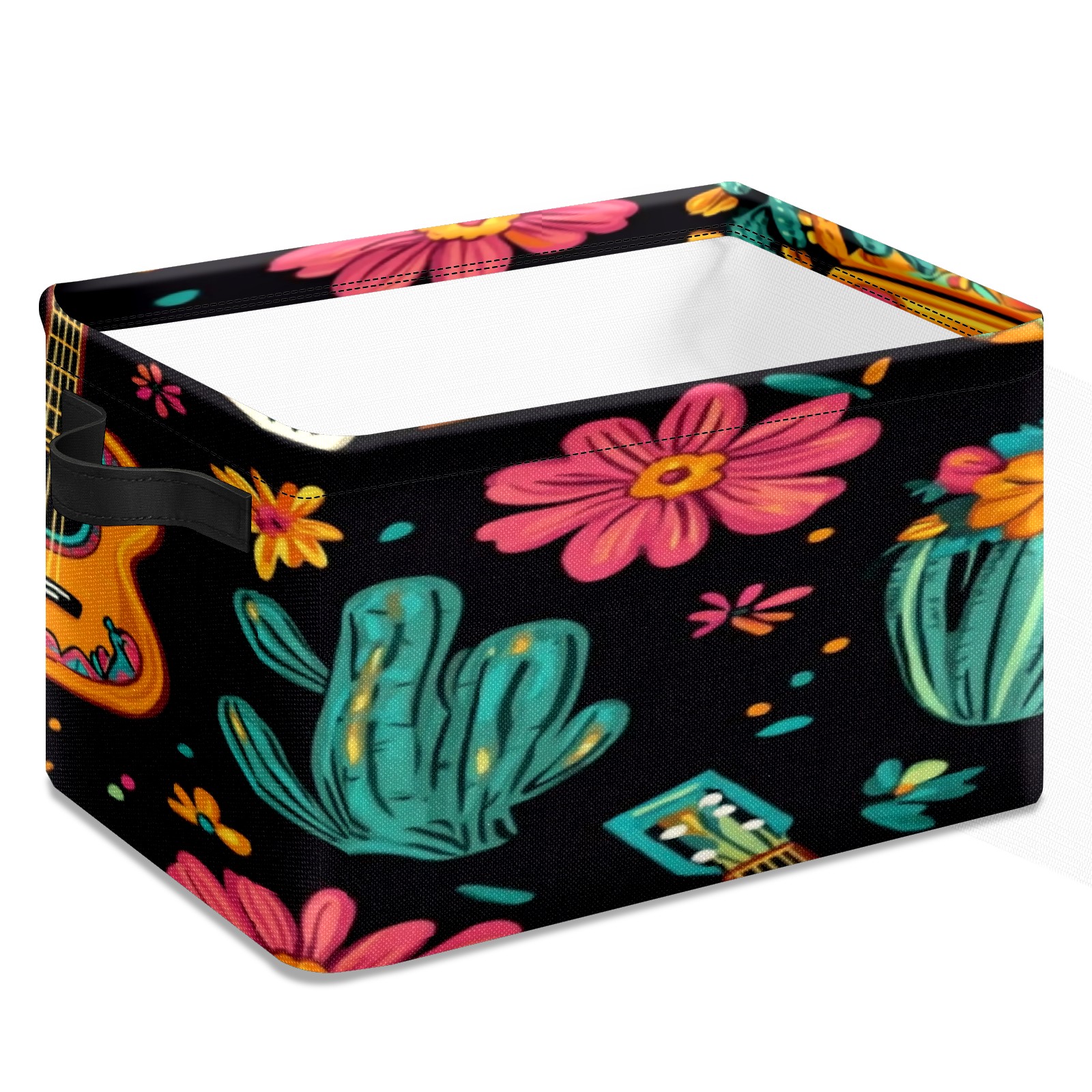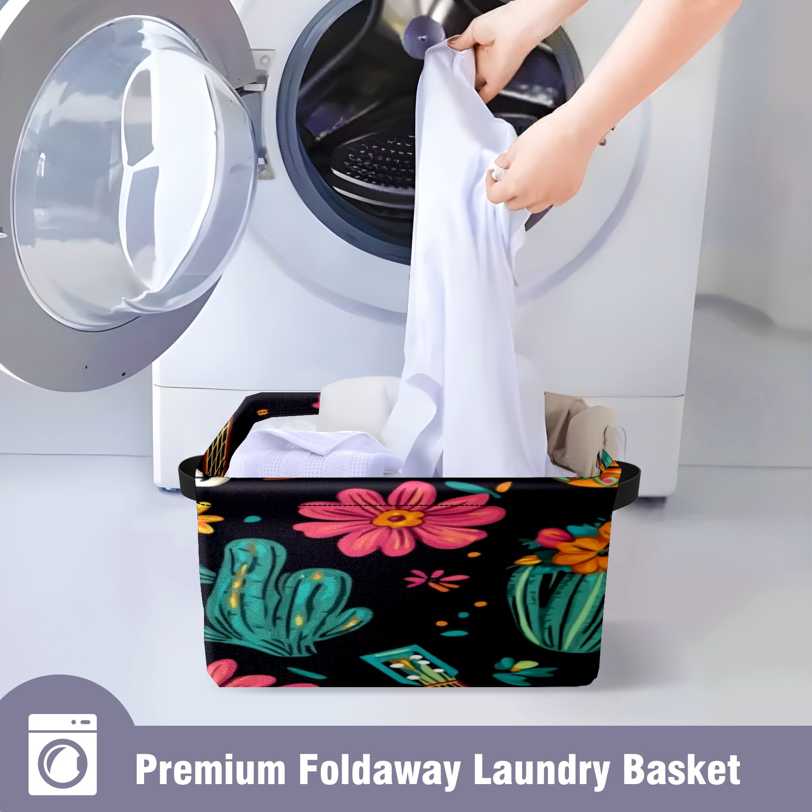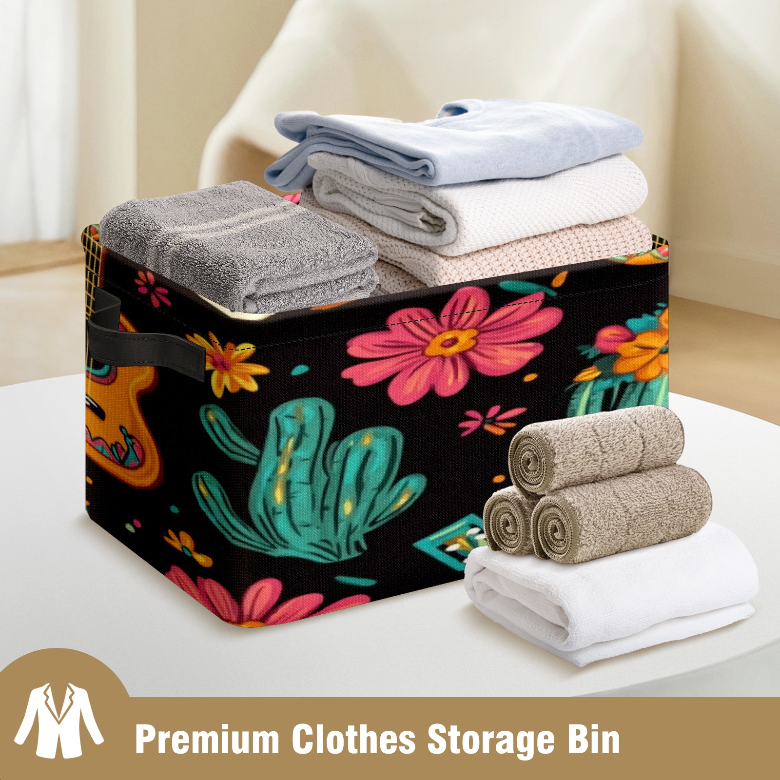 Foldable and Stackable Fabric Storage Basket for Home Organization with Handles, Decorative Closet Bins for Shelves, Laundry, and Toy Storage( Mexican Seamless Pattern)