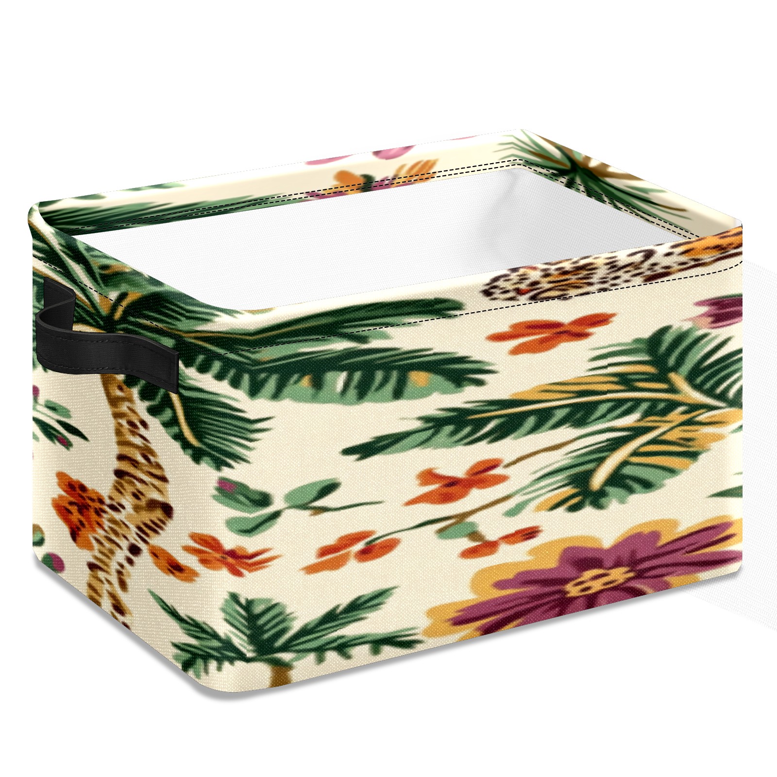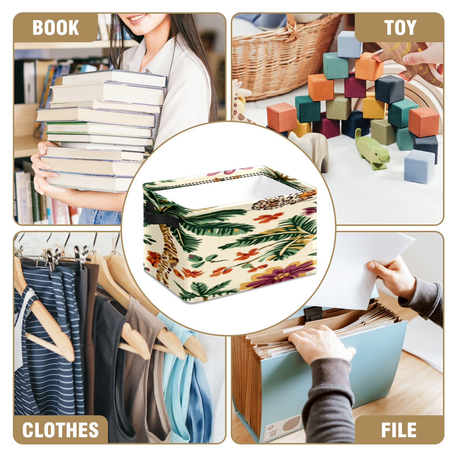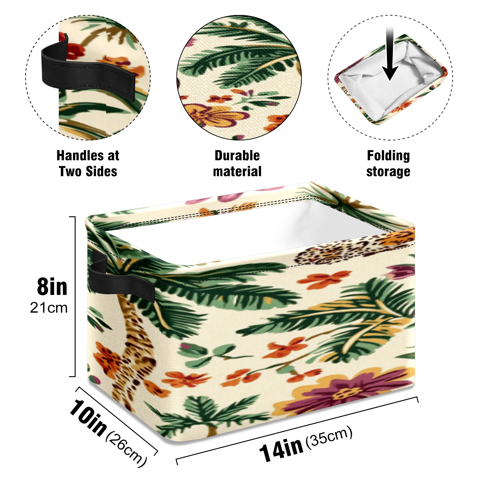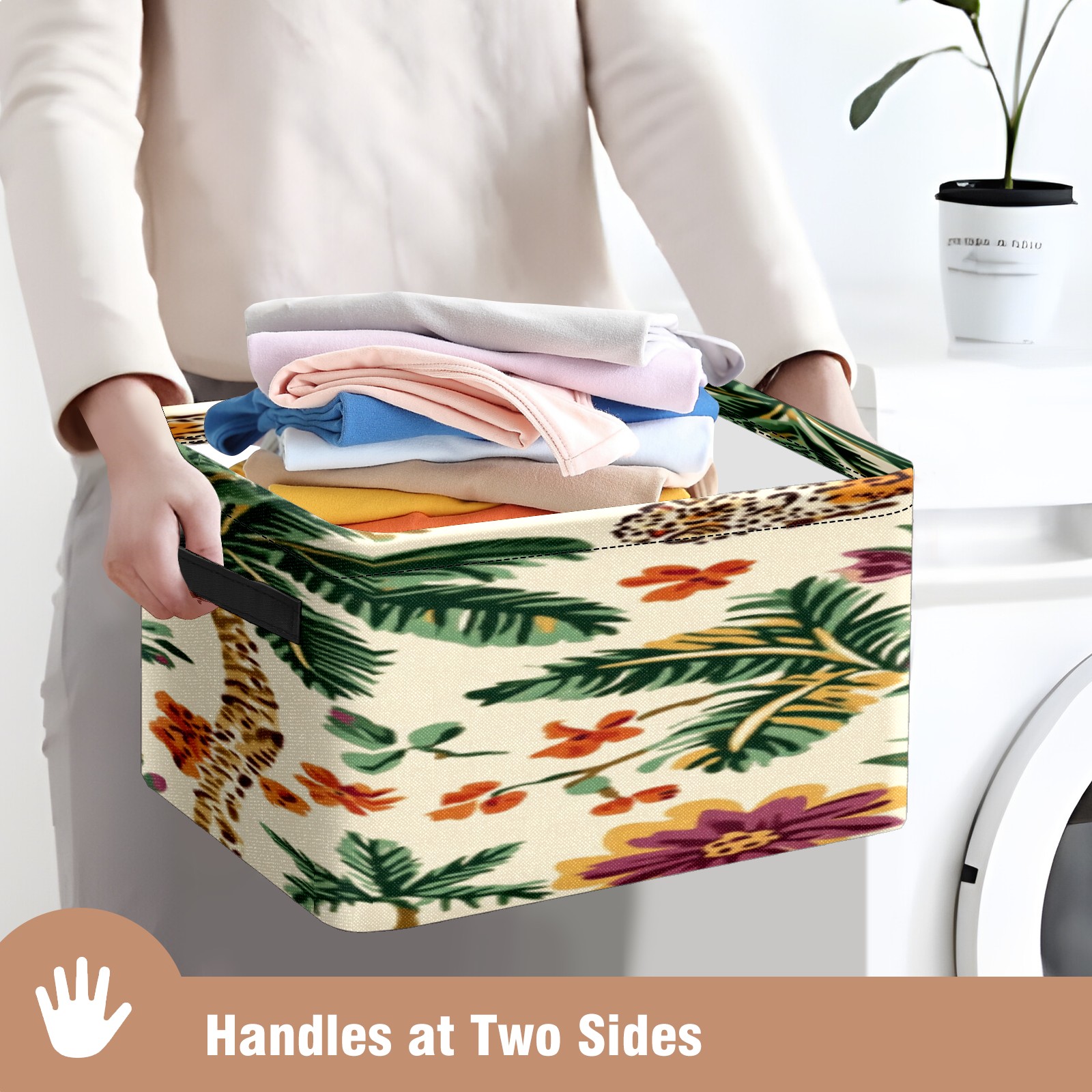 Foldable and Stackable Fabric Storage Basket for Home Organization with Handles, Decorative Closet Bins for Shelves, Laundry, and Toy Storage( Tropical Jungle Theme)