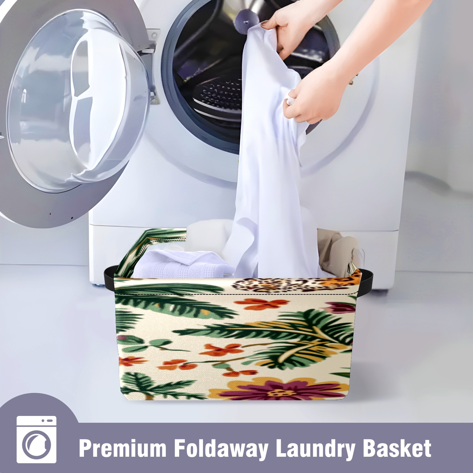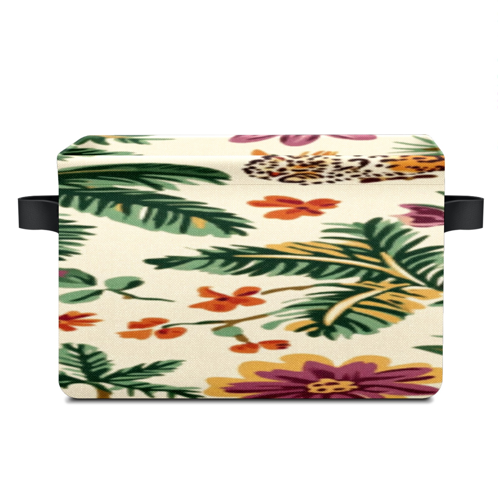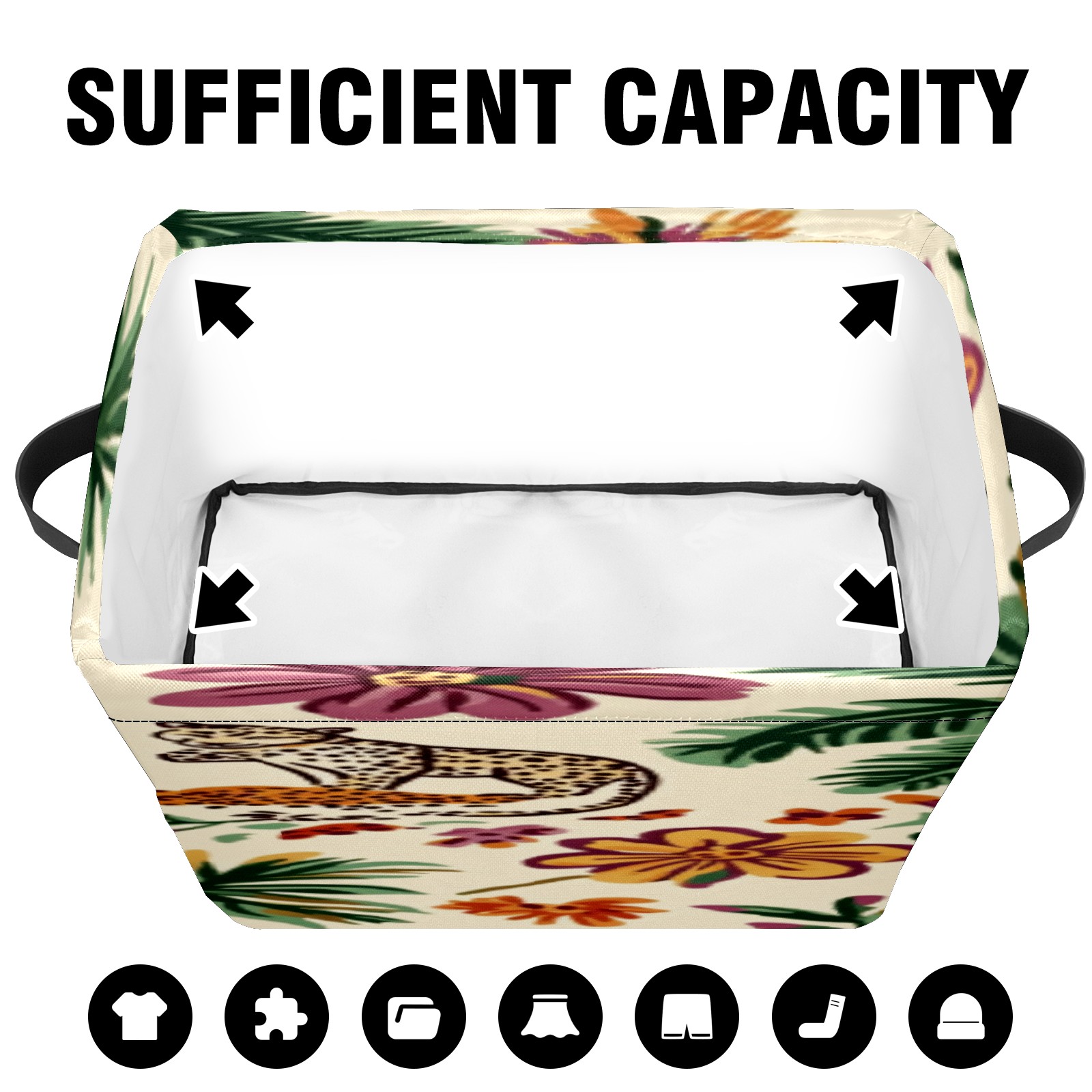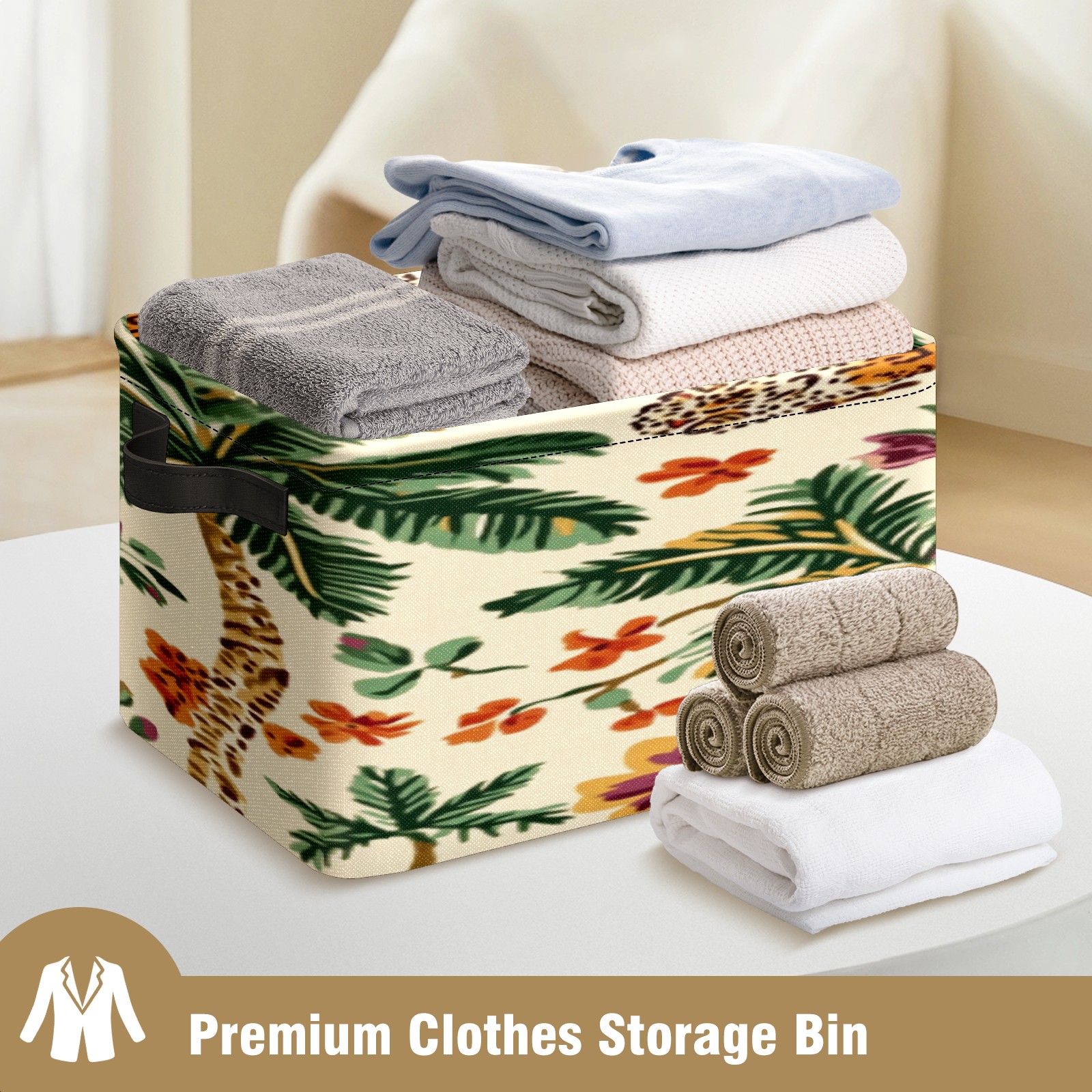 Foldable and Stackable Fabric Storage Basket for Home Organization with Handles, Decorative Closet Bins for Shelves, Laundry, and Toy Storage( Tropical Jungle Theme)