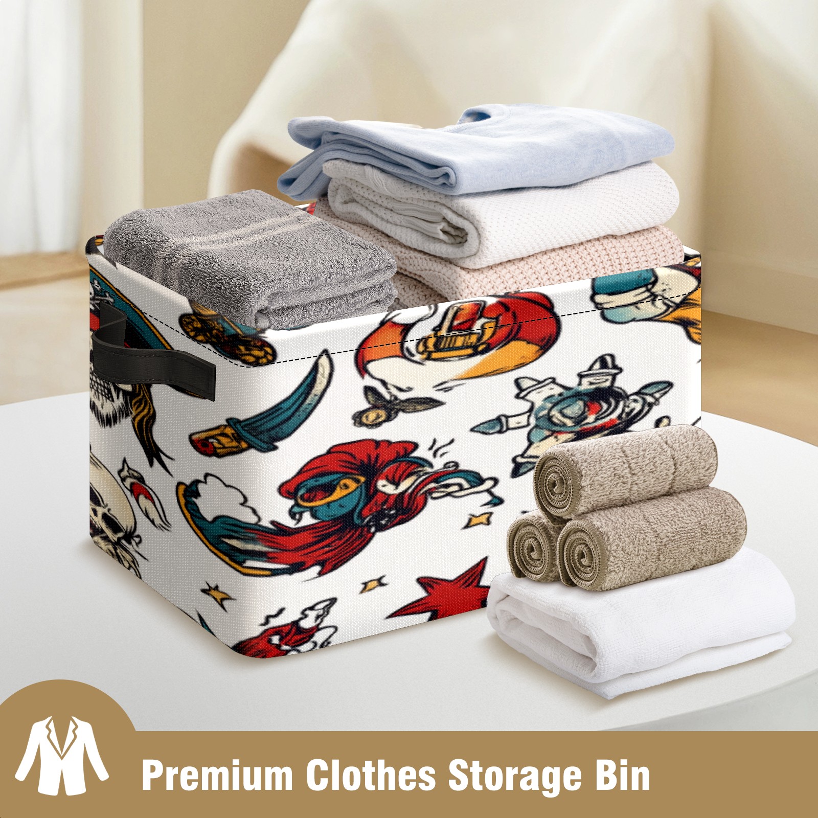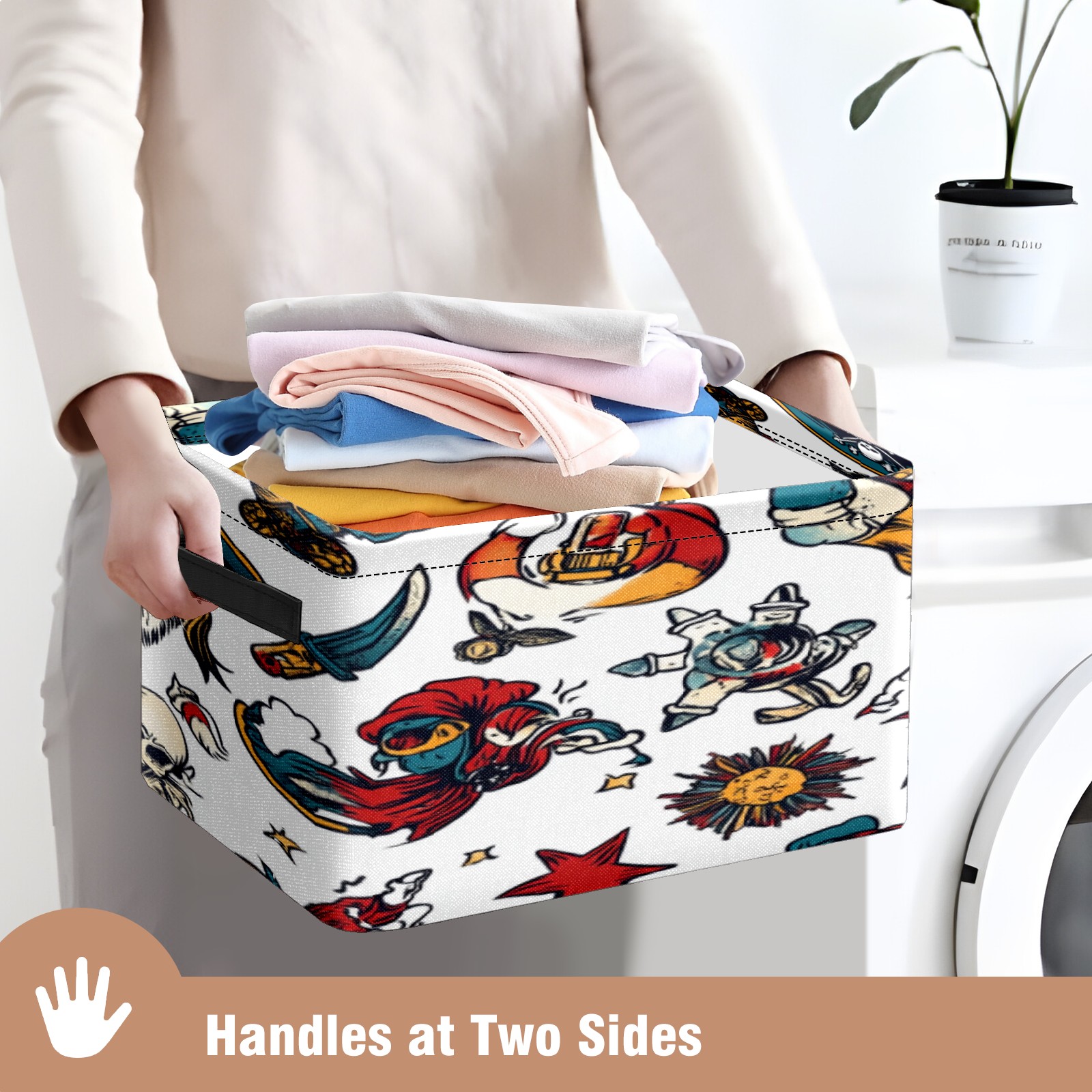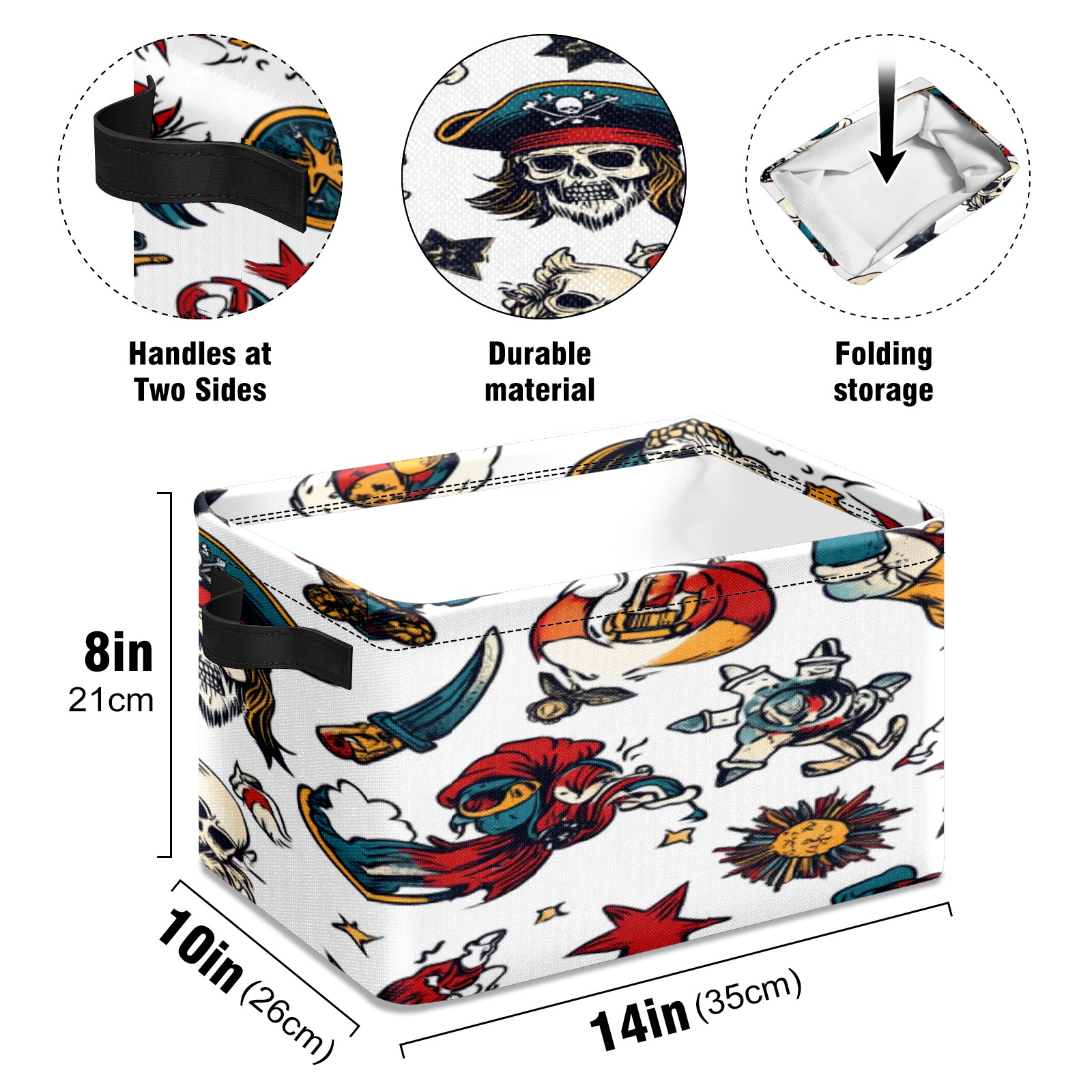 Foldable and Stackable Fabric Storage Basket for Home Organization with Handles, Decorative Closet Bins for Shelves, Laundry, and Toy Storage( Cartoon-style Pirate)