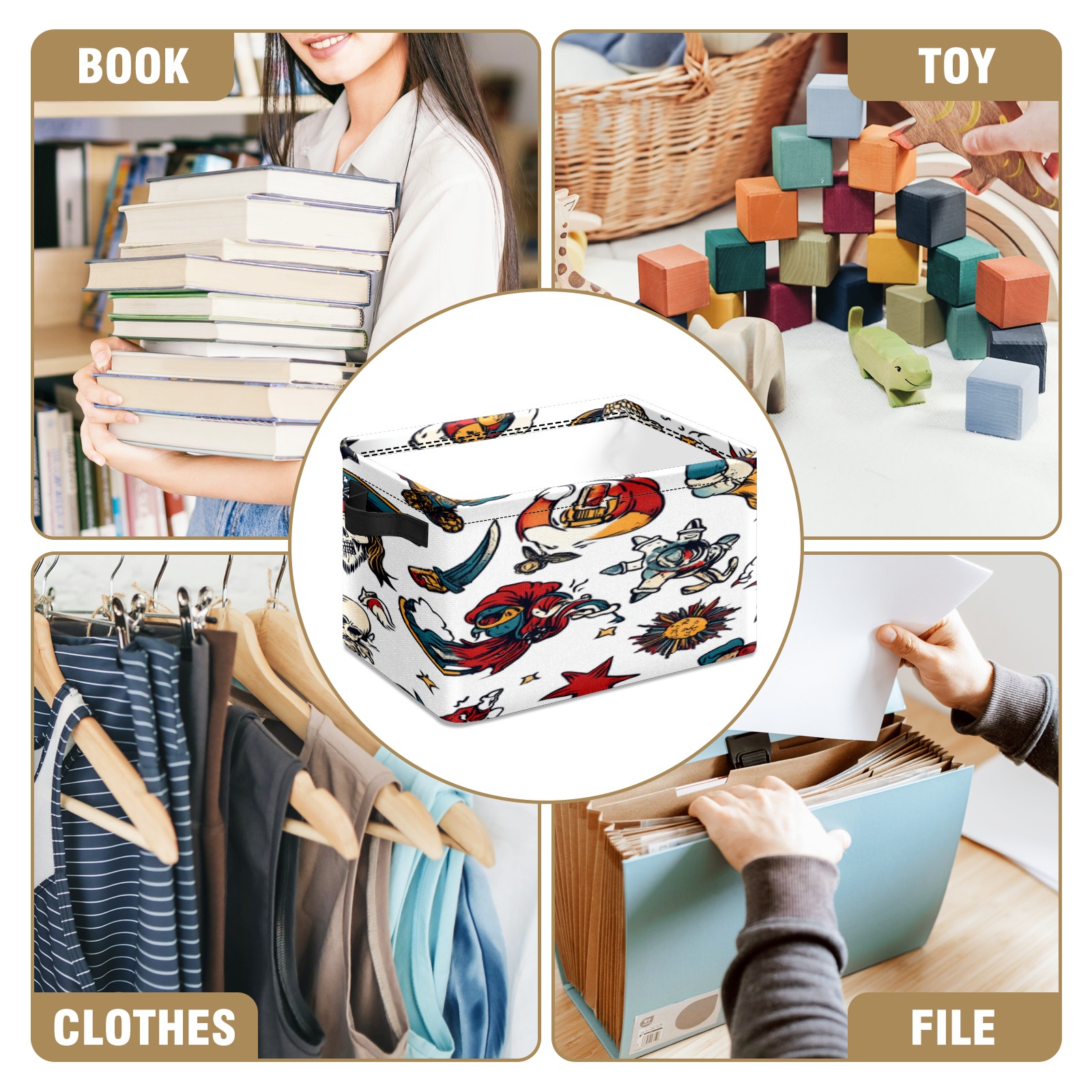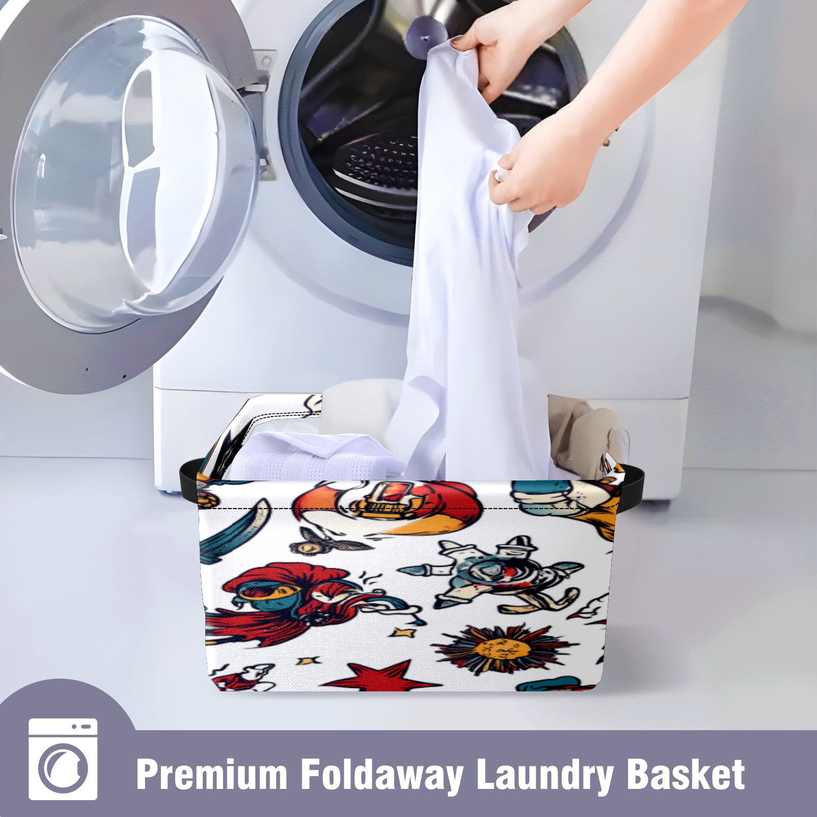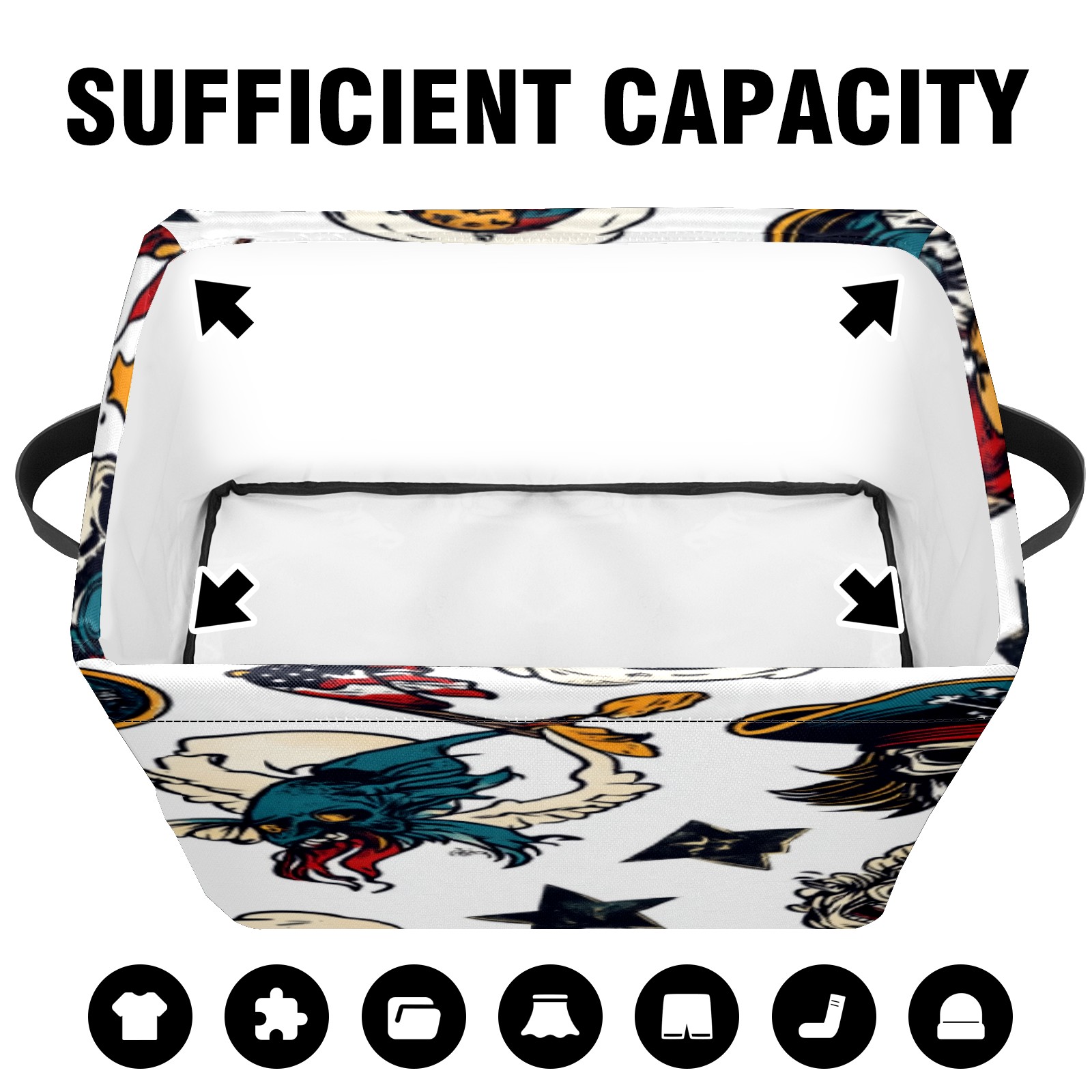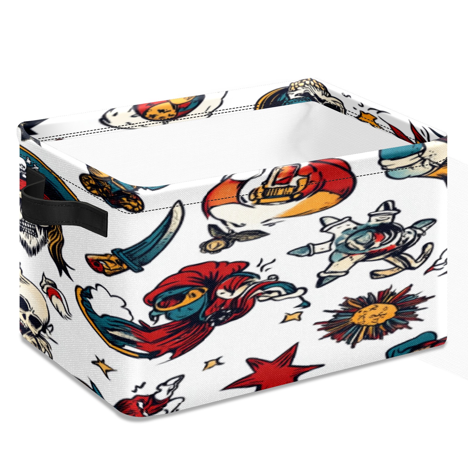 Foldable and Stackable Fabric Storage Basket for Home Organization with Handles, Decorative Closet Bins for Shelves, Laundry, and Toy Storage( Cartoon-style Pirate)