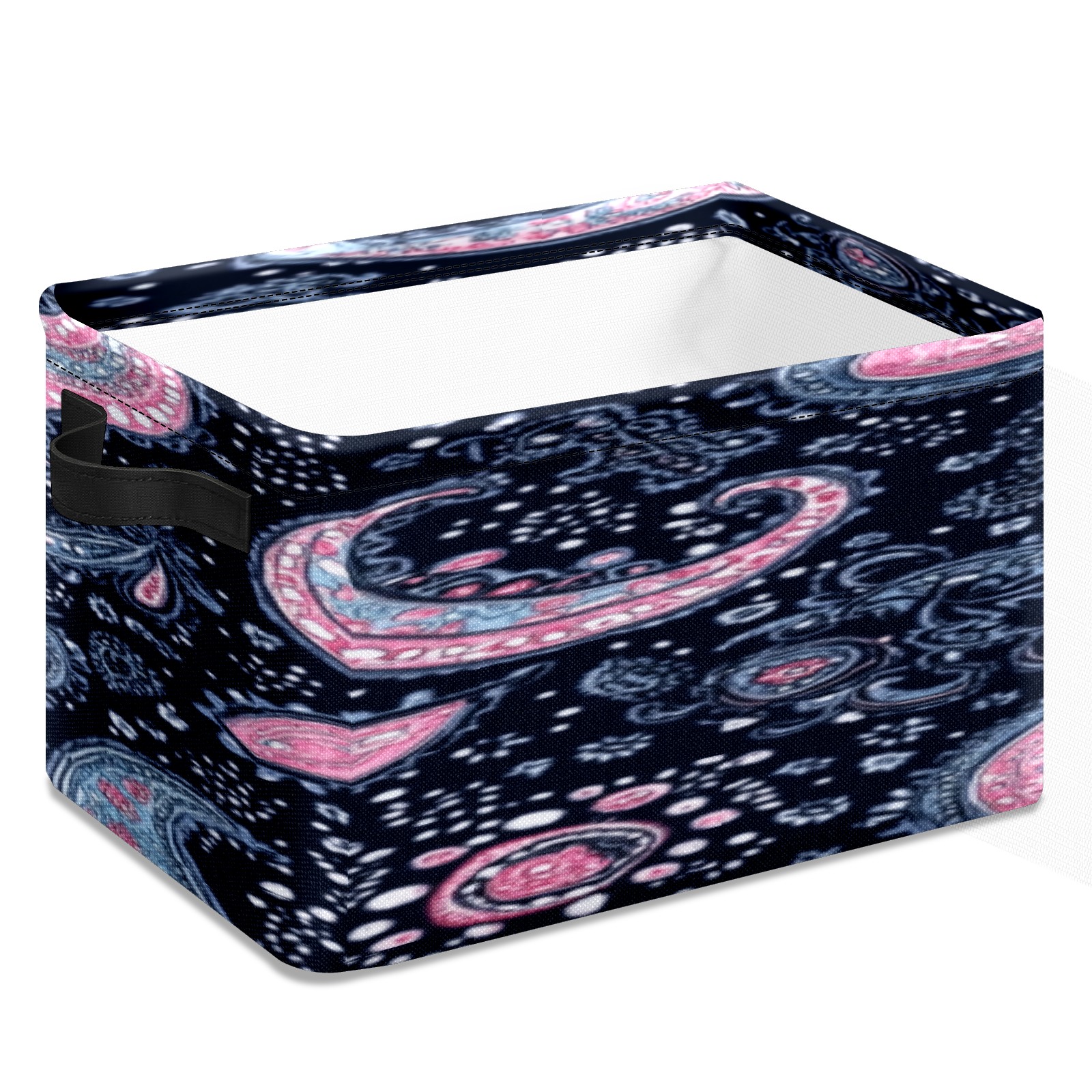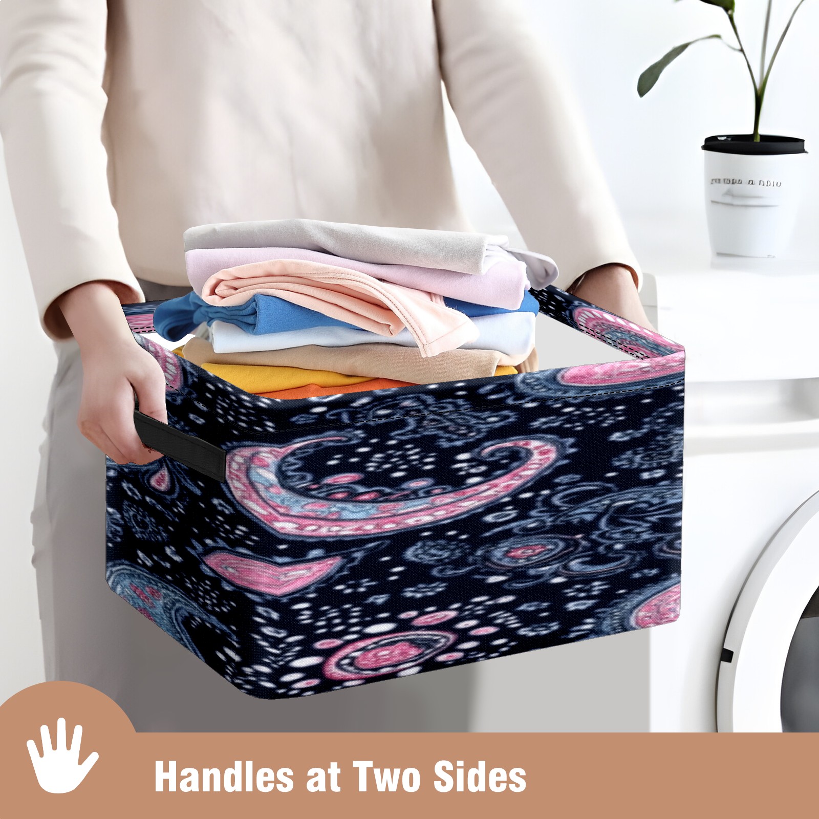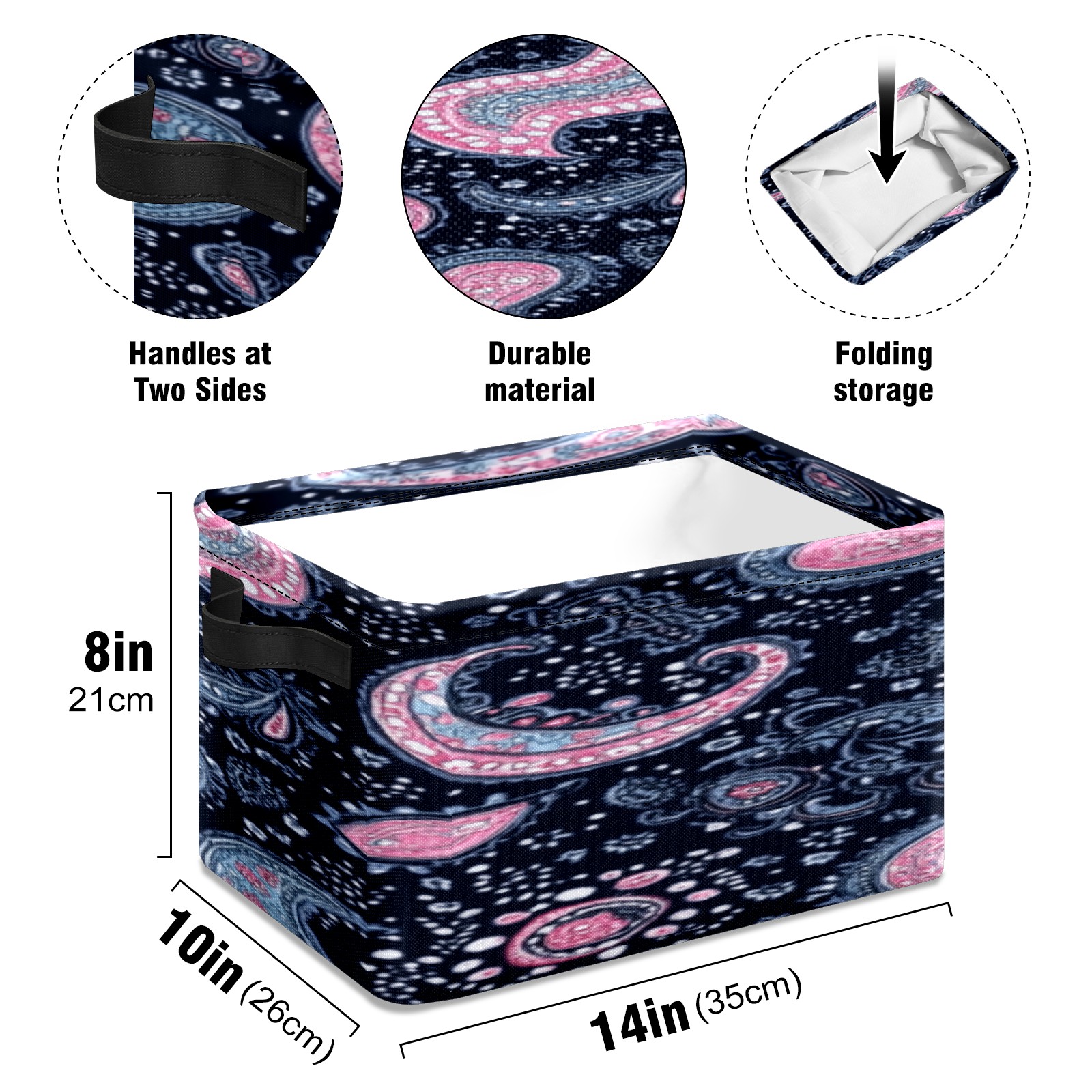 Foldable and Stackable Fabric Storage Basket for Home Organization with Handles, Decorative Closet Bins for Shelves, Laundry, and Toy Storage( Dark Blue And Pink Paisley)
