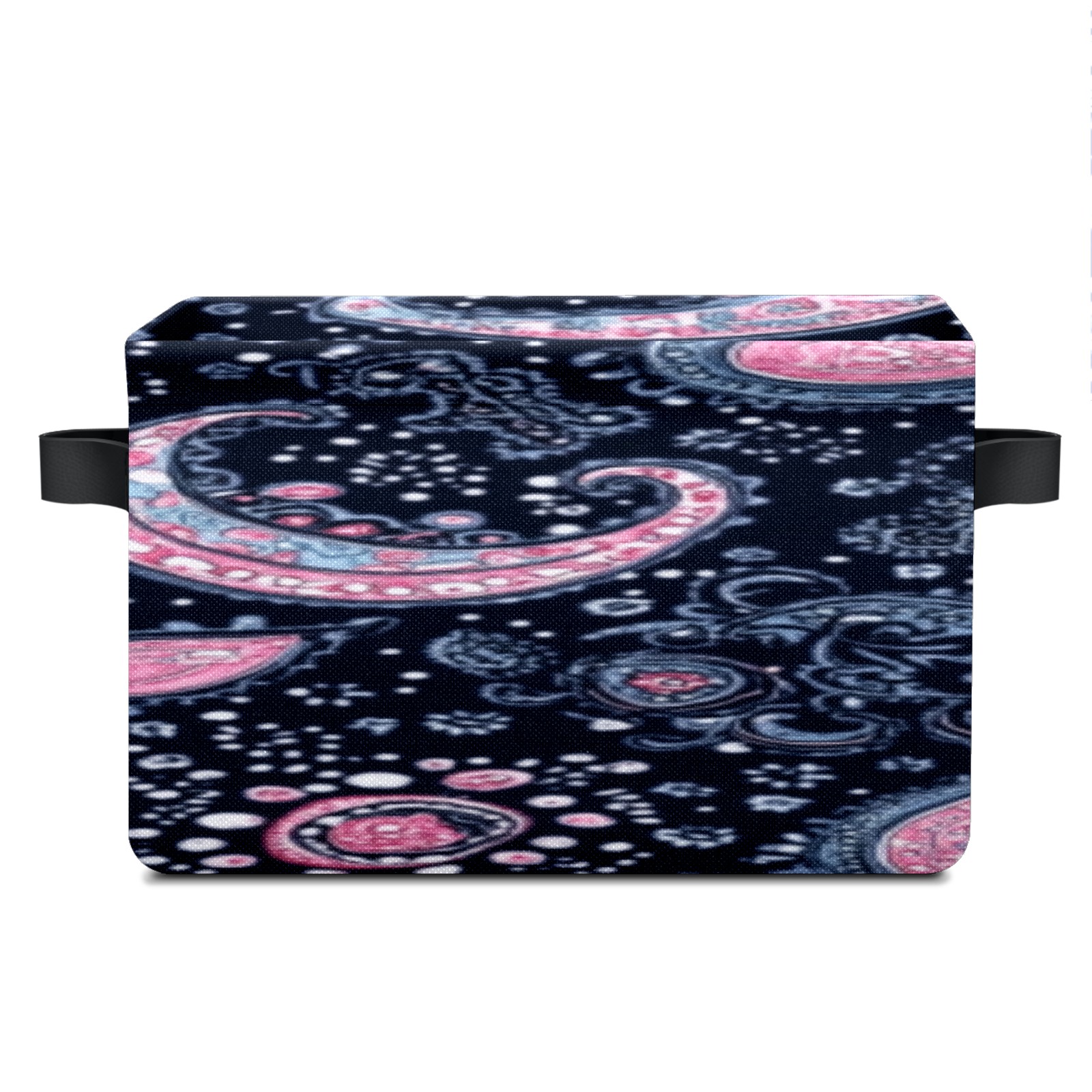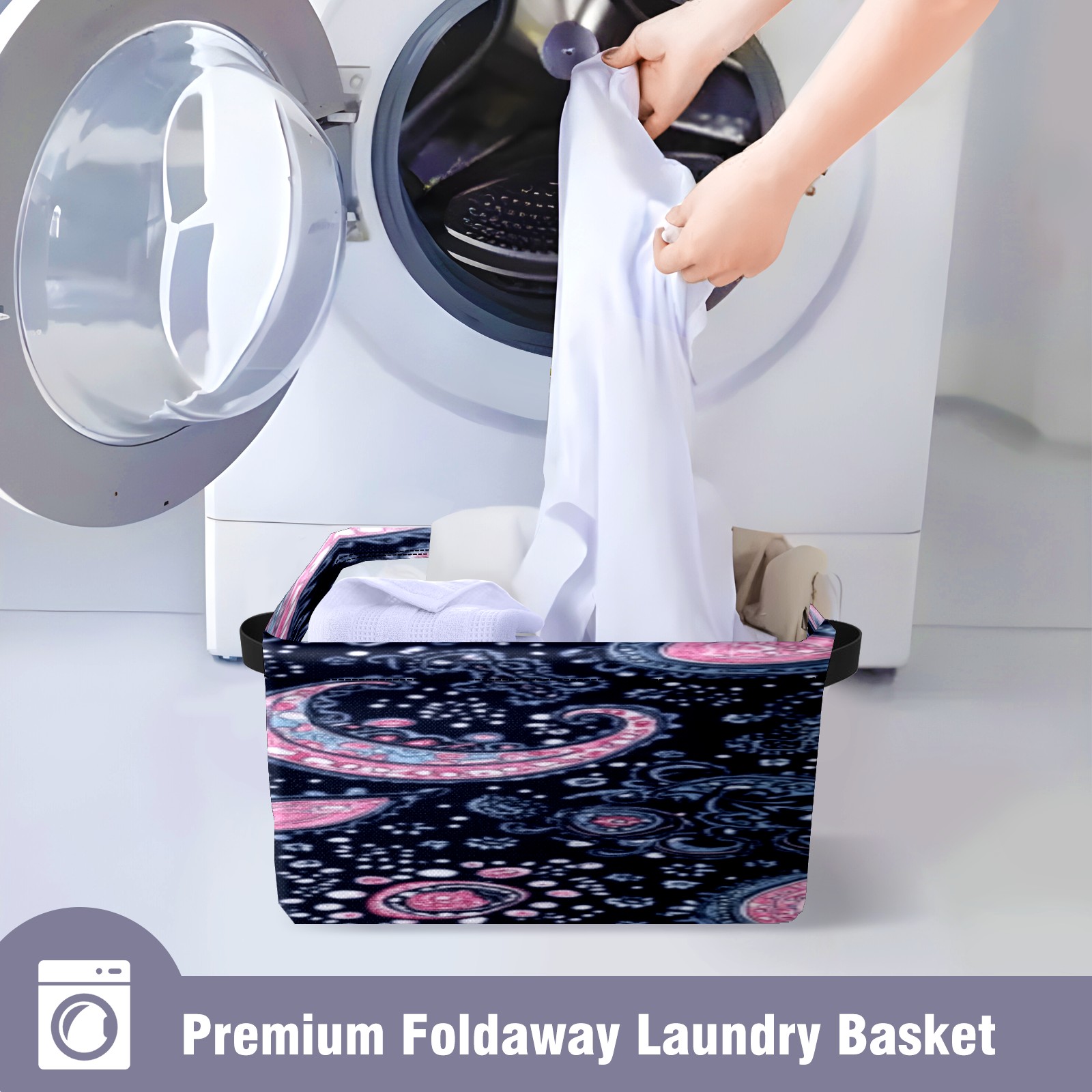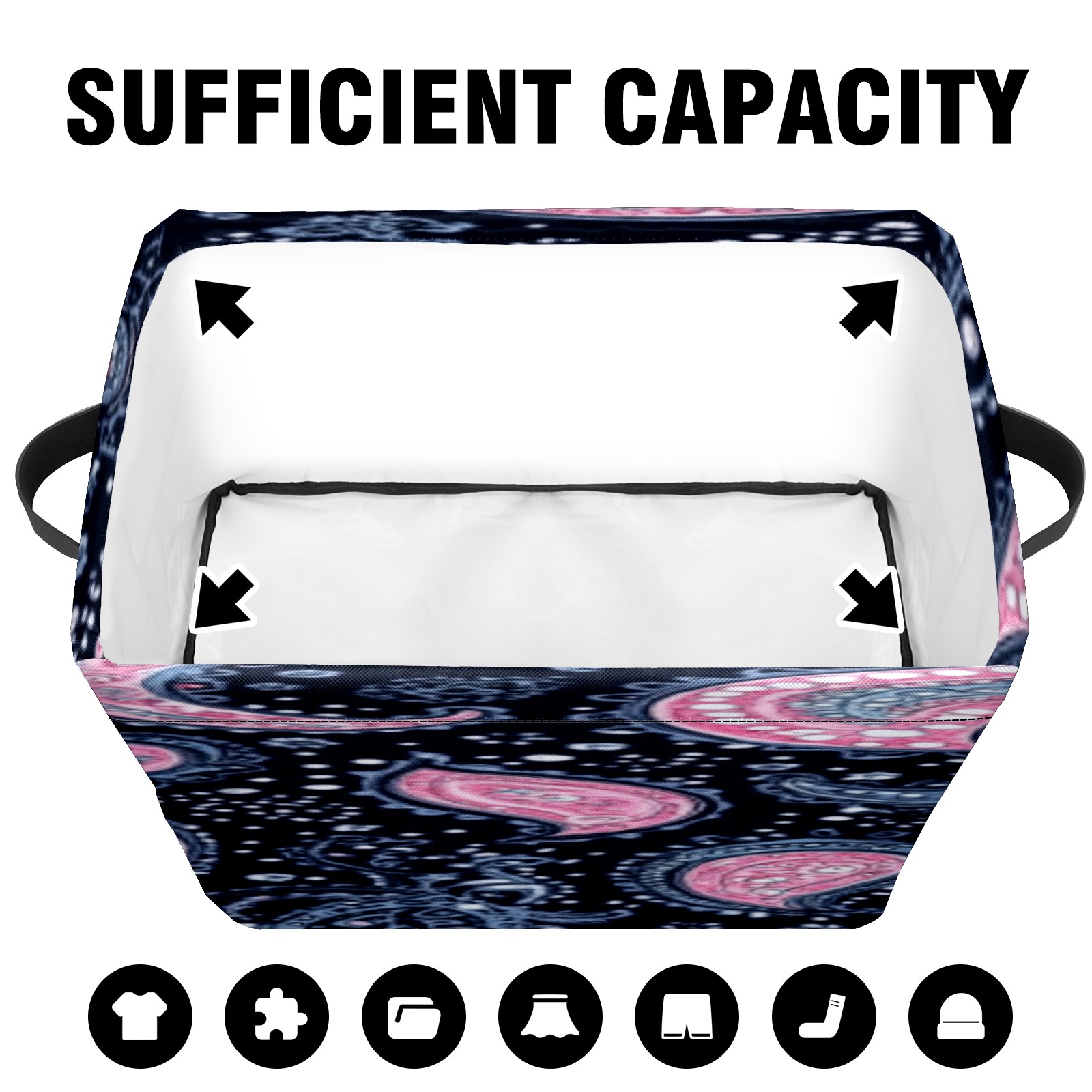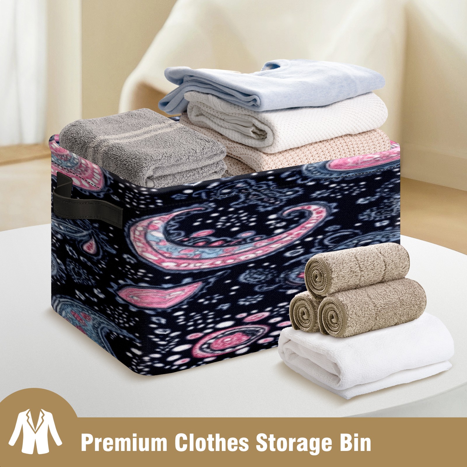 Foldable and Stackable Fabric Storage Basket for Home Organization with Handles, Decorative Closet Bins for Shelves, Laundry, and Toy Storage( Dark Blue And Pink Paisley)