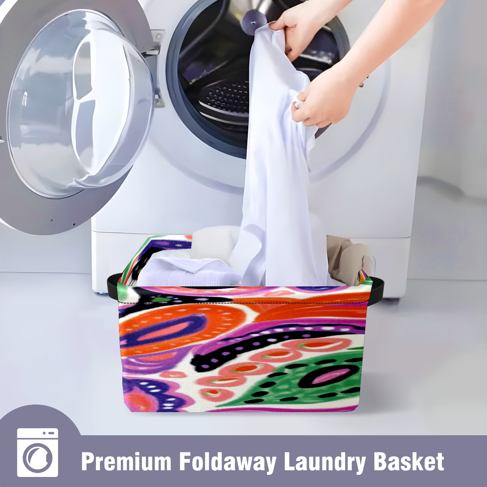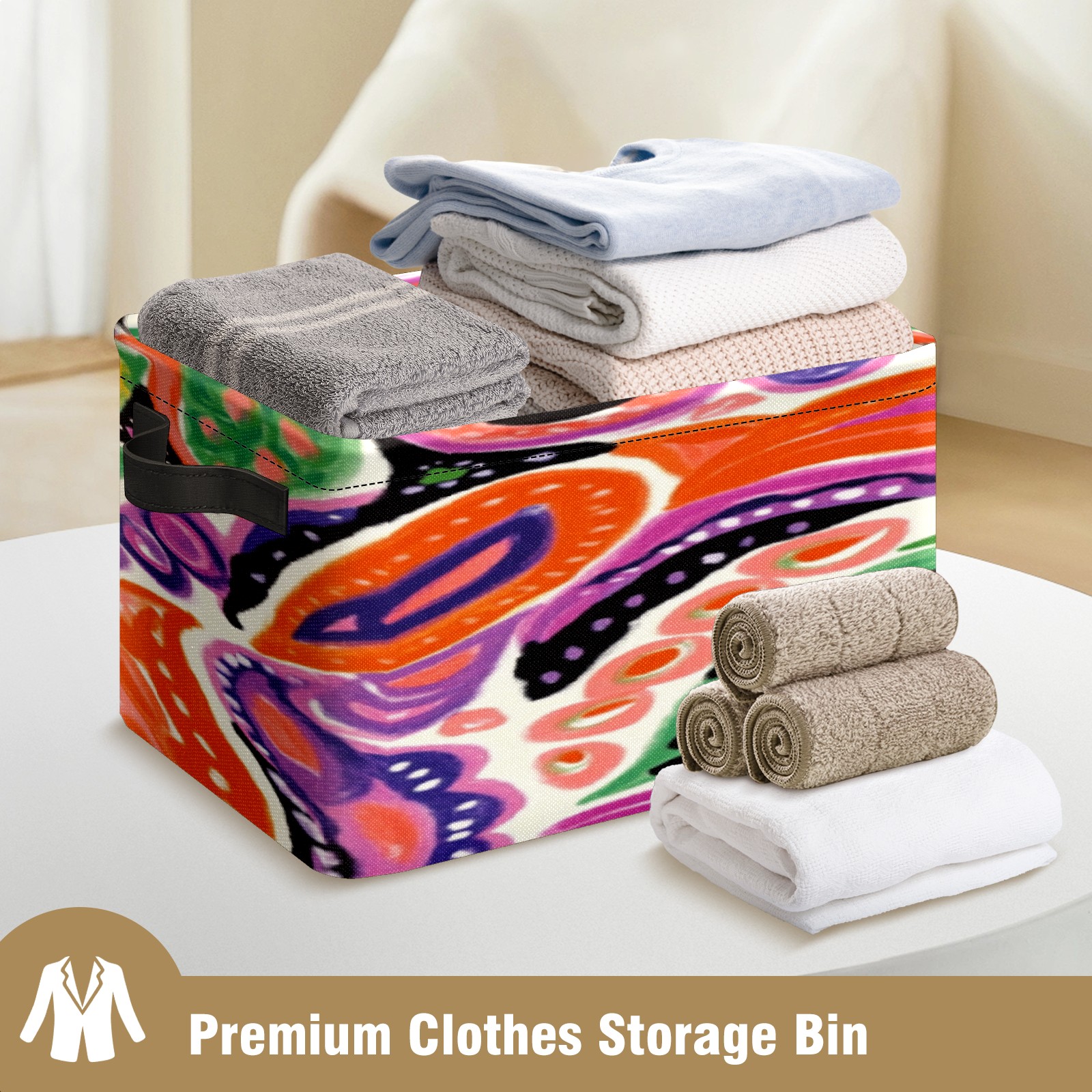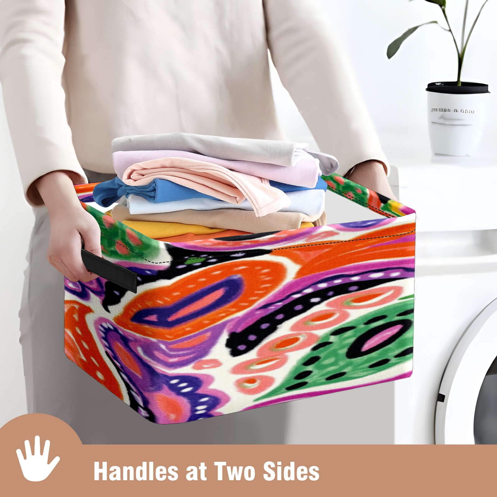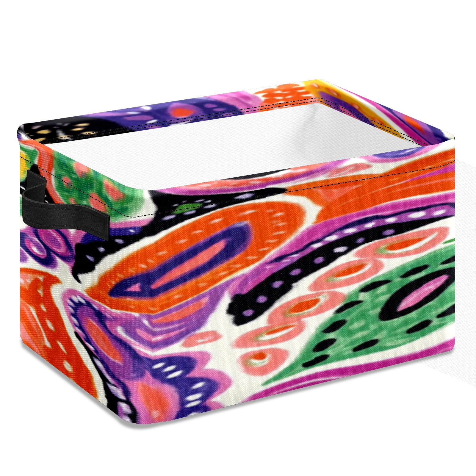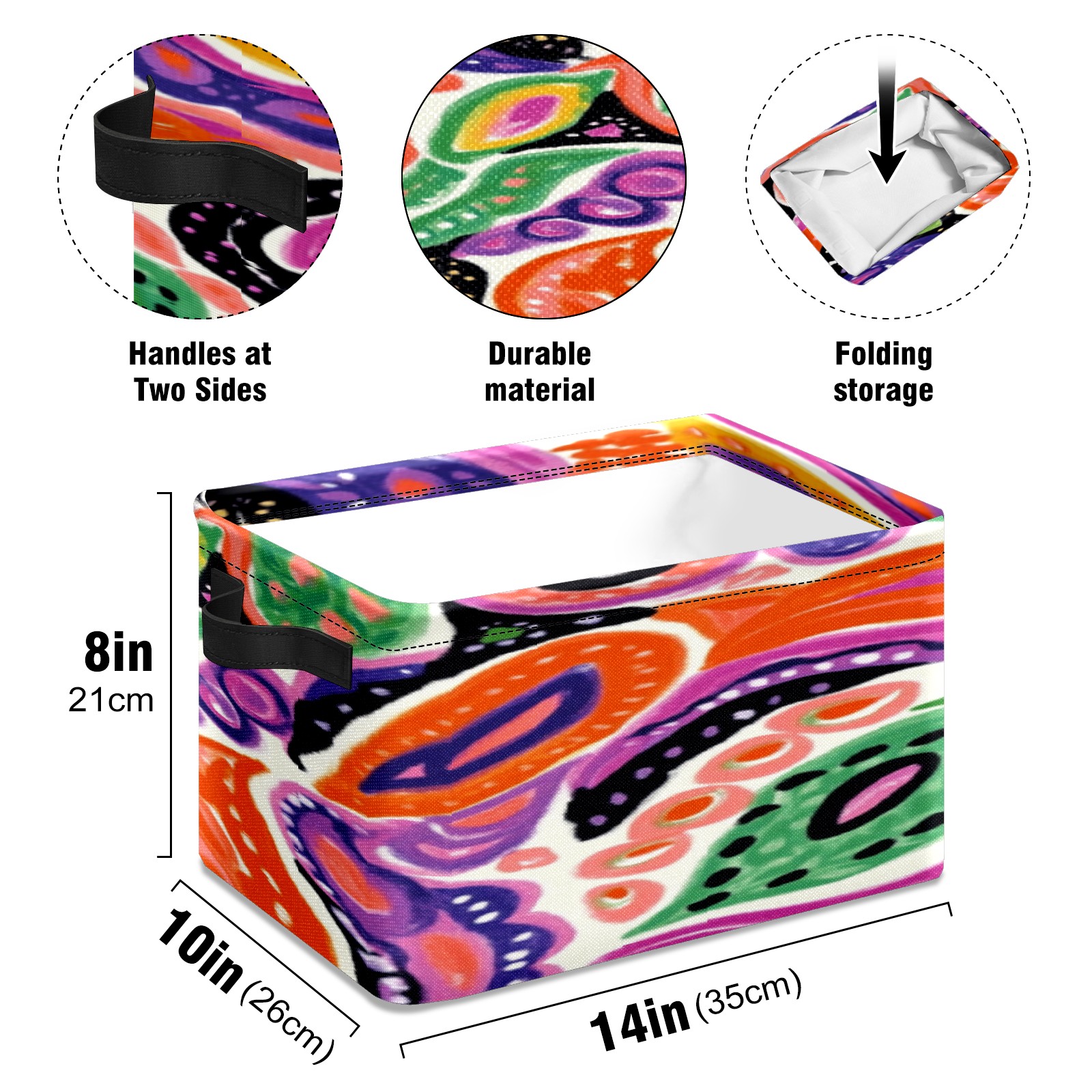 Foldable and Stackable Fabric Storage Basket for Home Organization with Handles, Decorative Closet Bins for Shelves, Laundry, and Toy Storage( Colorful Paisley)
