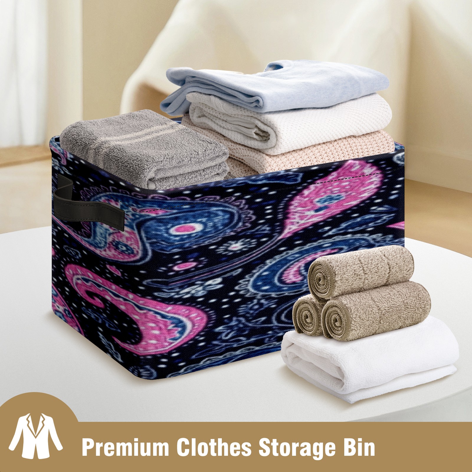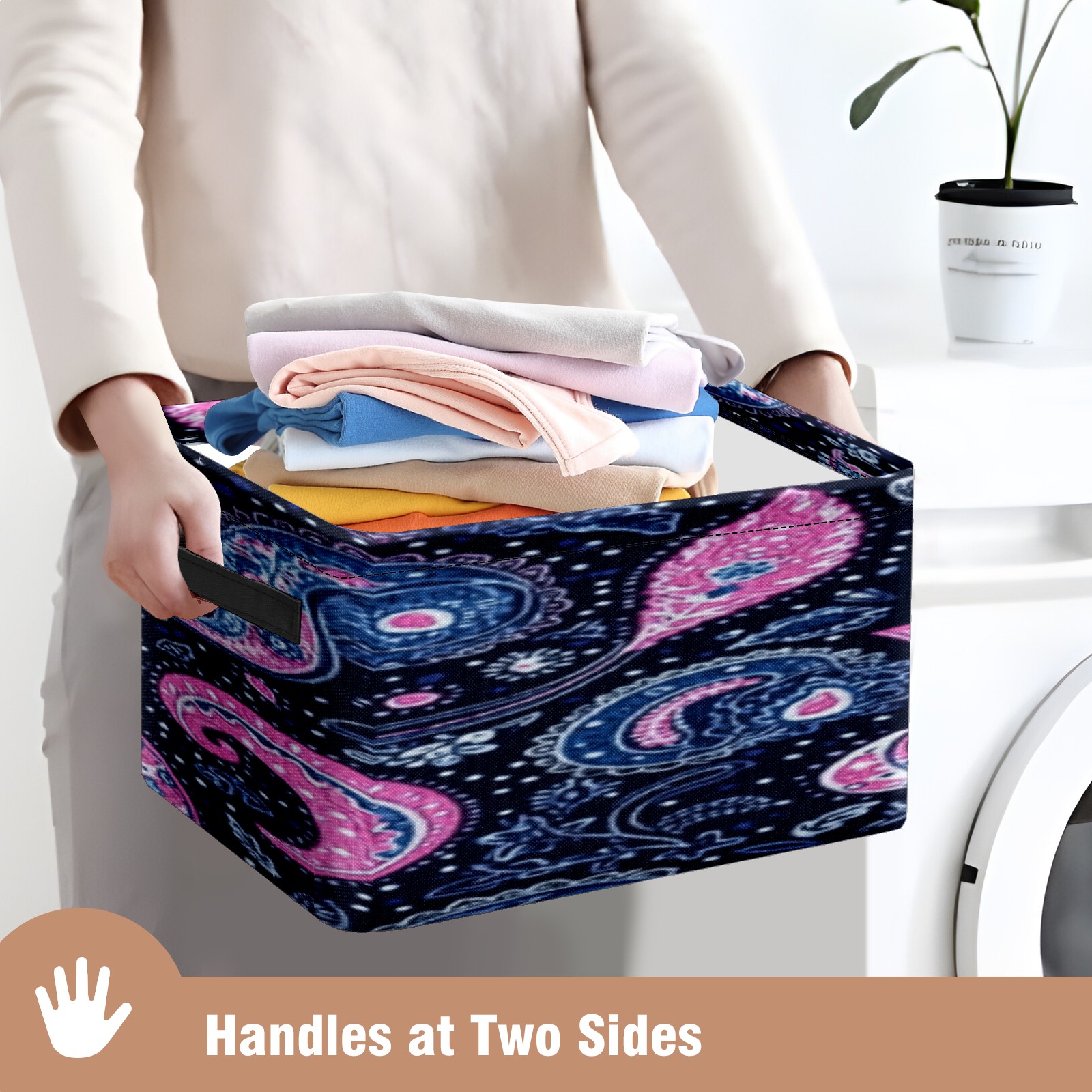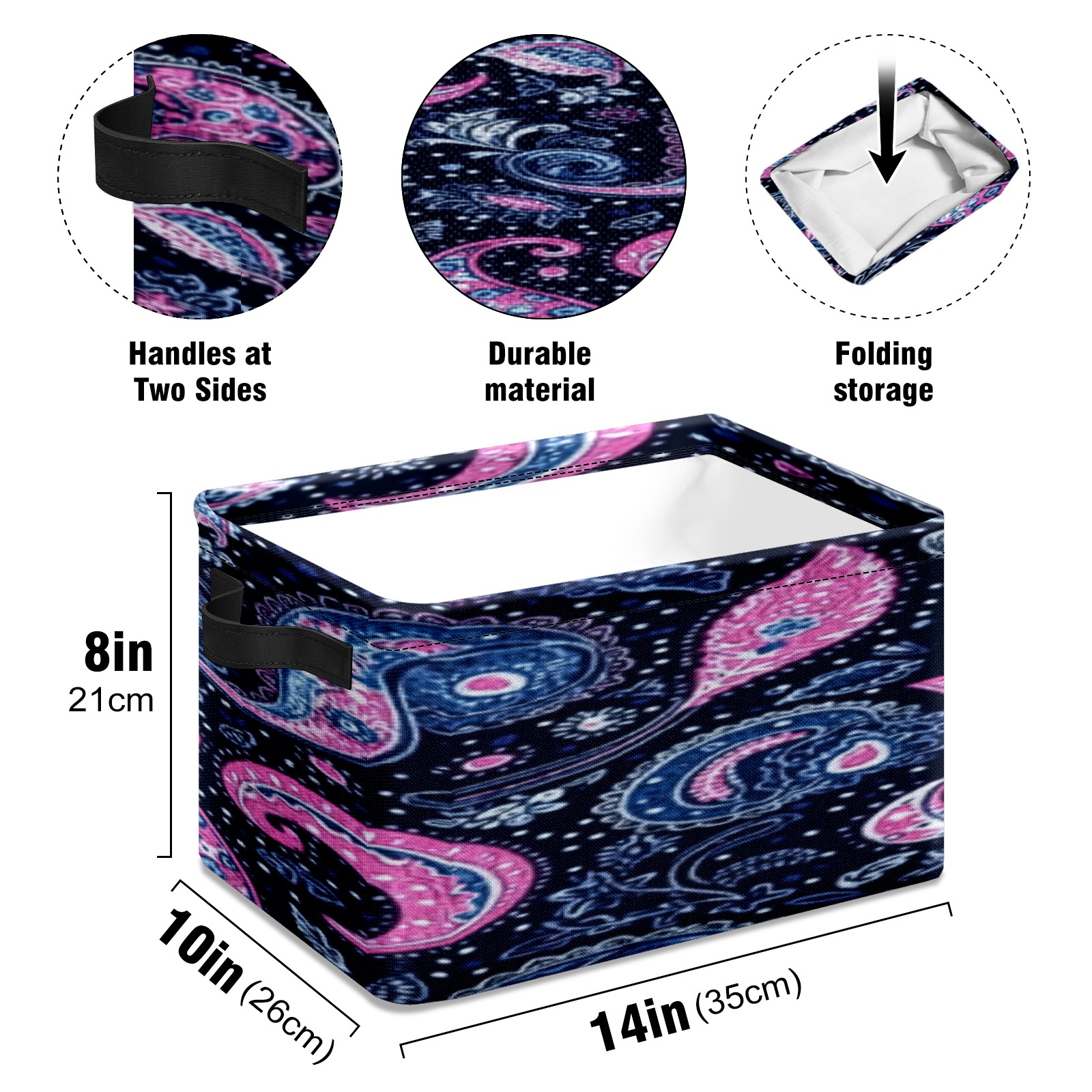 Foldable and Stackable Fabric Storage Basket for Home Organization with Handles, Decorative Closet Bins for Shelves, Laundry, and Toy Storage( Blue Pink And Purple Paisley)