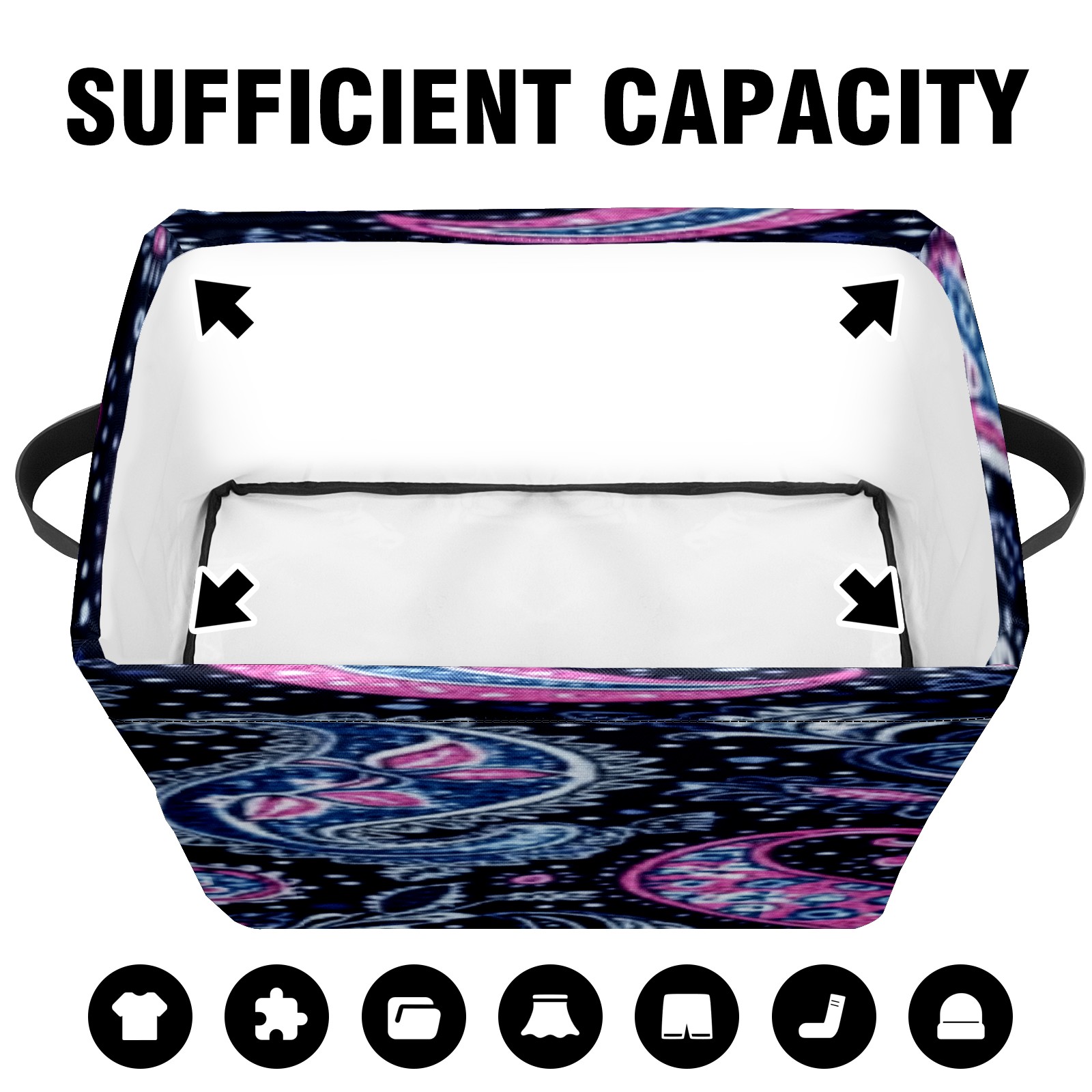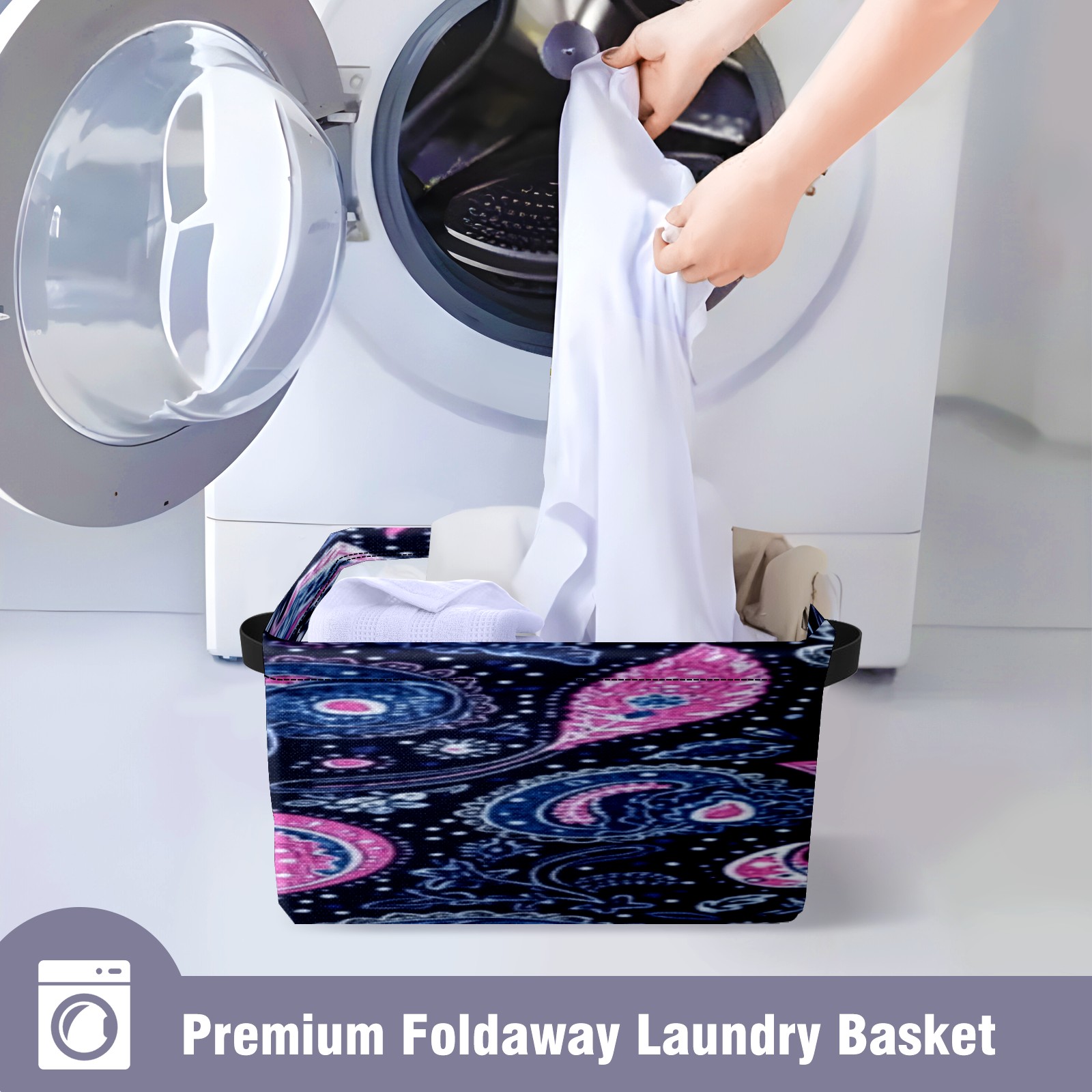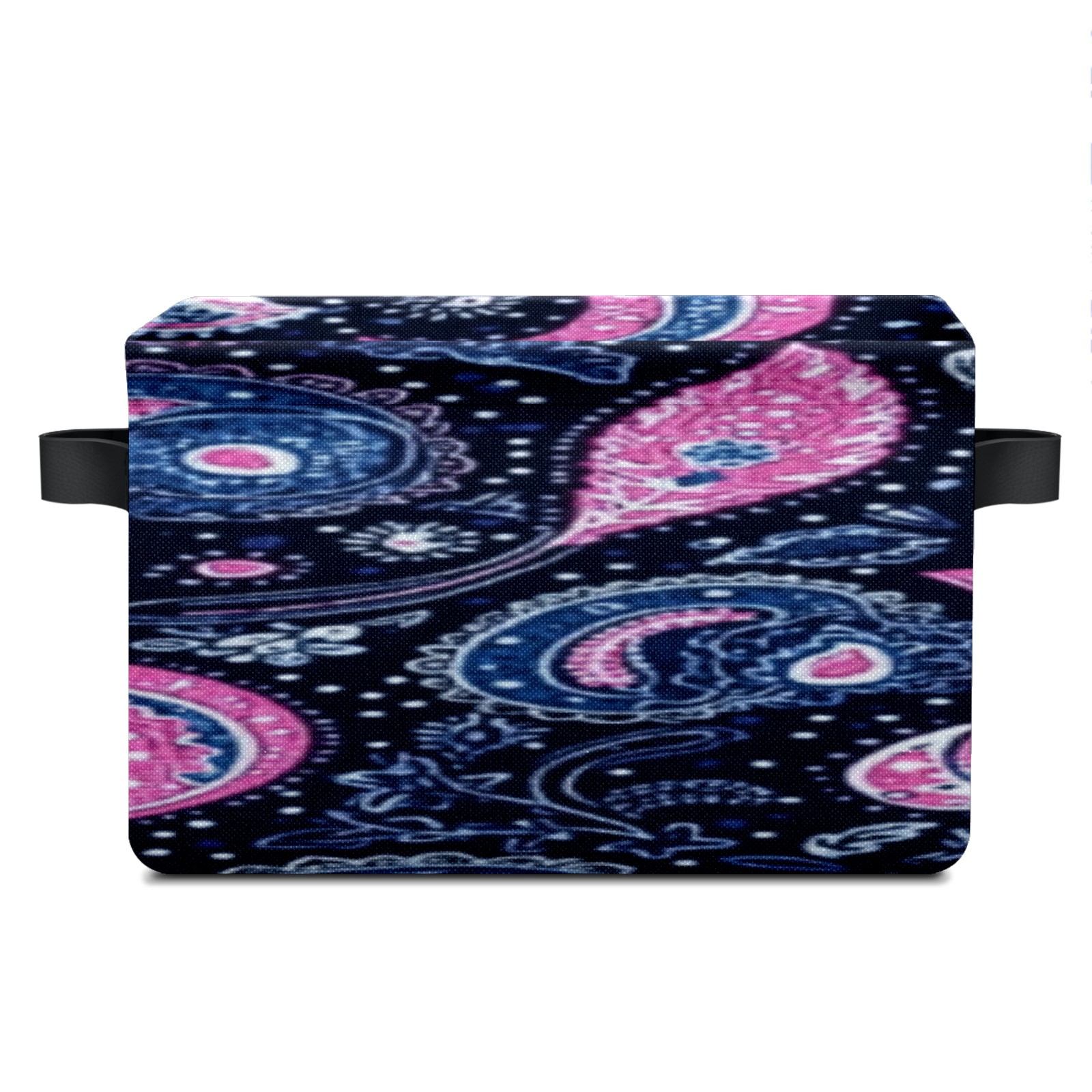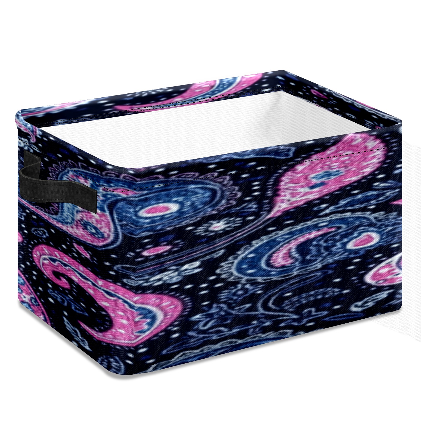Foldable and Stackable Fabric Storage Basket for Home Organization with Handles, Decorative Closet Bins for Shelves, Laundry, and Toy Storage( Blue Pink And Purple Paisley)