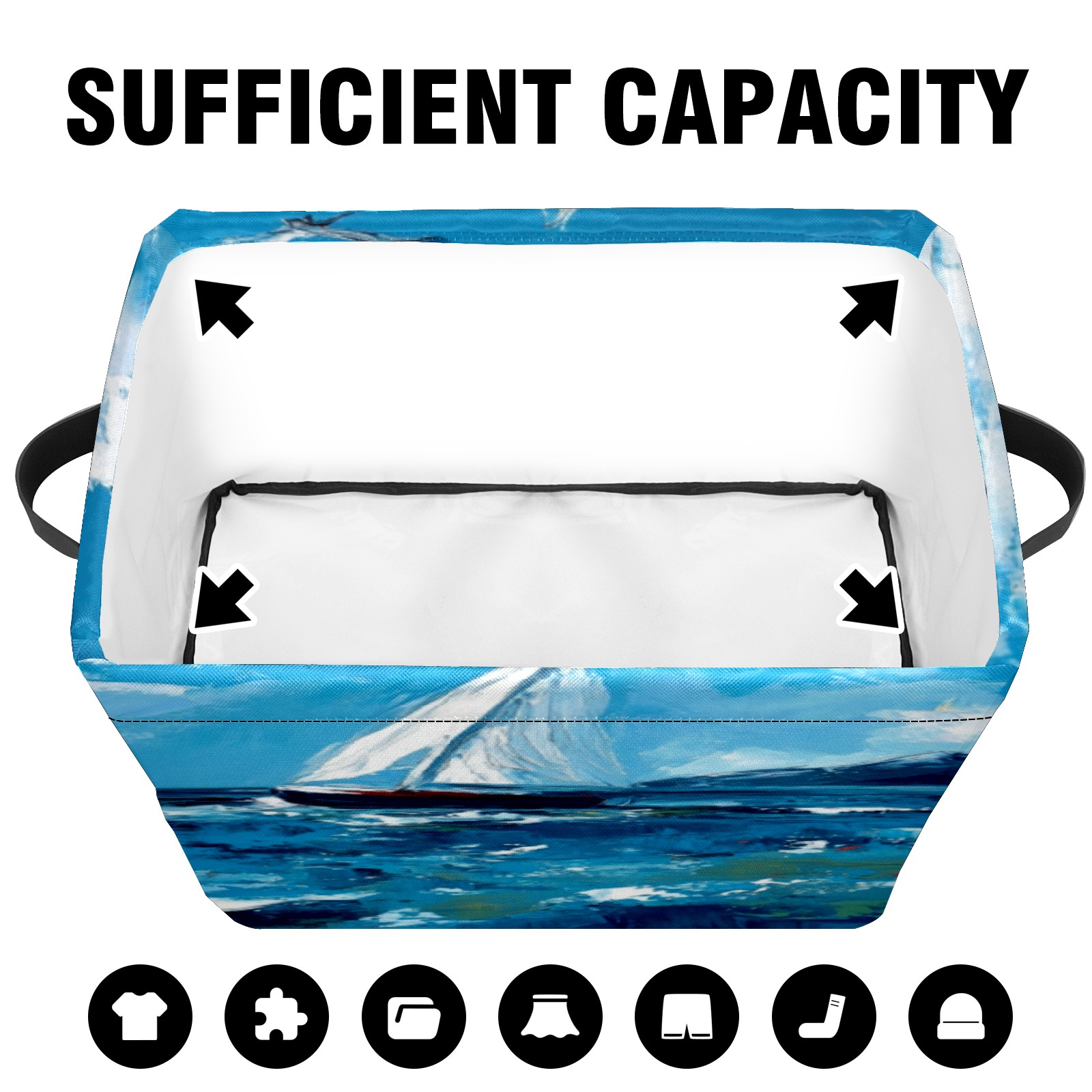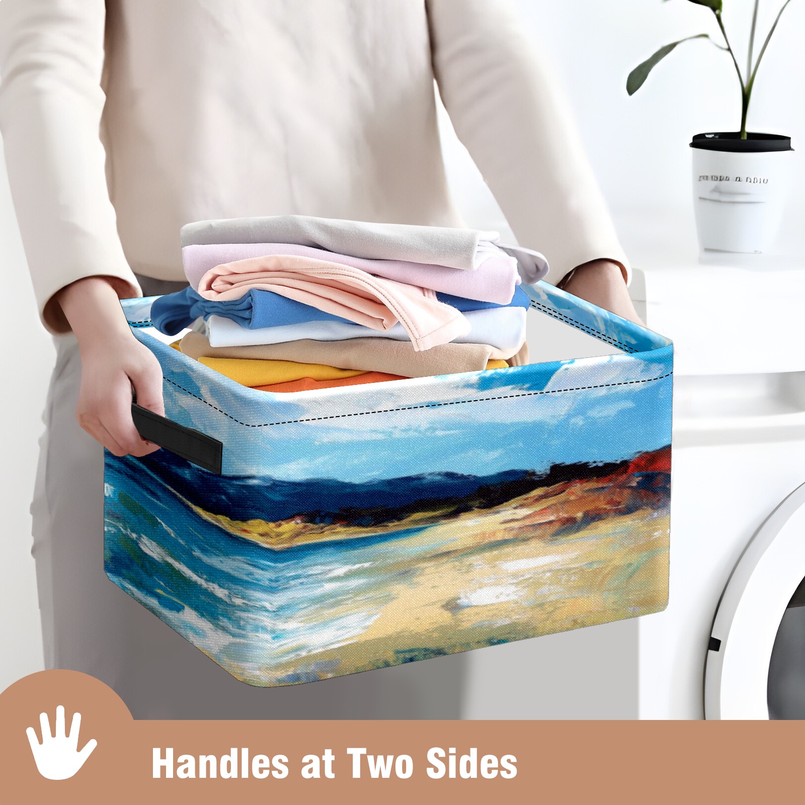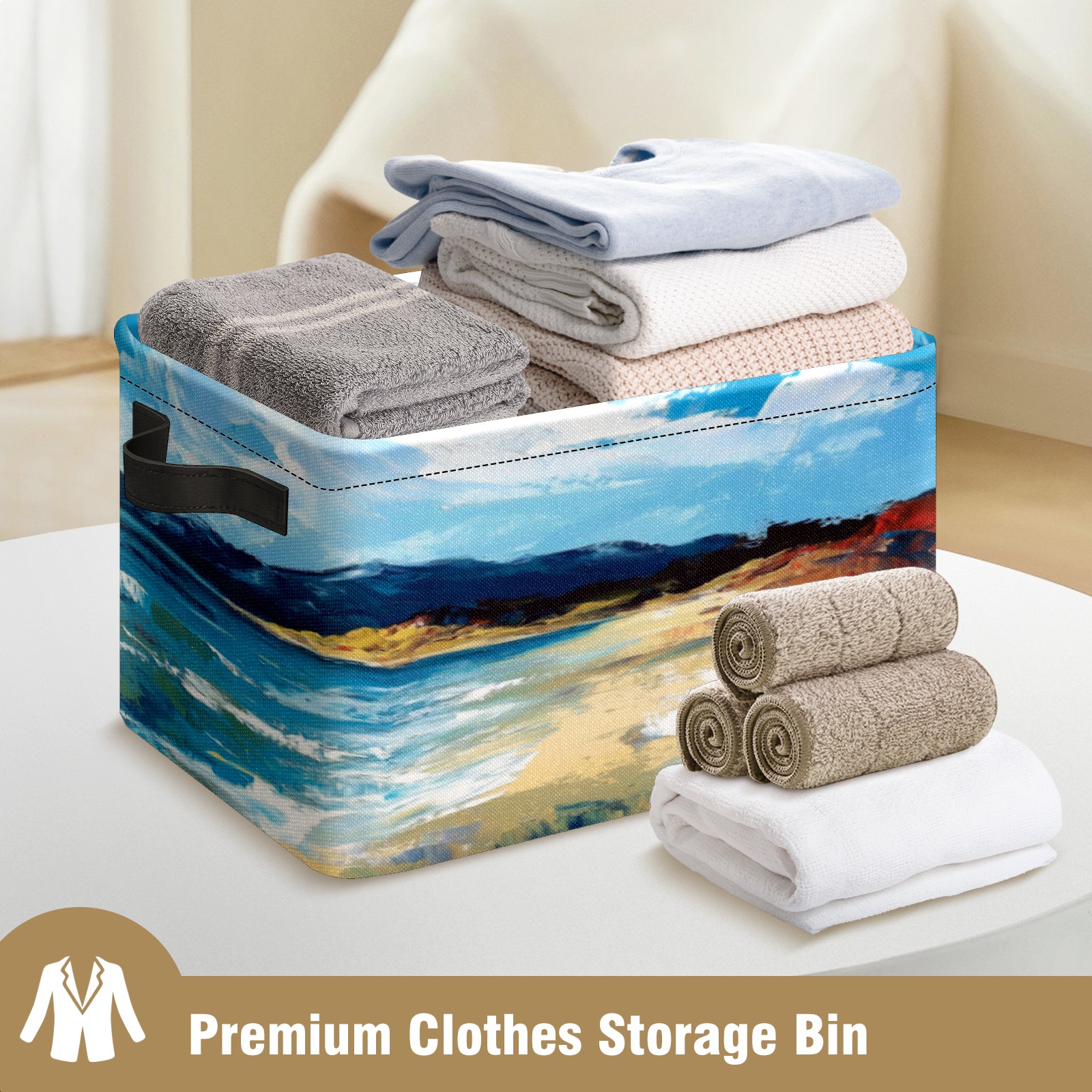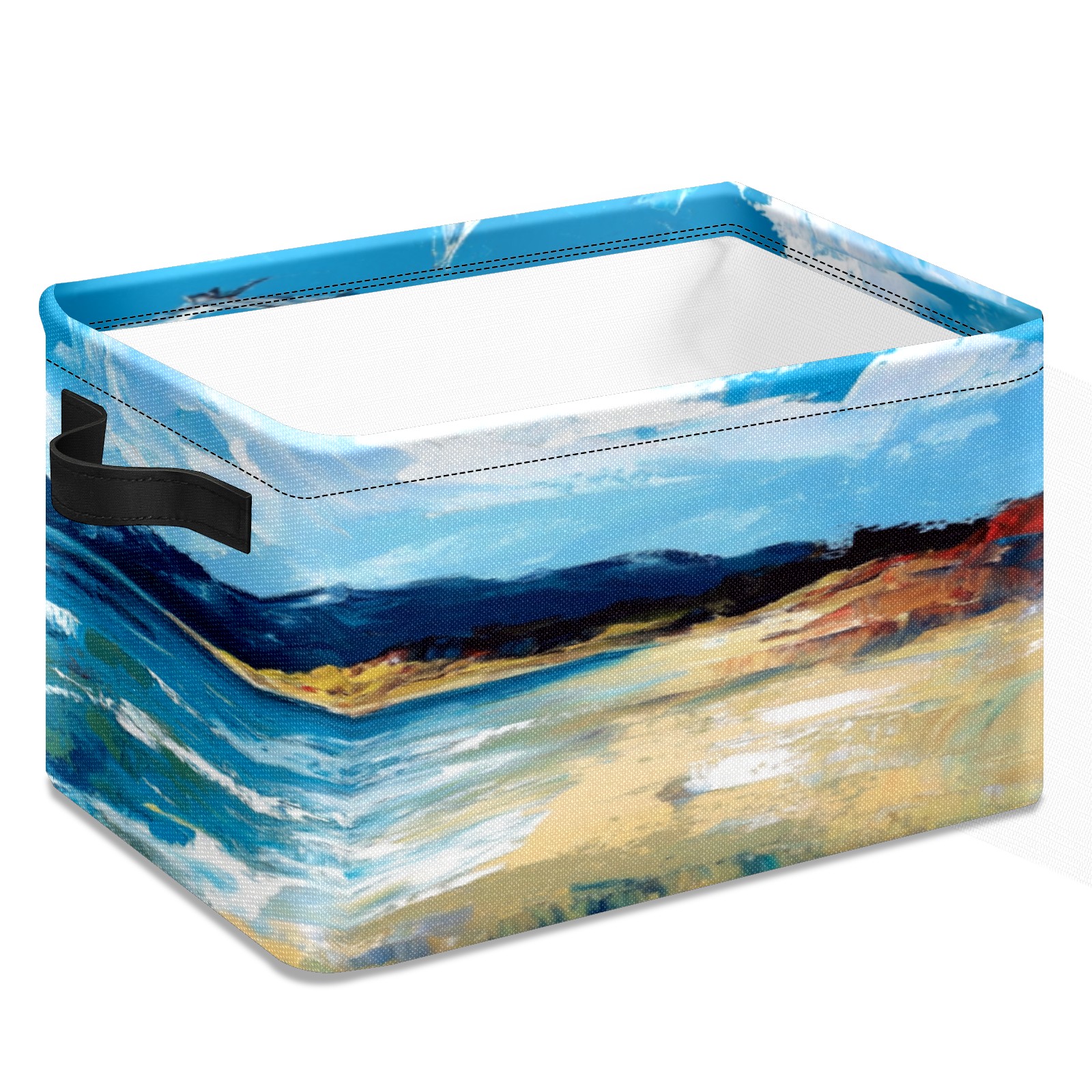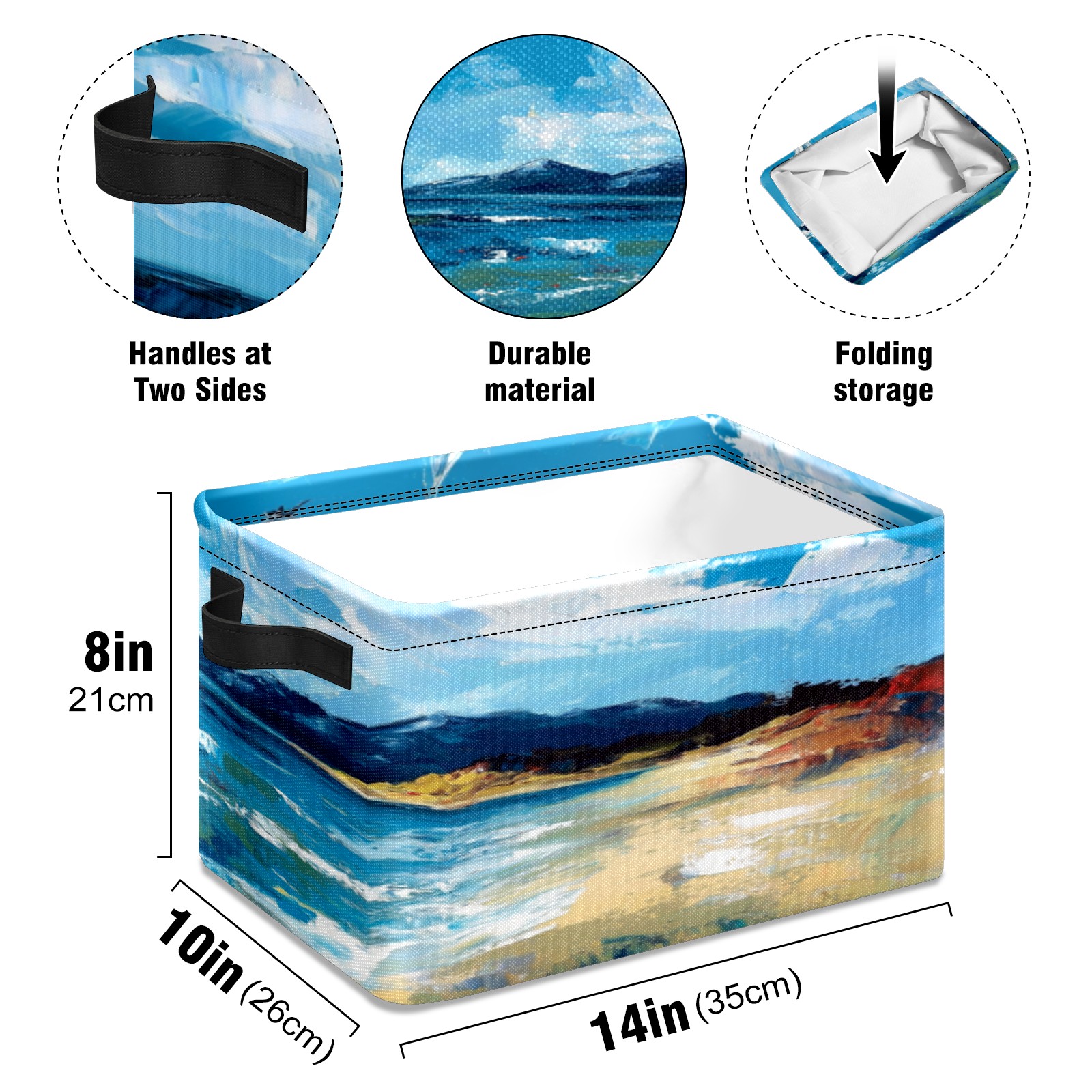 Foldable and Stackable Fabric Storage Basket for Home Organization with Handles, Decorative Closet Bins for Shelves, Laundry, and Toy Storage( Sea)