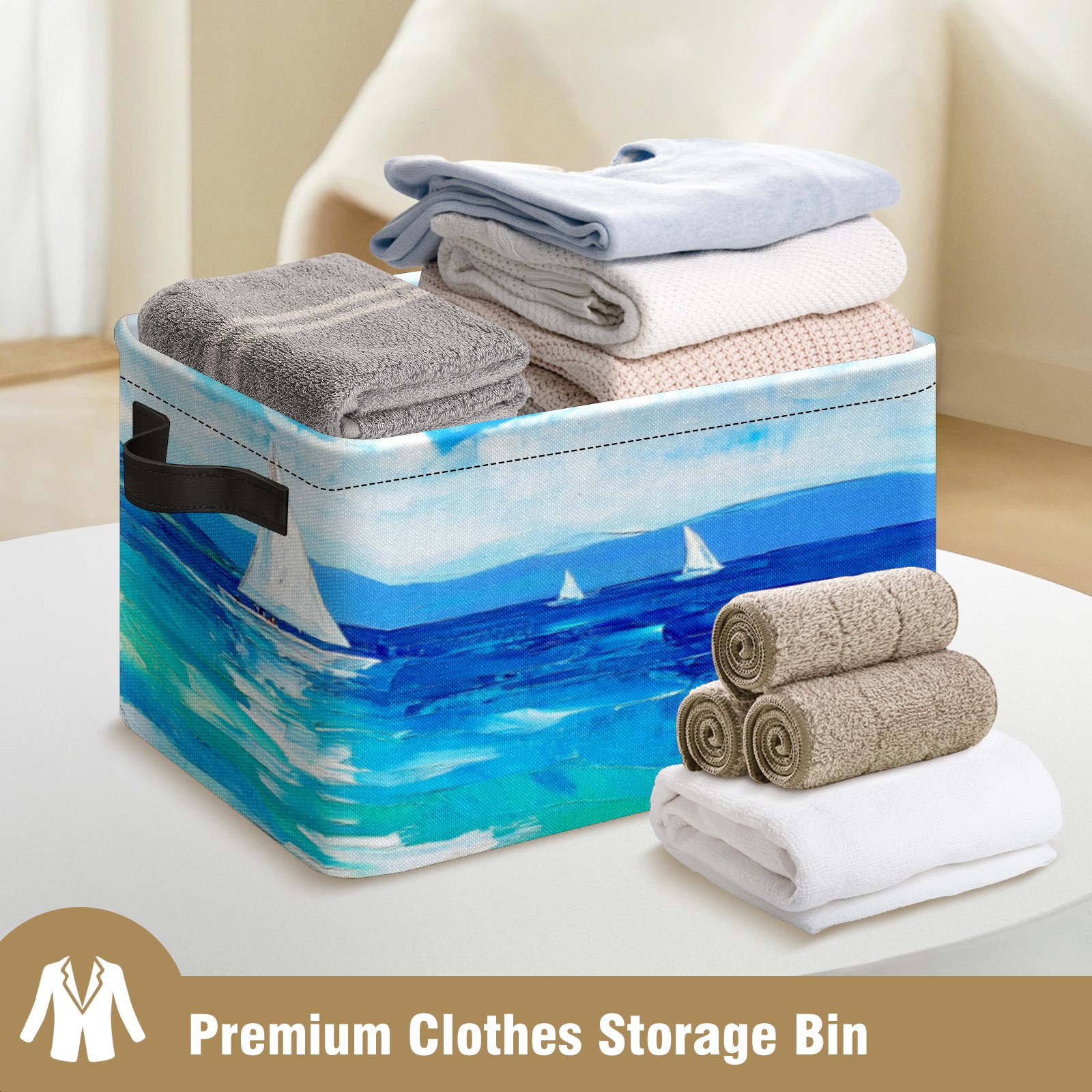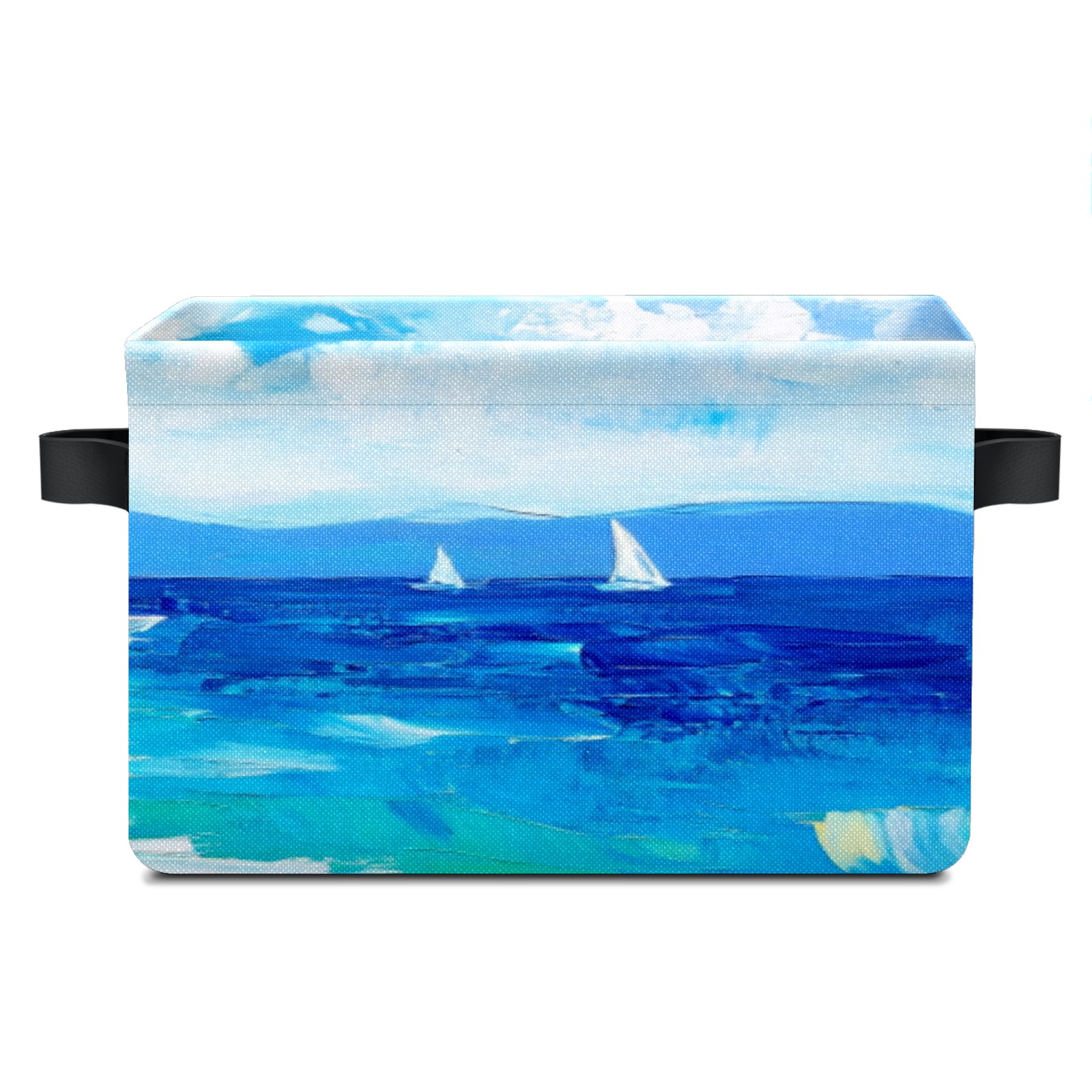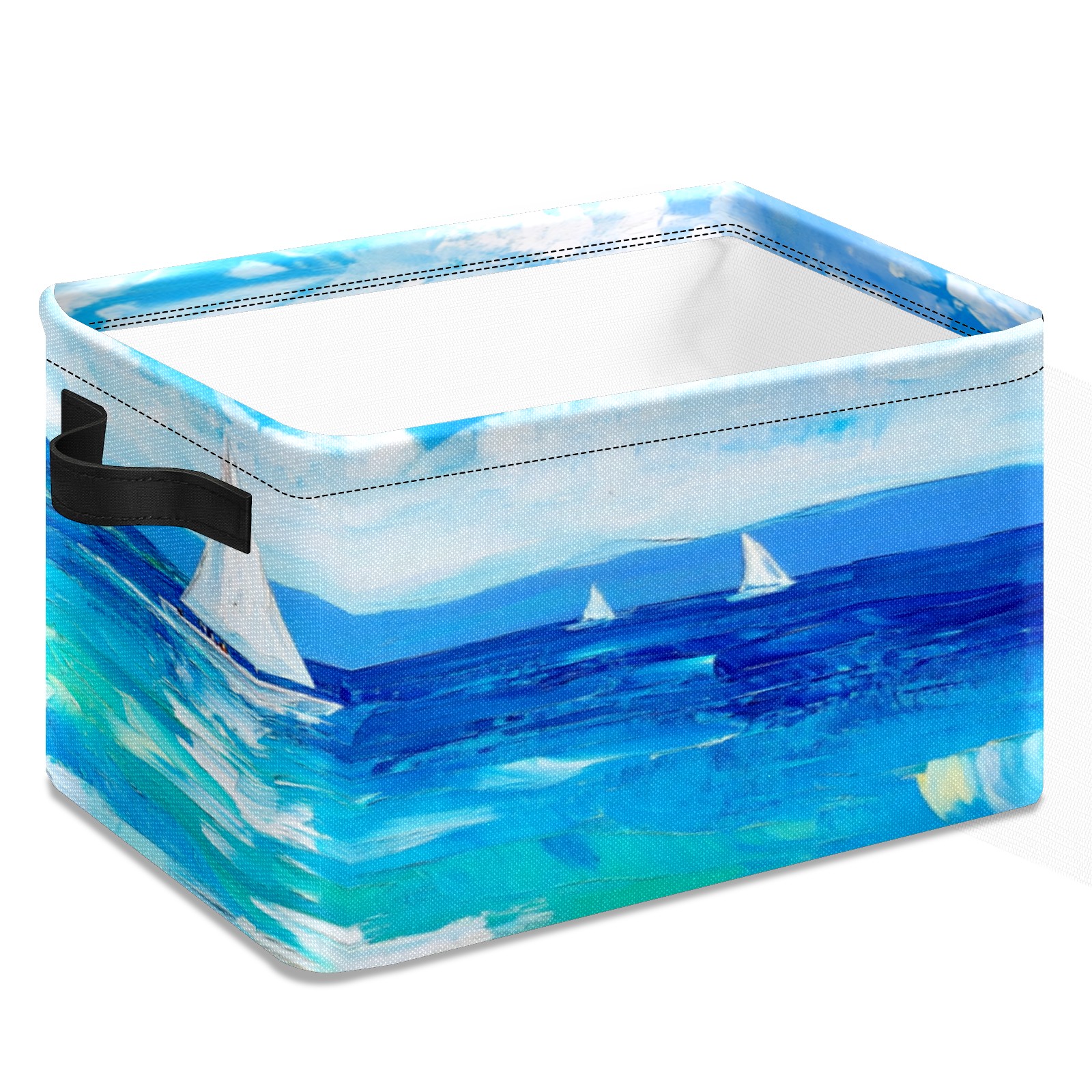 Foldable and Stackable Fabric Storage Basket for Home Organization with Handles, Decorative Closet Bins for Shelves, Laundry, and Toy Storage( Sailing Sea)