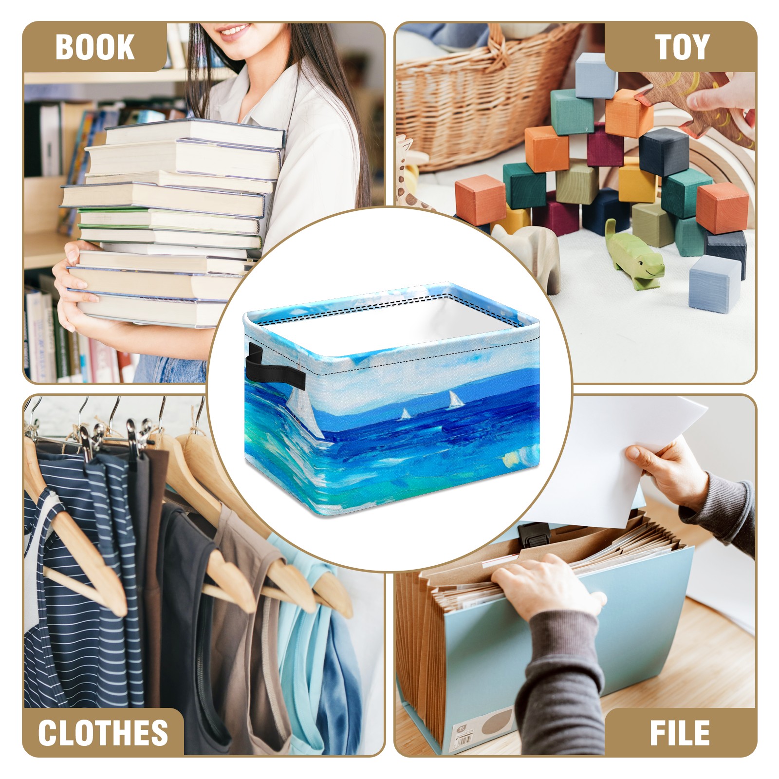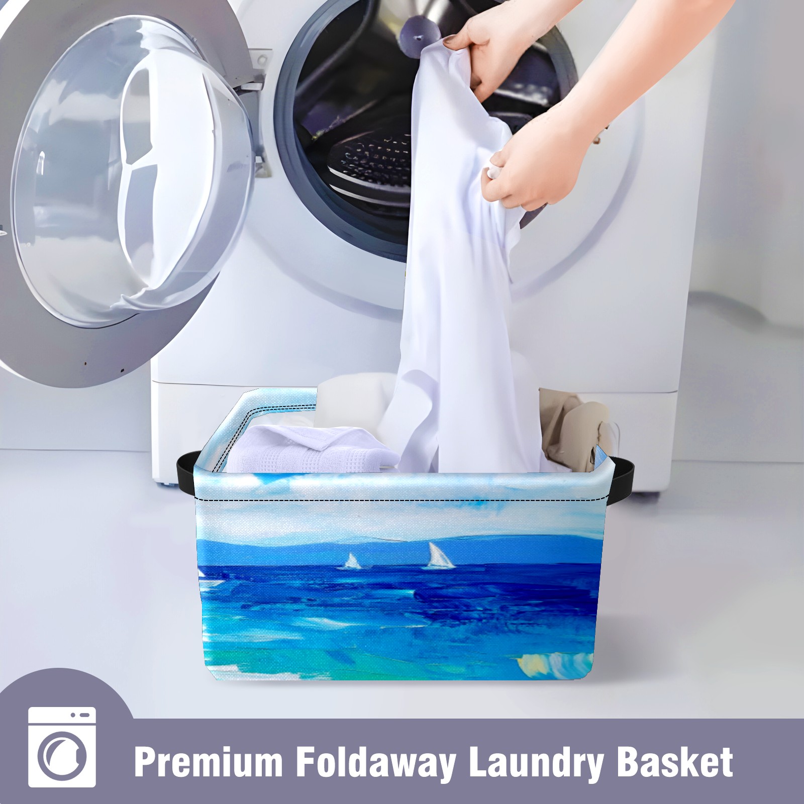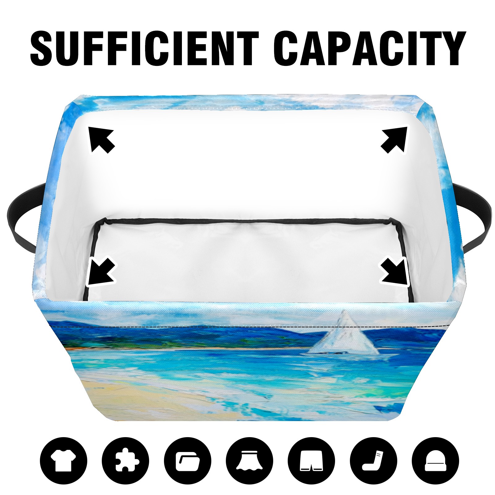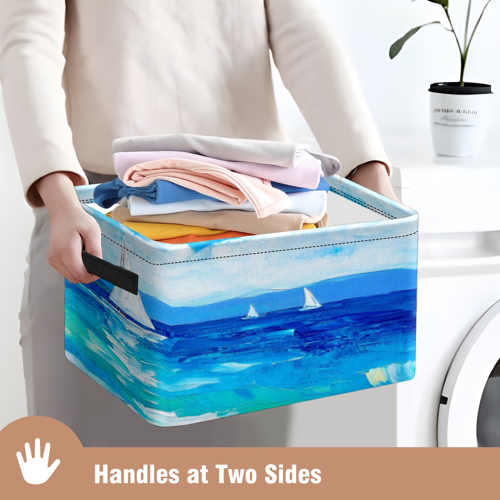Foldable and Stackable Fabric Storage Basket for Home Organization with Handles, Decorative Closet Bins for Shelves, Laundry, and Toy Storage( Sailing Sea)
