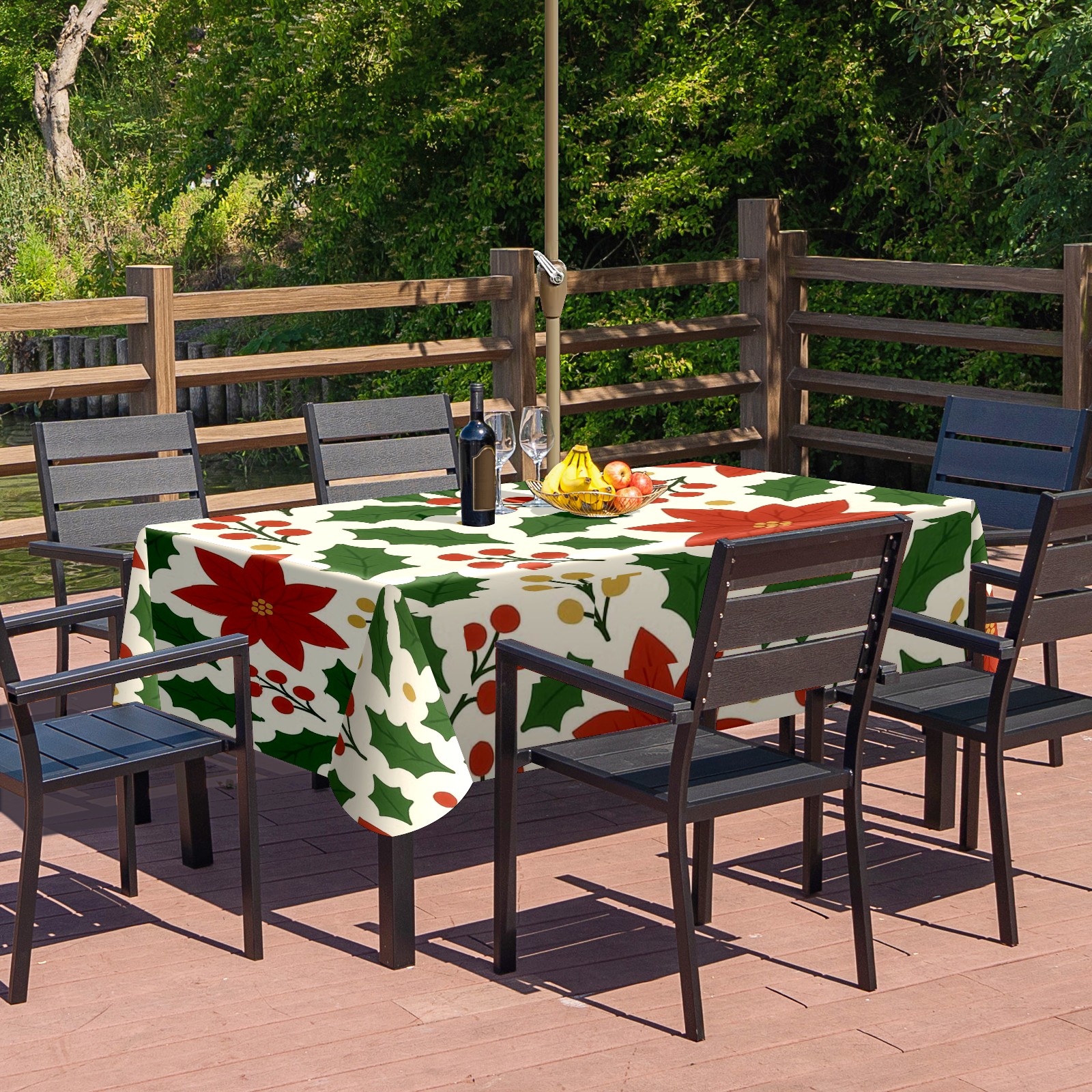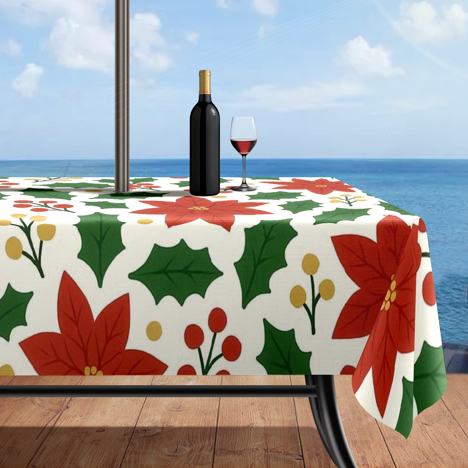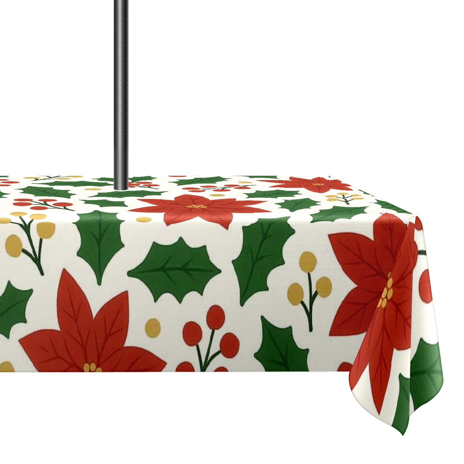 Zipper Square Tablecloth with Poinsettia Red Green Floral | Waterproof Outdoor Patio Cover for 6-8 Seater Table, 52x70 Inch, Easy to Clean & Setup