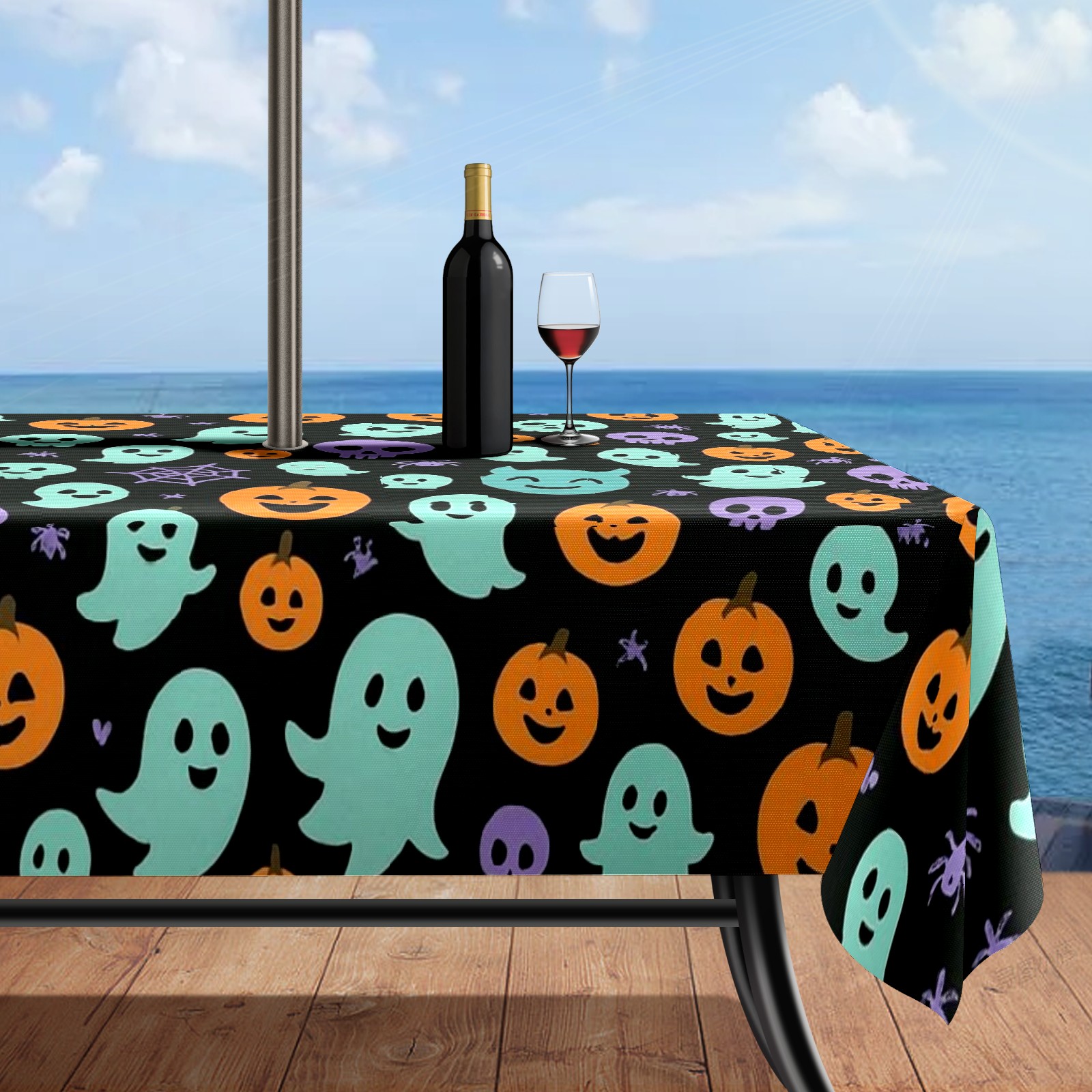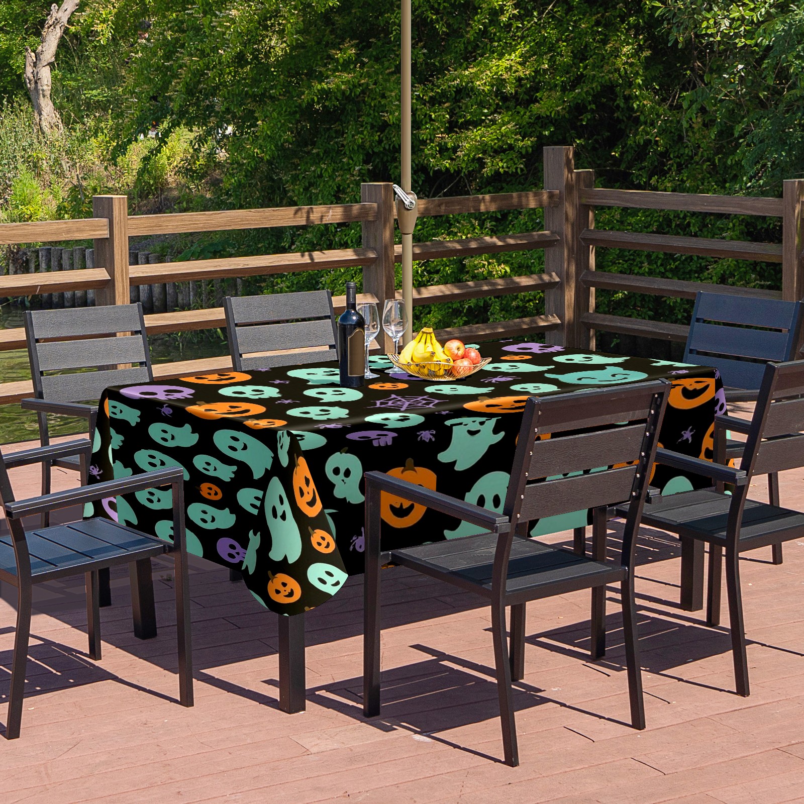 Zipper Square Tablecloth with Halloween Elements Black Floral | Waterproof Outdoor Patio Cover for 6-8 Seater Table, 52x70 Inch, Easy to Clean & Setup