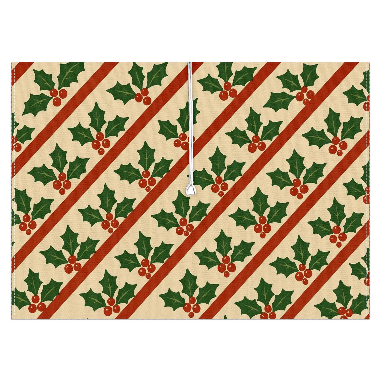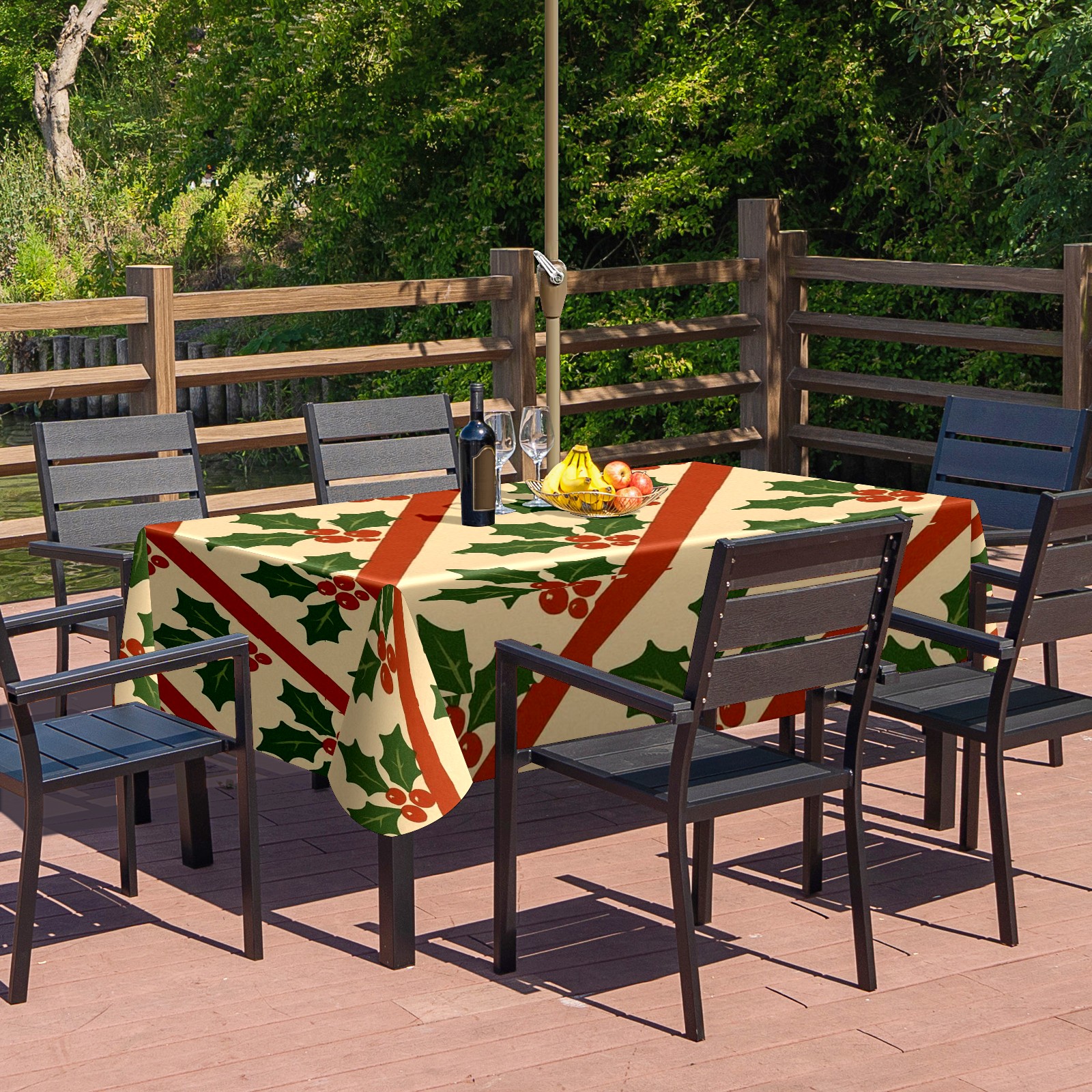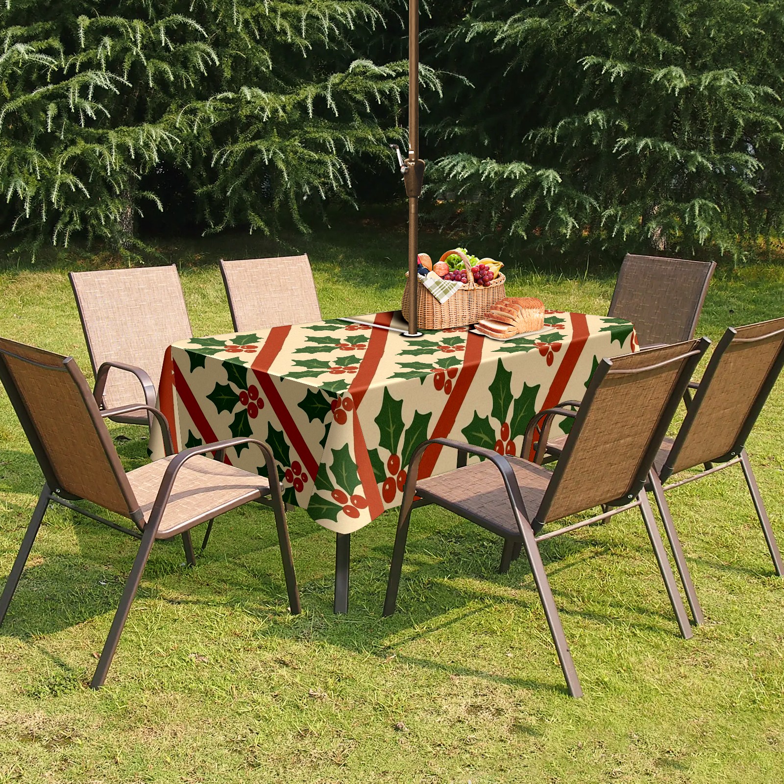 Zipper Square Tablecloth with Holly Leaf Beige Red Green Striped | Waterproof Outdoor Patio Cover for 6-8 Seater Table, 52x70 Inch, Easy to Clean & Setup