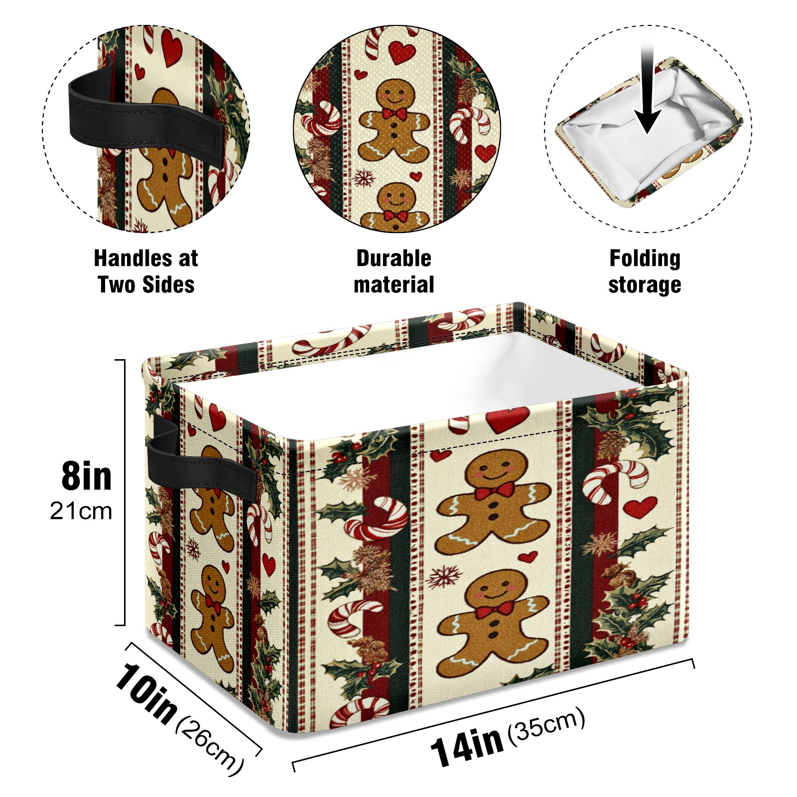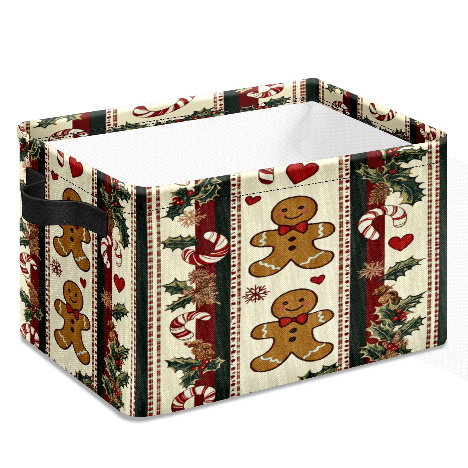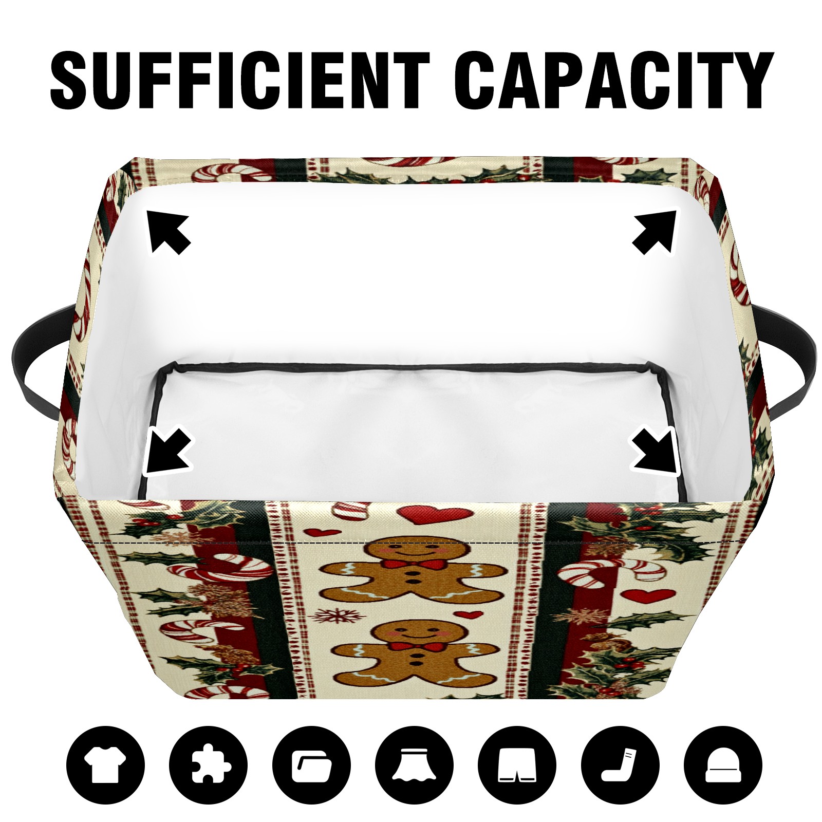 Large Storage Box,Christmas Gingerbread Candy Canes Foldable Storage Baskets with Handles for Organizing Clothes, Gift Storage, Children's Toys