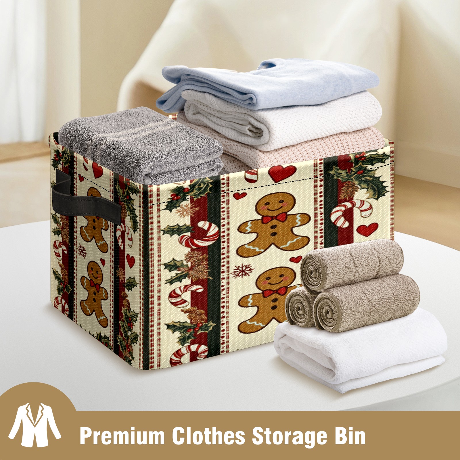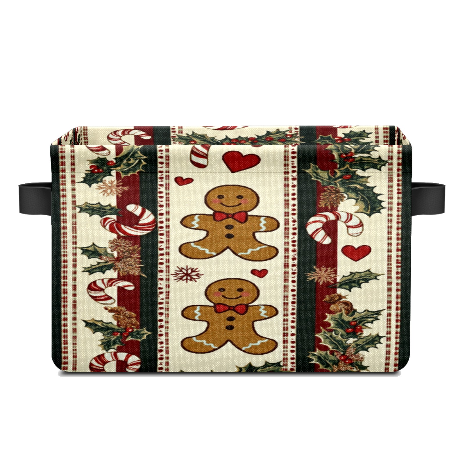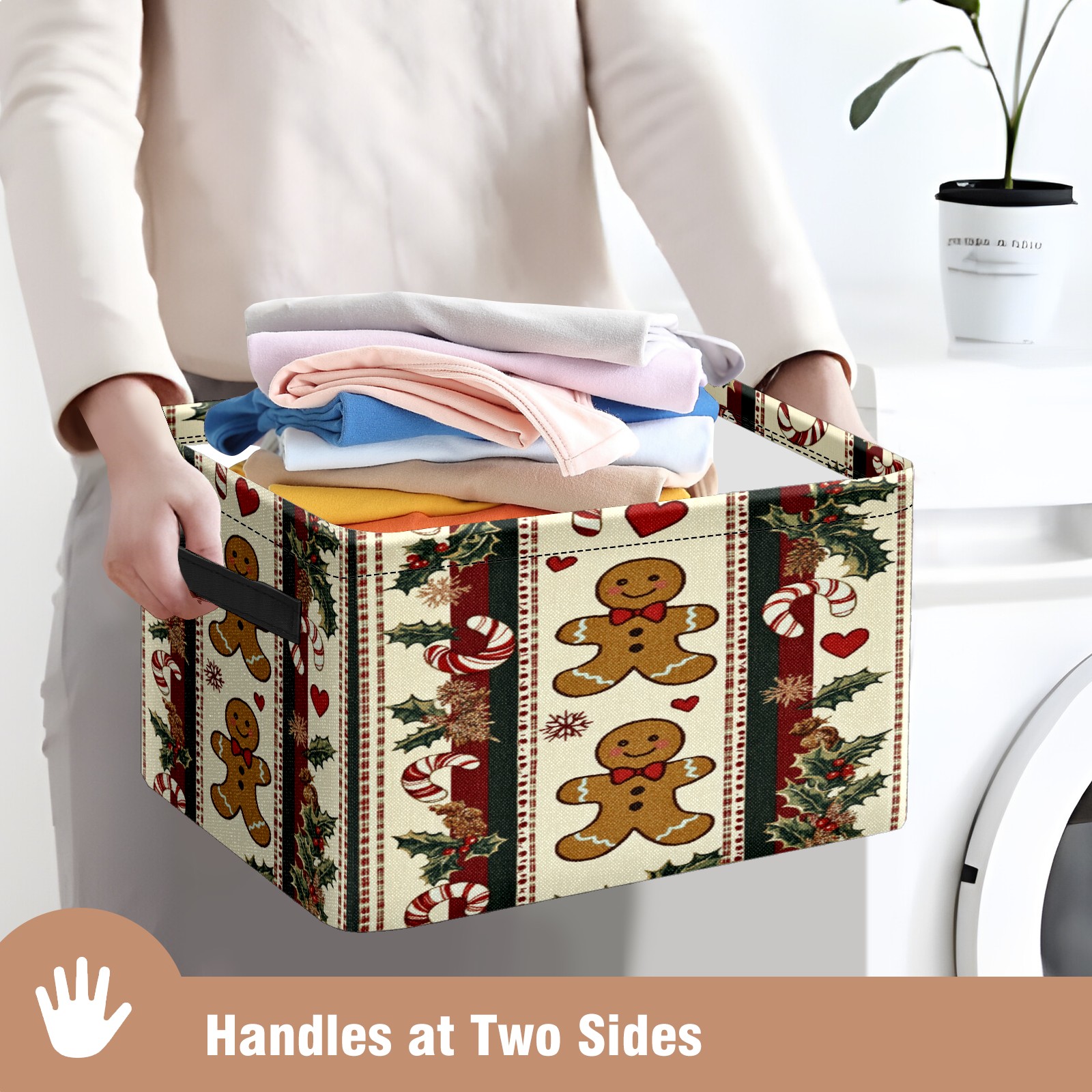 Large Storage Box,Christmas Gingerbread Candy Canes Foldable Storage Baskets with Handles for Organizing Clothes, Gift Storage, Children's Toys
