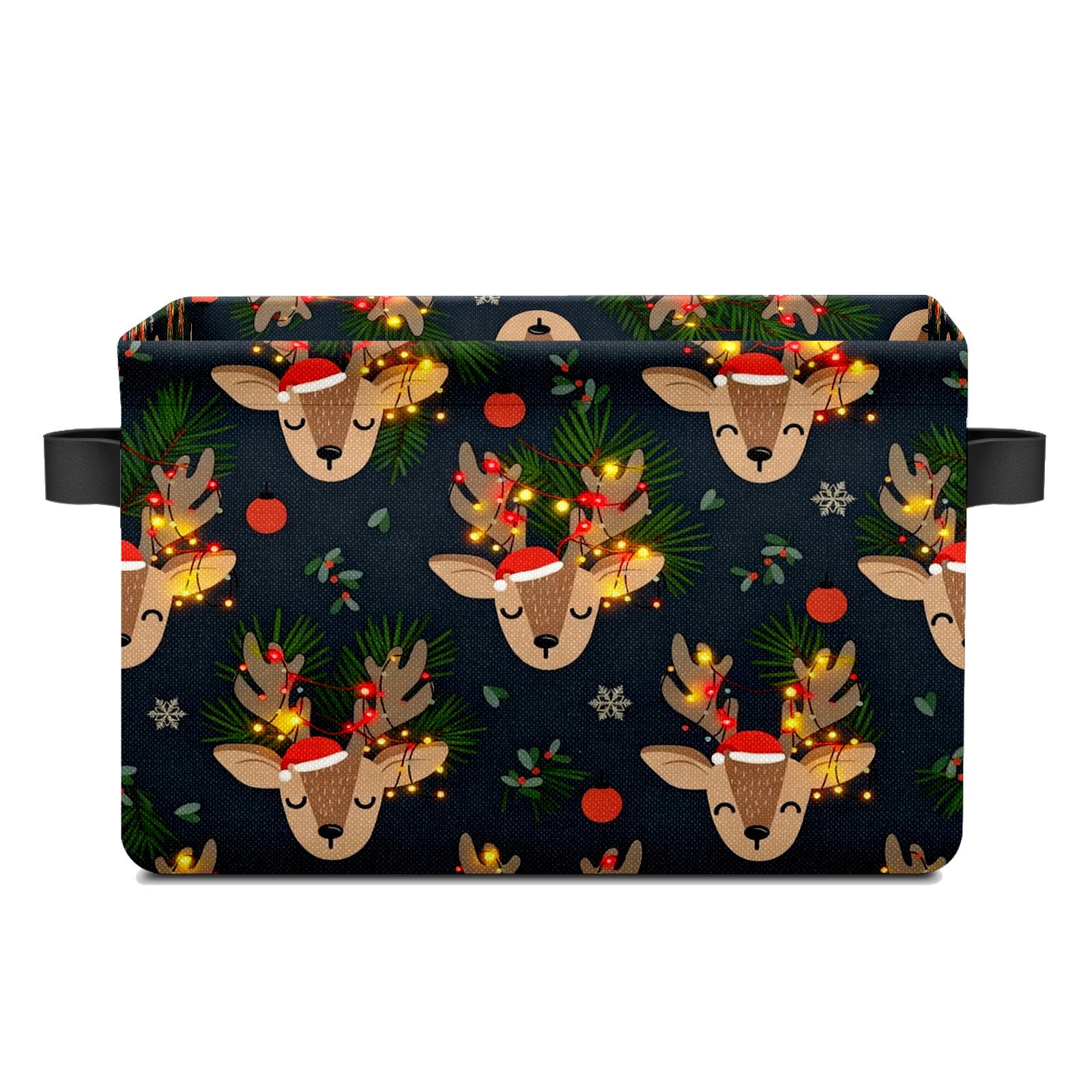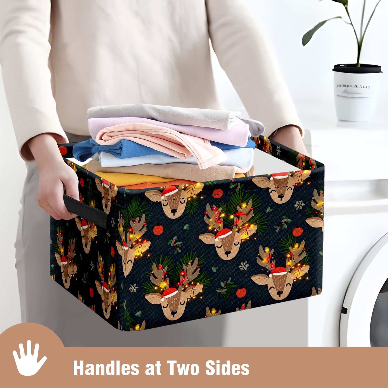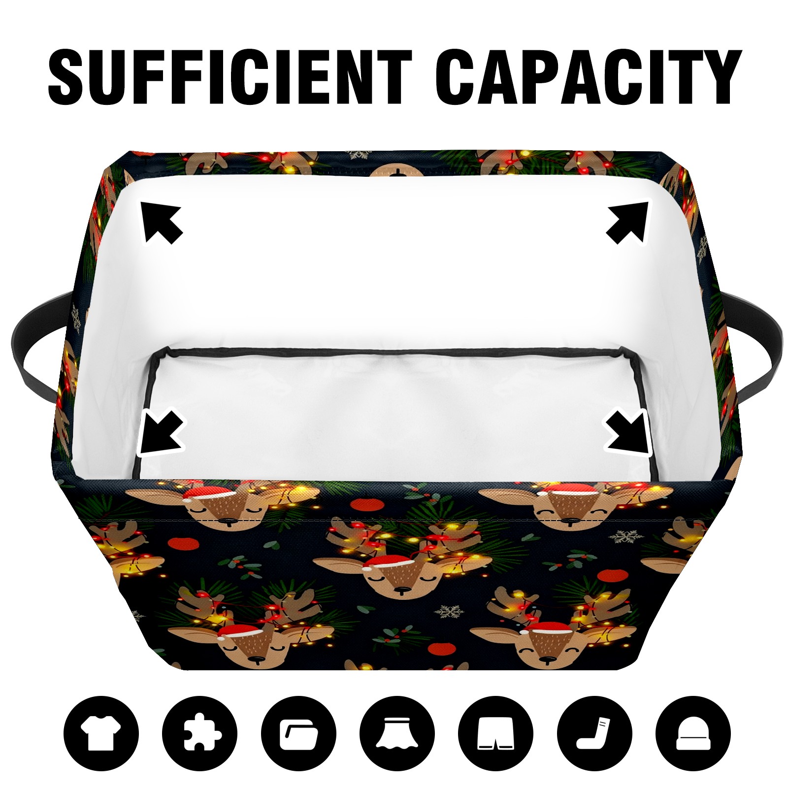 Large Storage Box,Christmas Elk Light Pattern Foldable Storage Baskets with Handles for Organizing Clothes, Gift Storage, Children's Toys