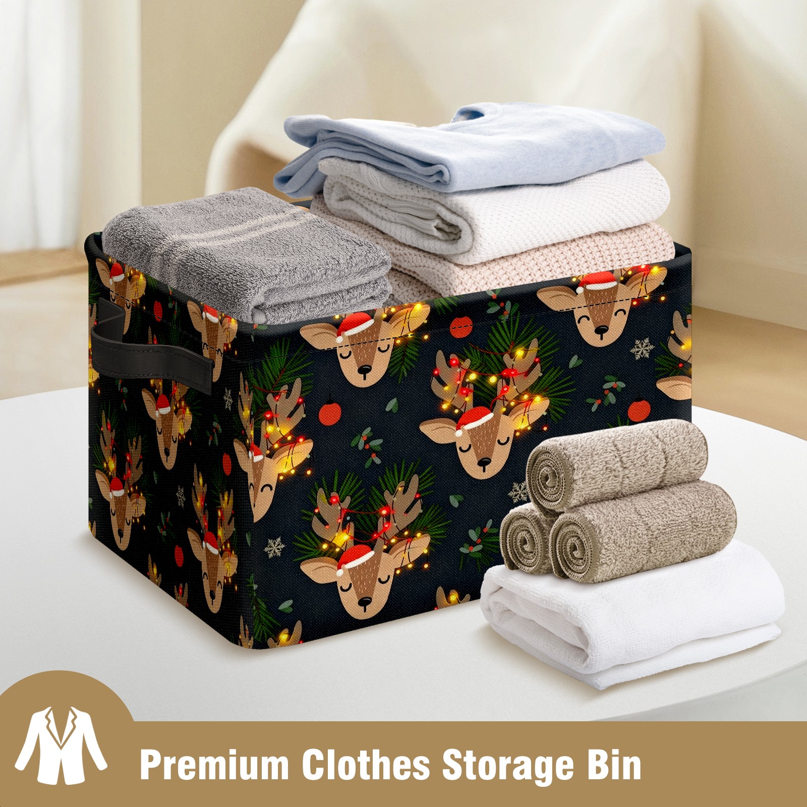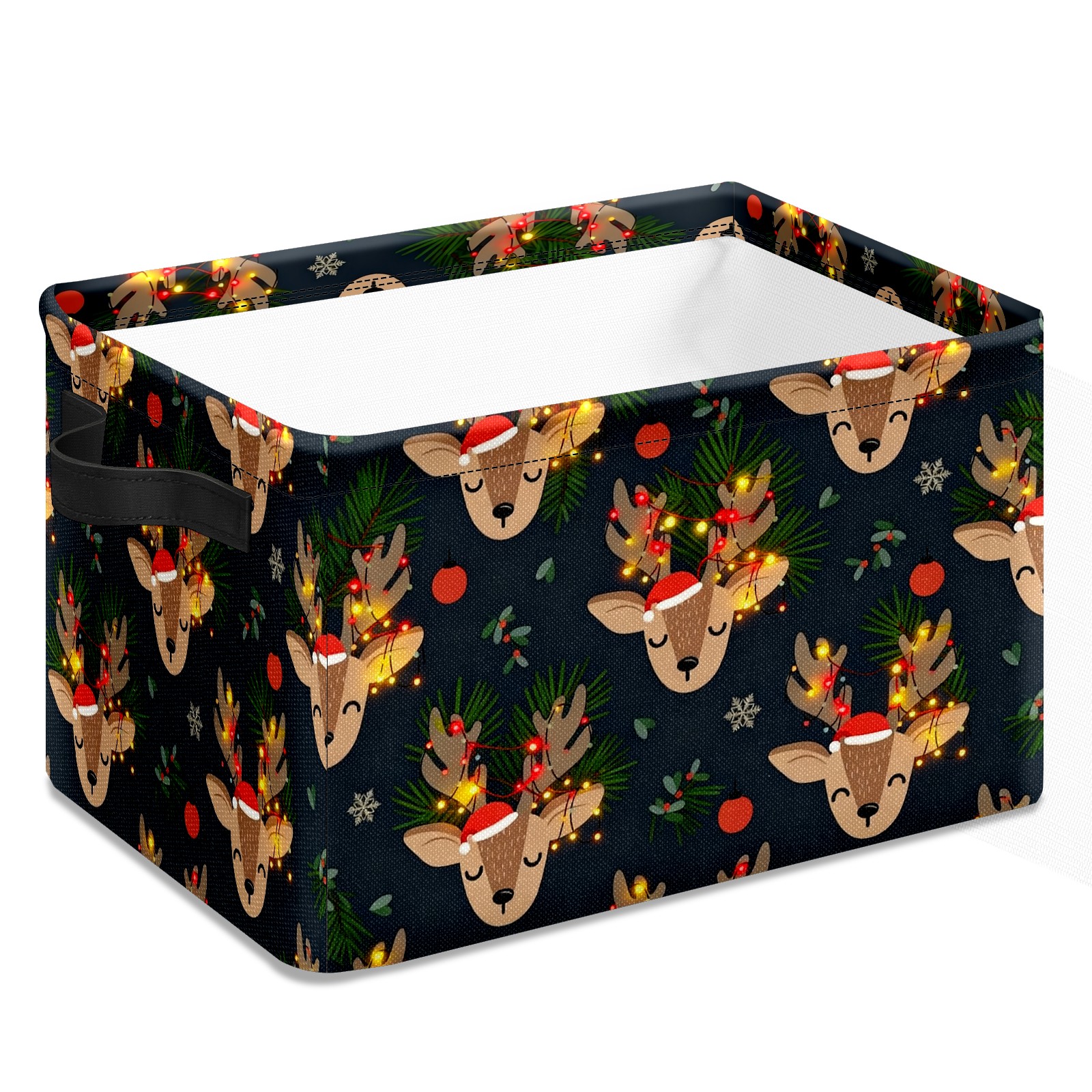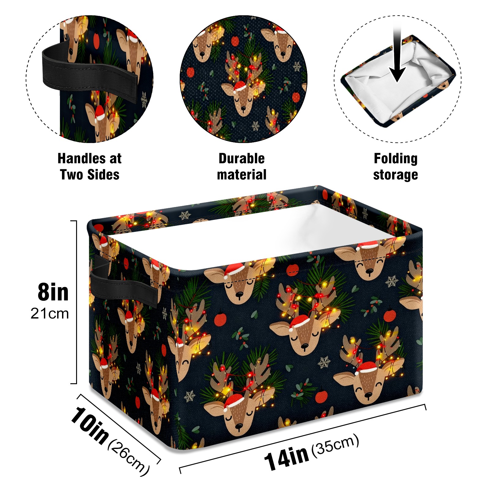 Large Storage Box,Christmas Elk Light Pattern Foldable Storage Baskets with Handles for Organizing Clothes, Gift Storage, Children's Toys