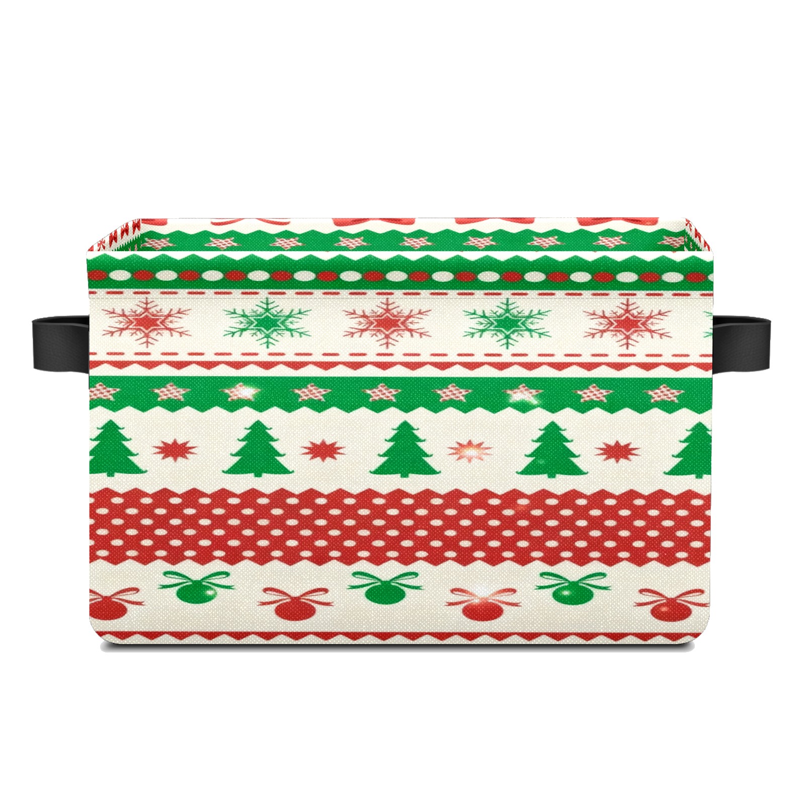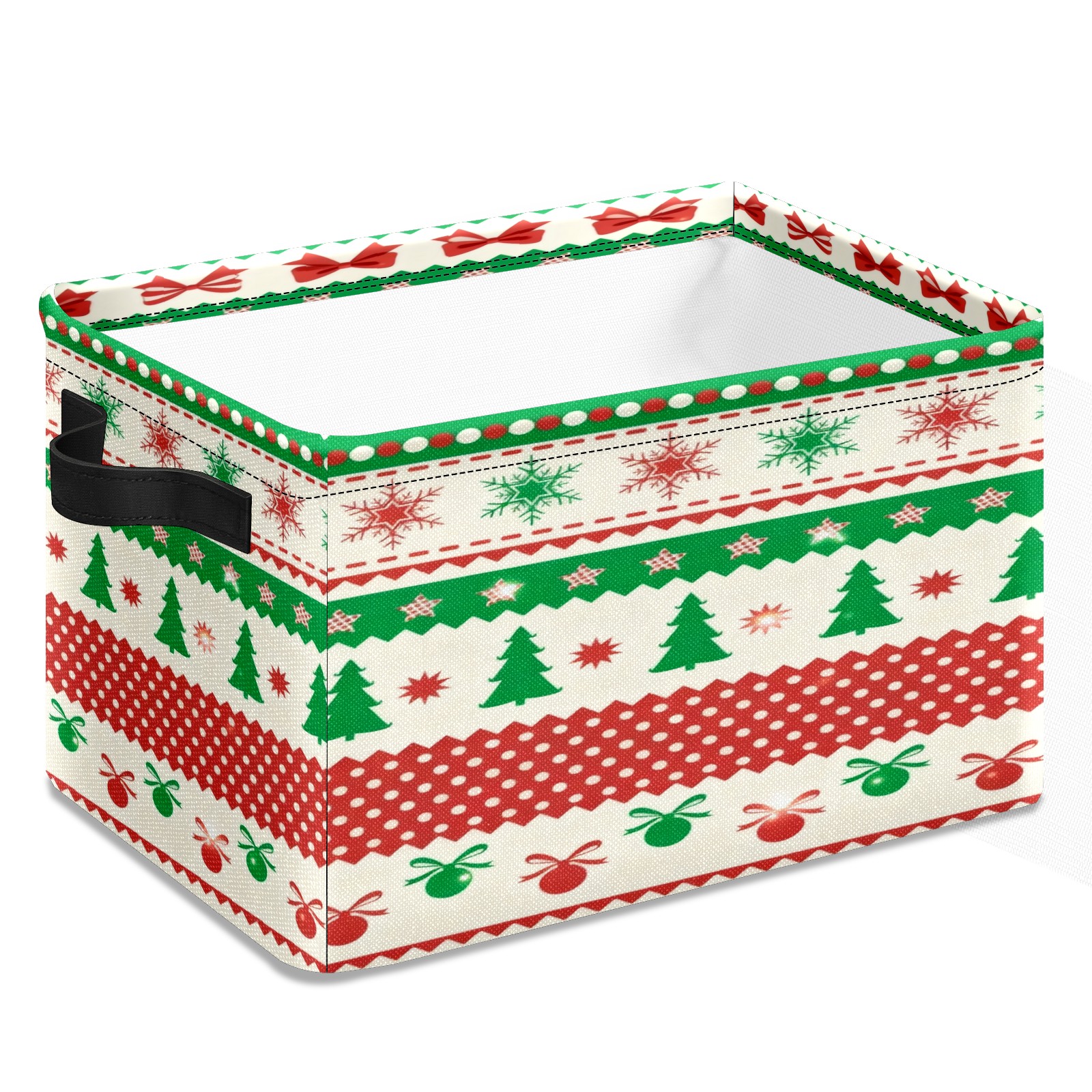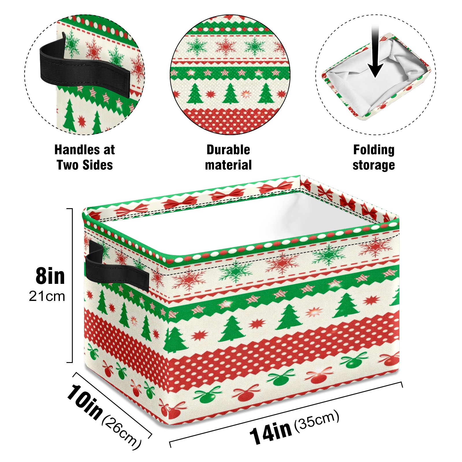 Large Storage Box,Christmas Green Red Striped Pine Tree Pattern Foldable Storage Baskets with Handles for Organizing Clothes, Gift Storage, Children's Toys