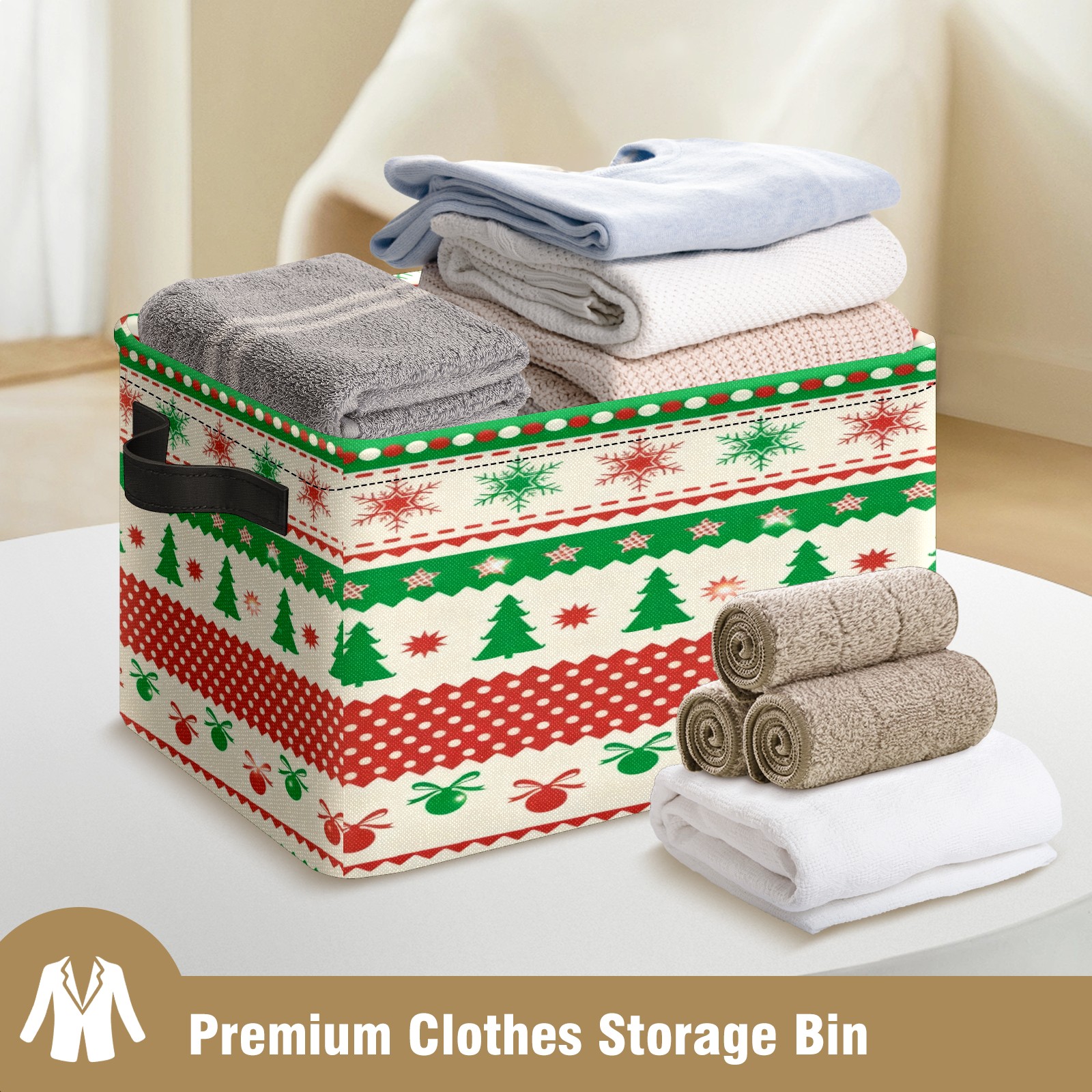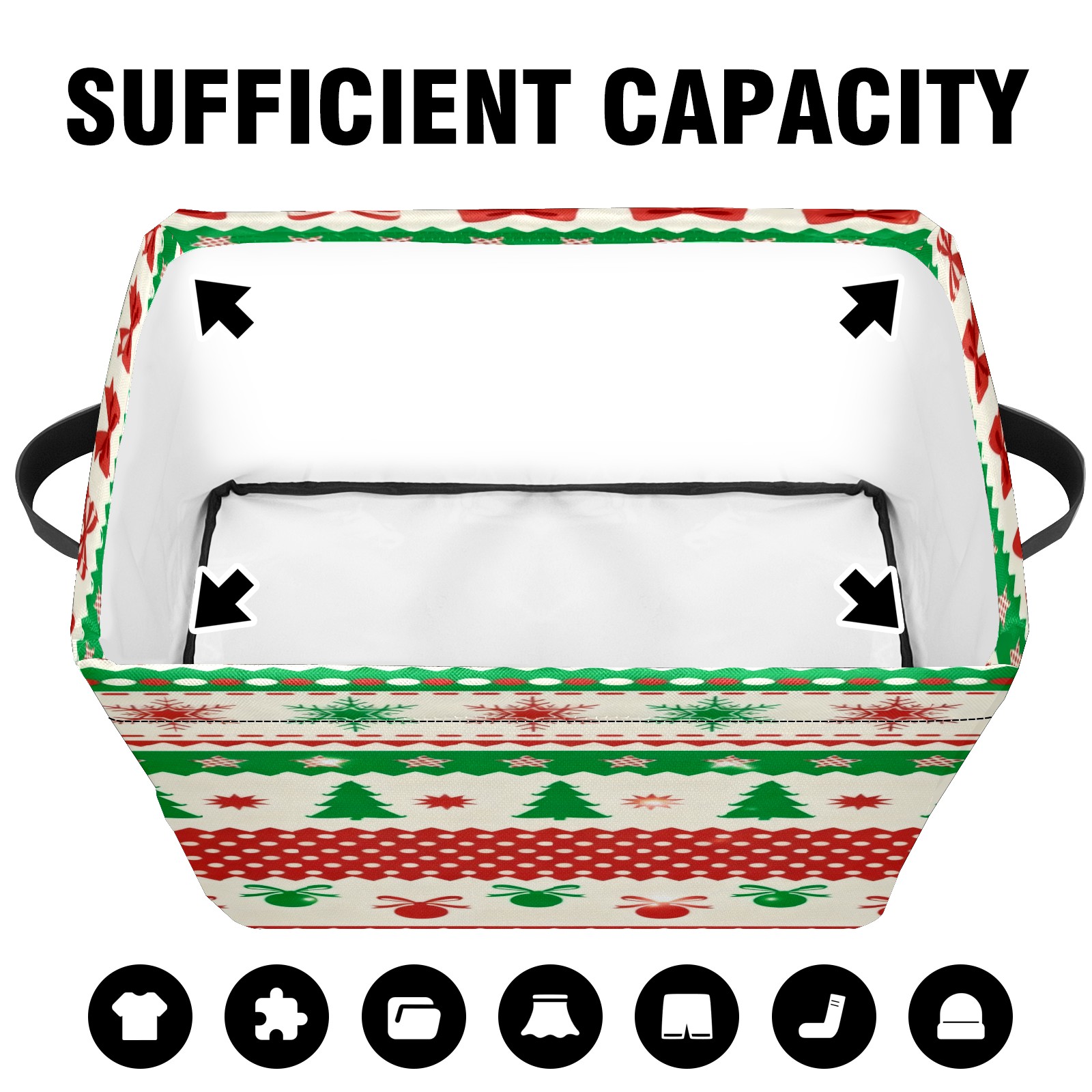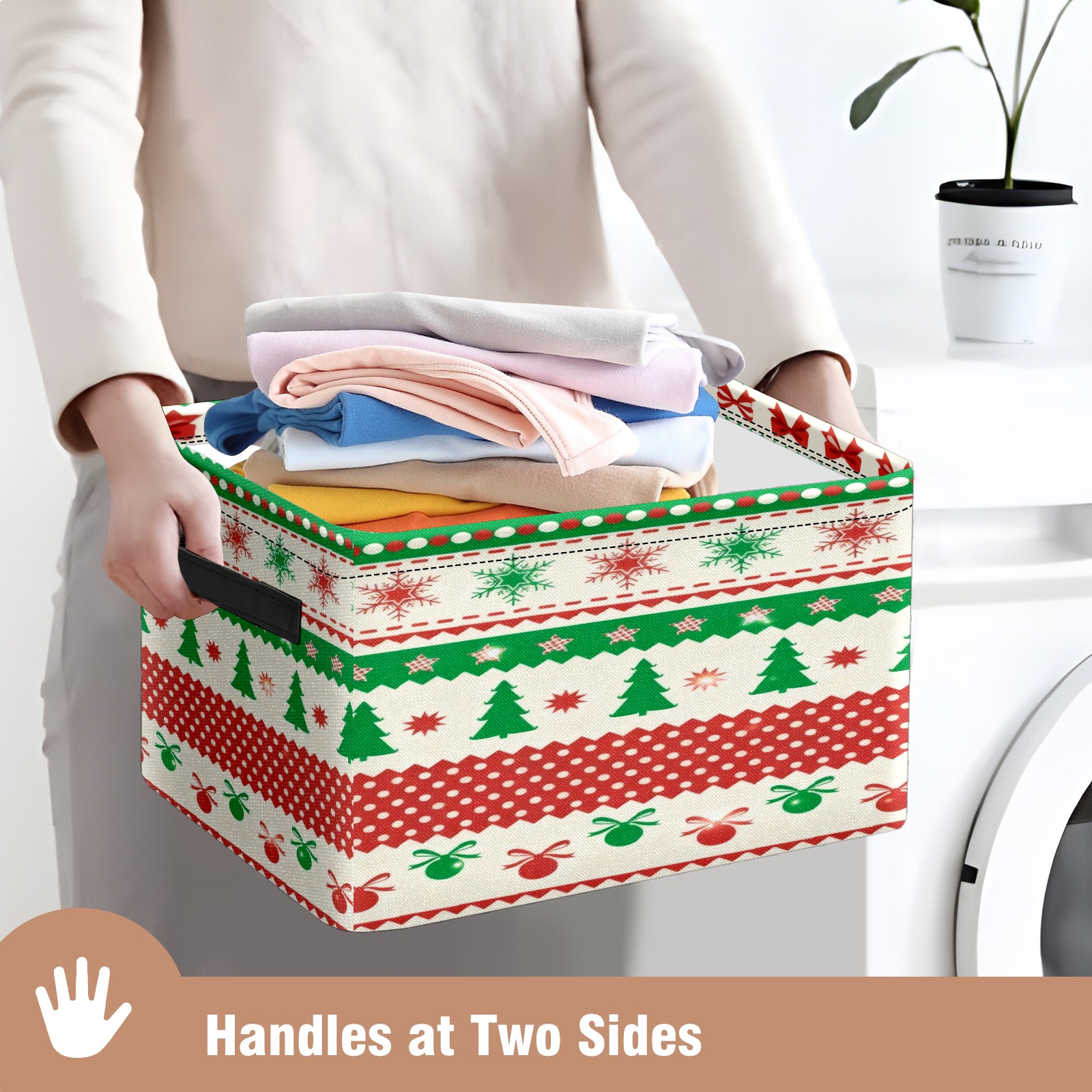 Large Storage Box,Christmas Green Red Striped Pine Tree Pattern Foldable Storage Baskets with Handles for Organizing Clothes, Gift Storage, Children's Toys