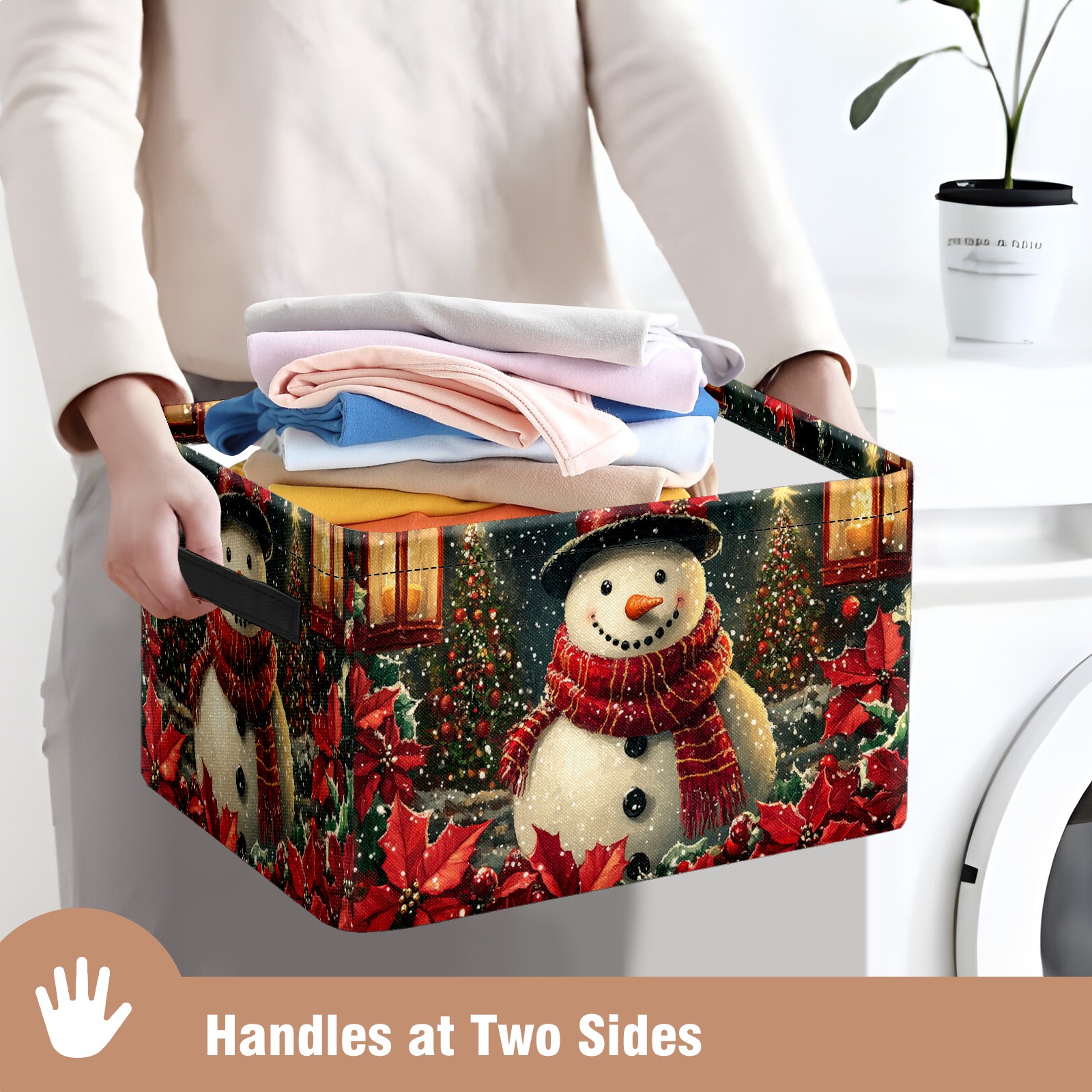 Large Storage Box,Christmas Snowman Foldable Storage Baskets with Handles for Organizing Clothes, Gift Storage, Children's Toys