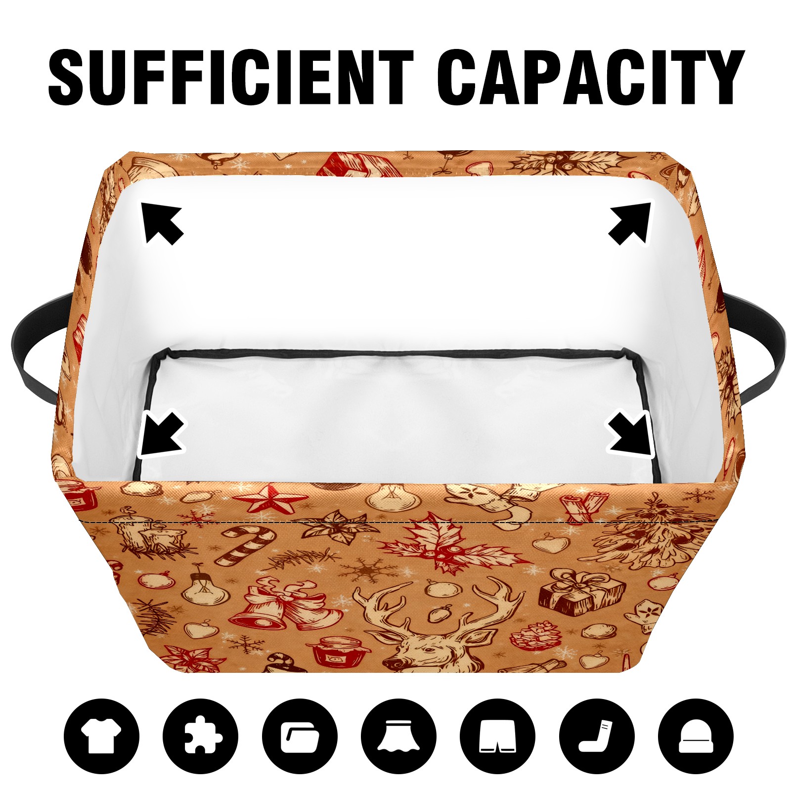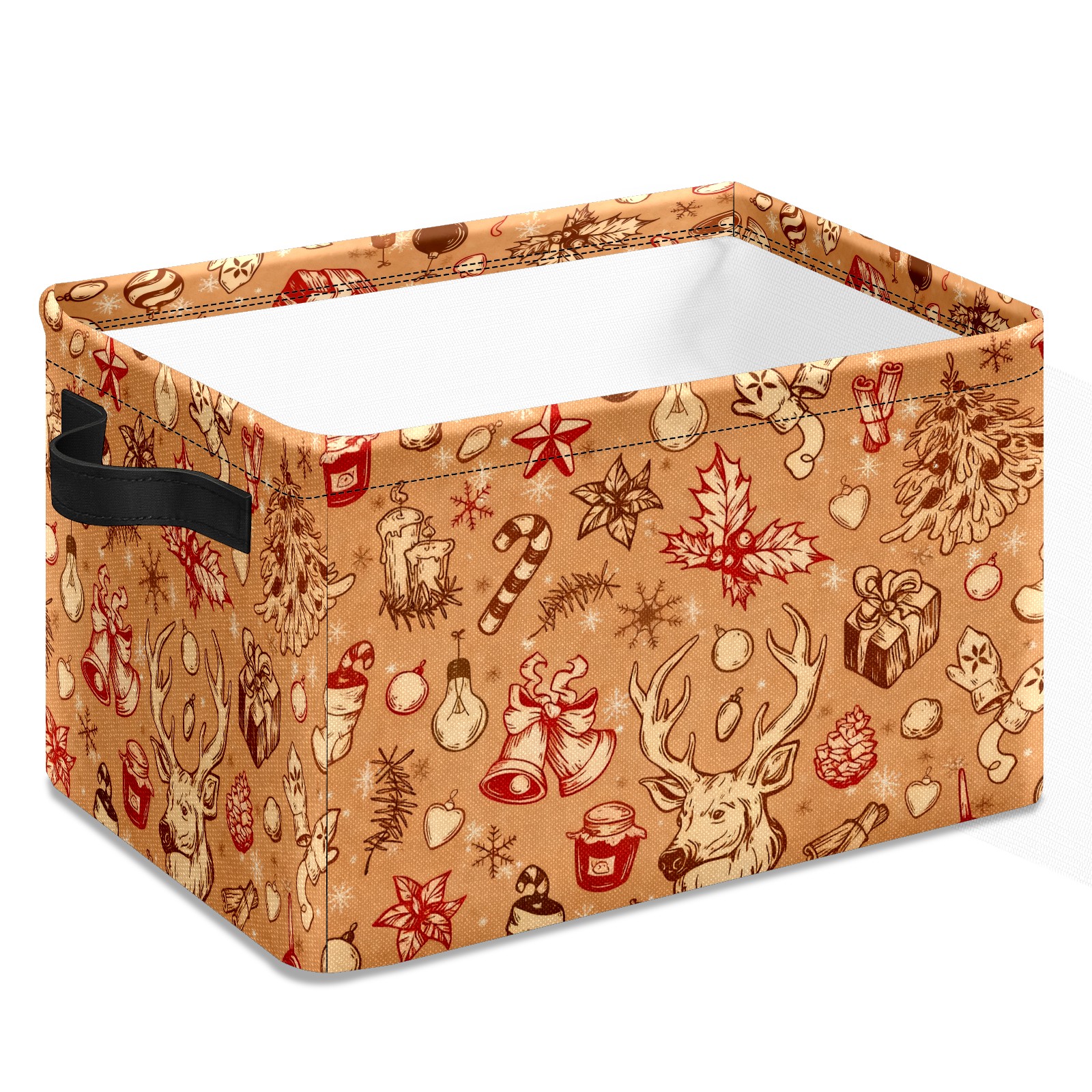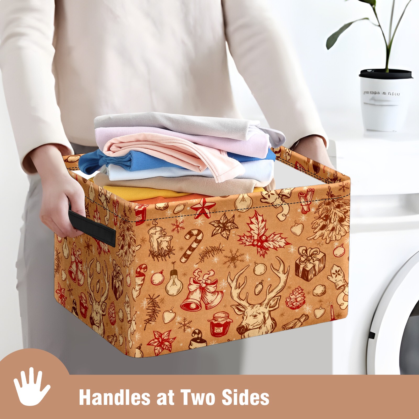 Large Storage Box,Christmas Brown Elk Foldable Storage Baskets with Handles for Organizing Clothes, Gift Storage, Children's Toys