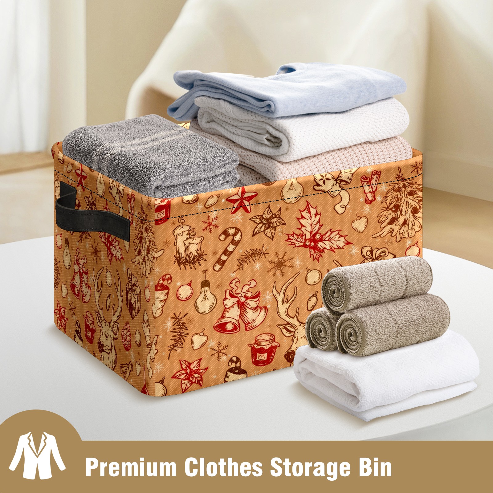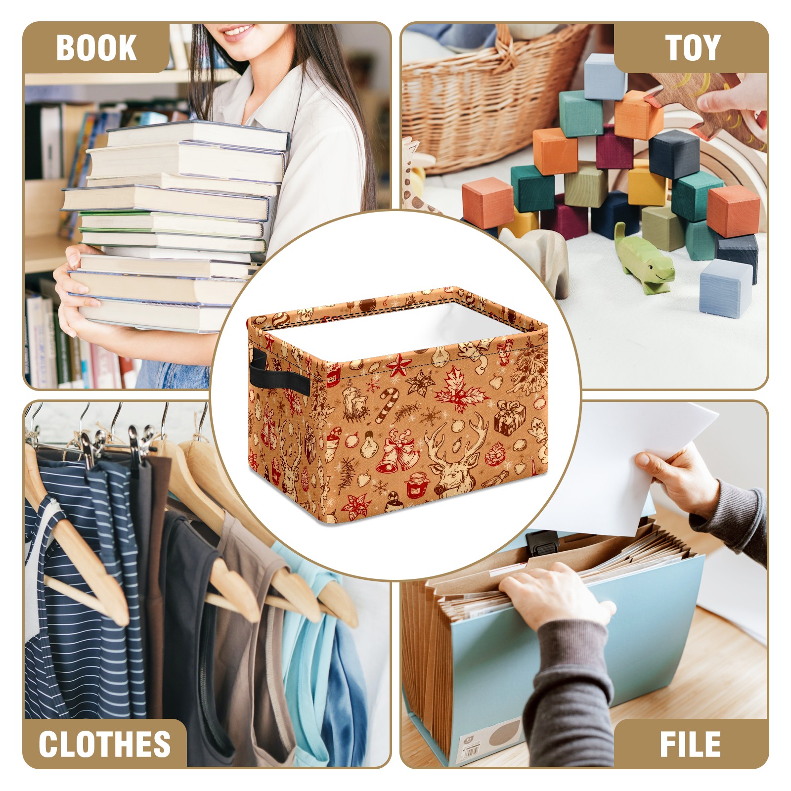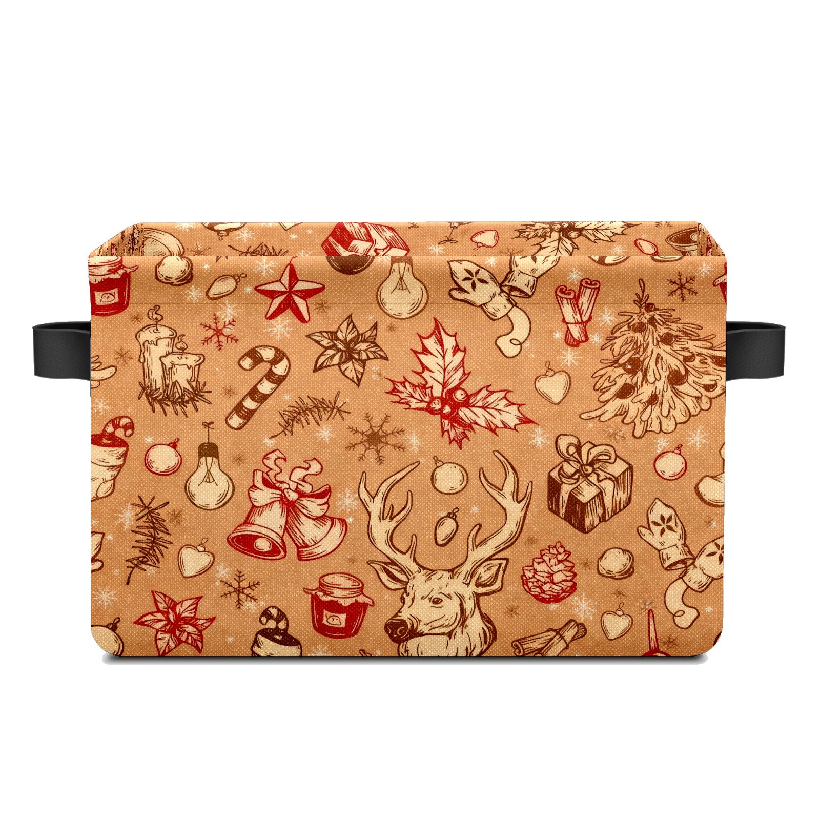 Large Storage Box,Christmas Brown Elk Foldable Storage Baskets with Handles for Organizing Clothes, Gift Storage, Children's Toys