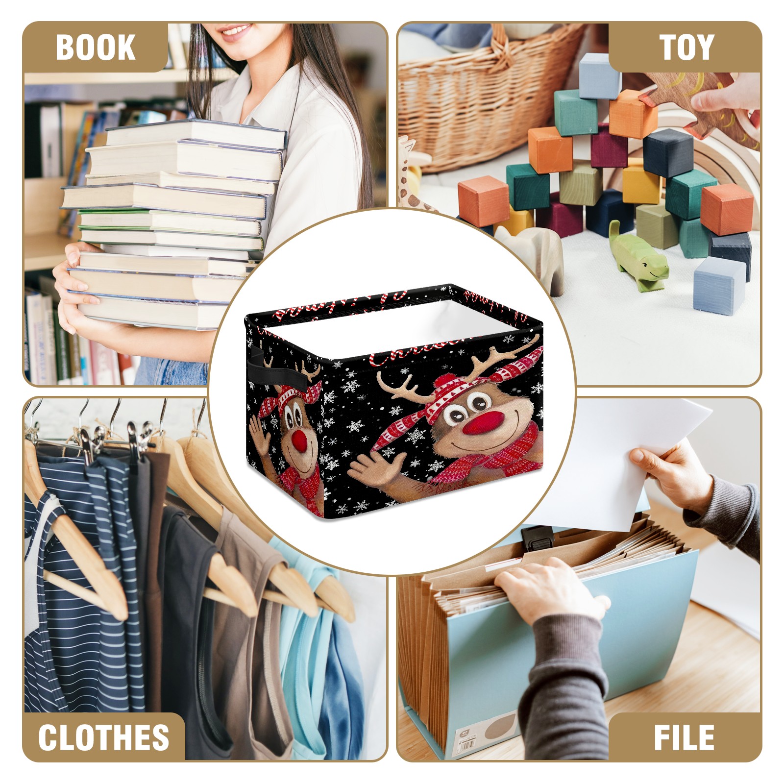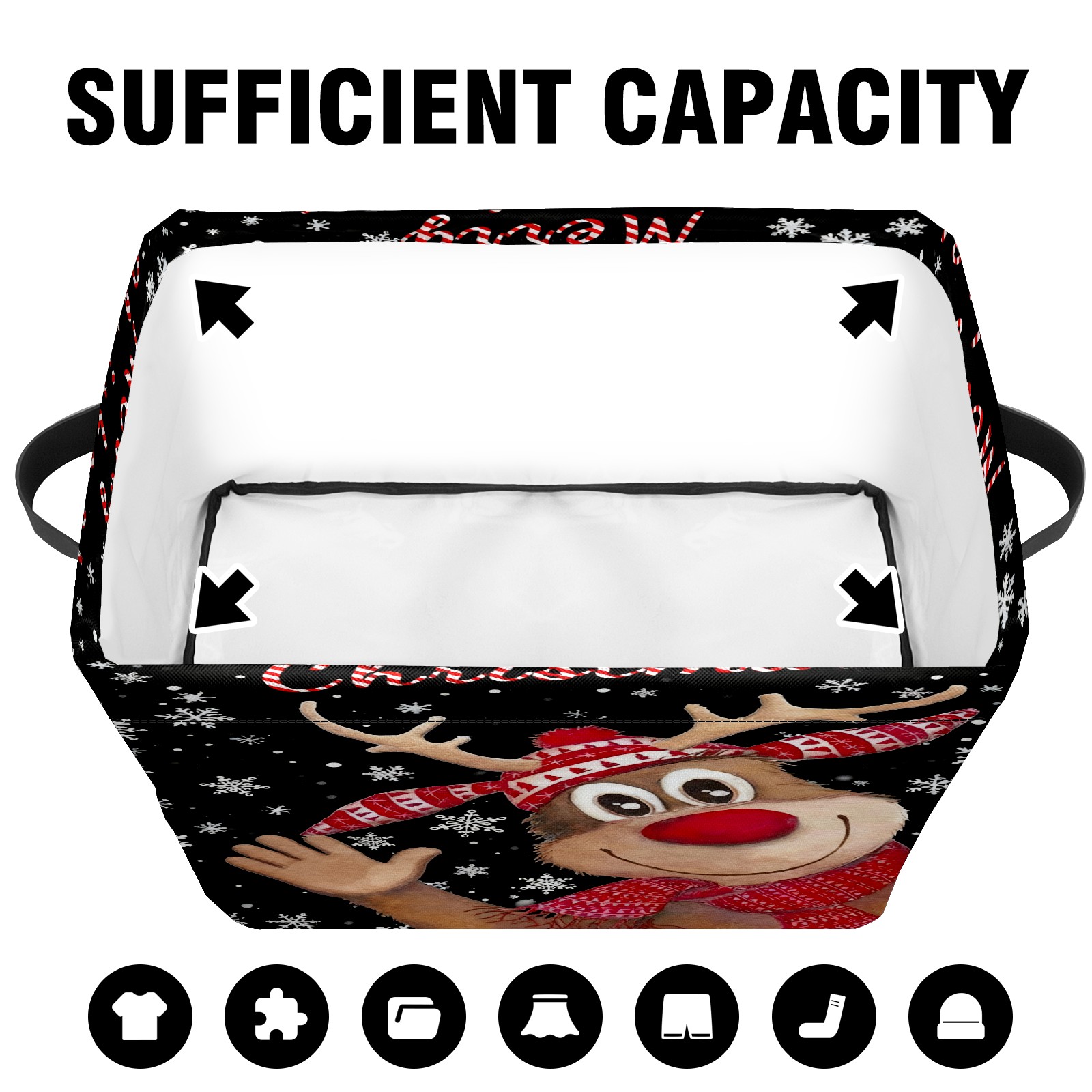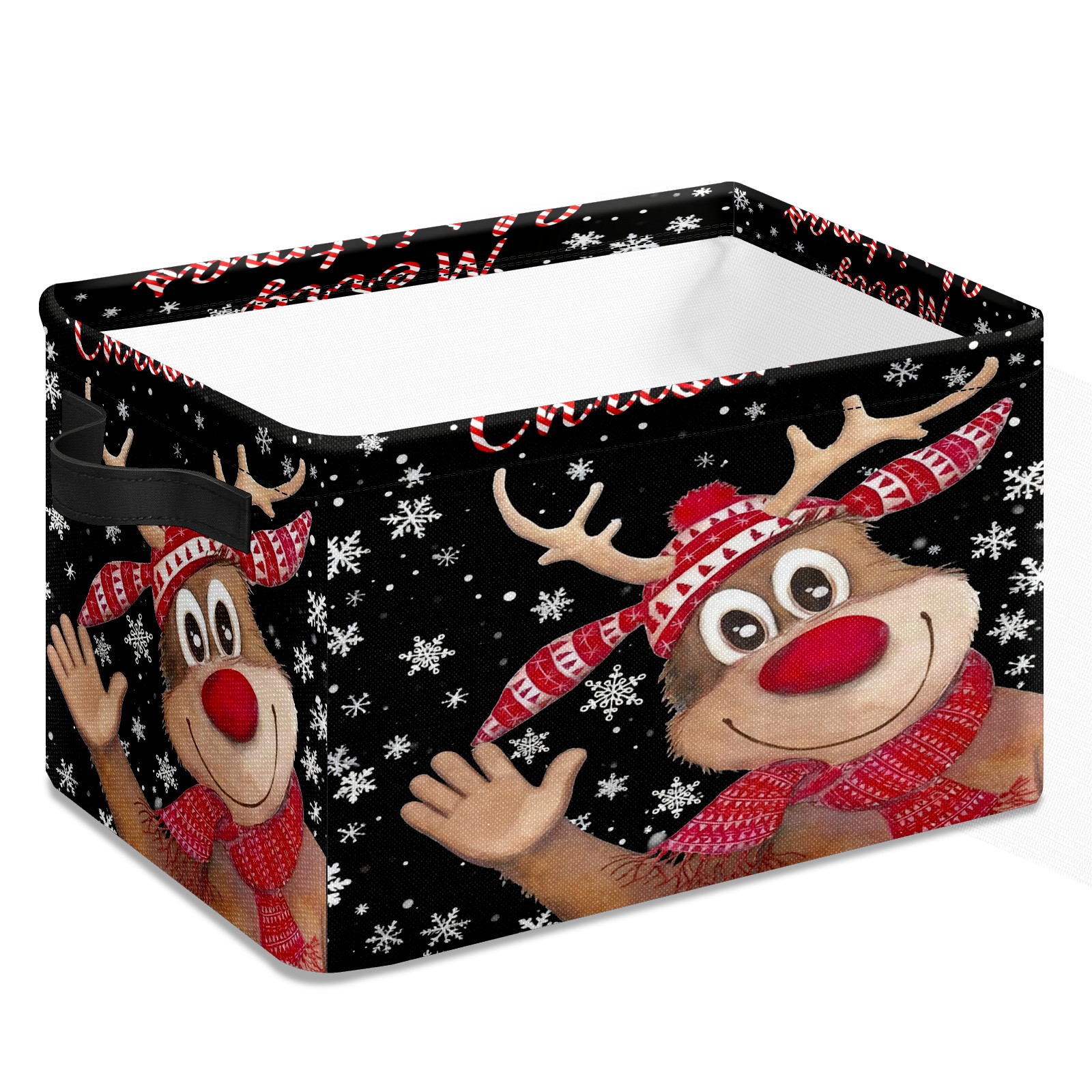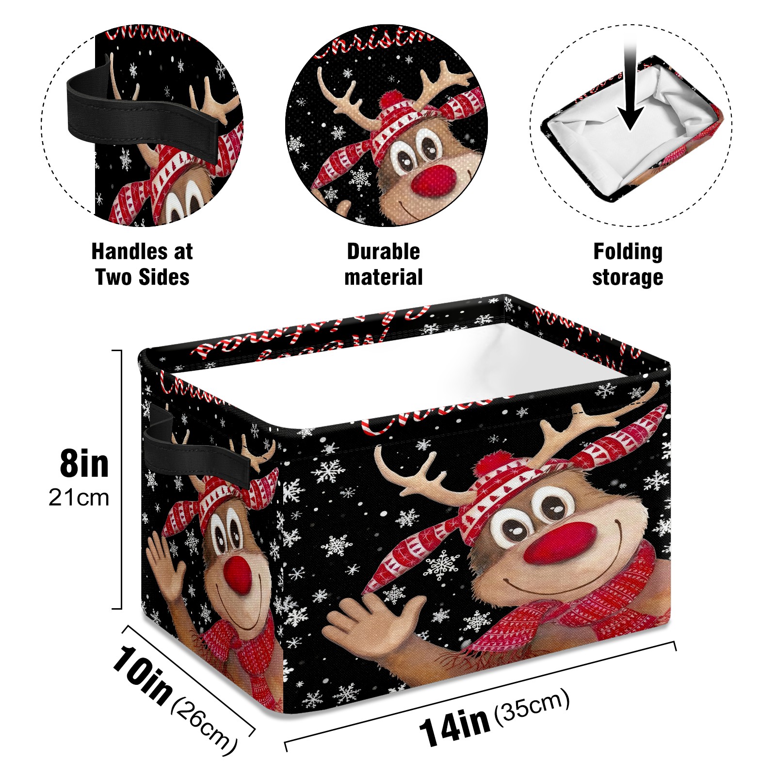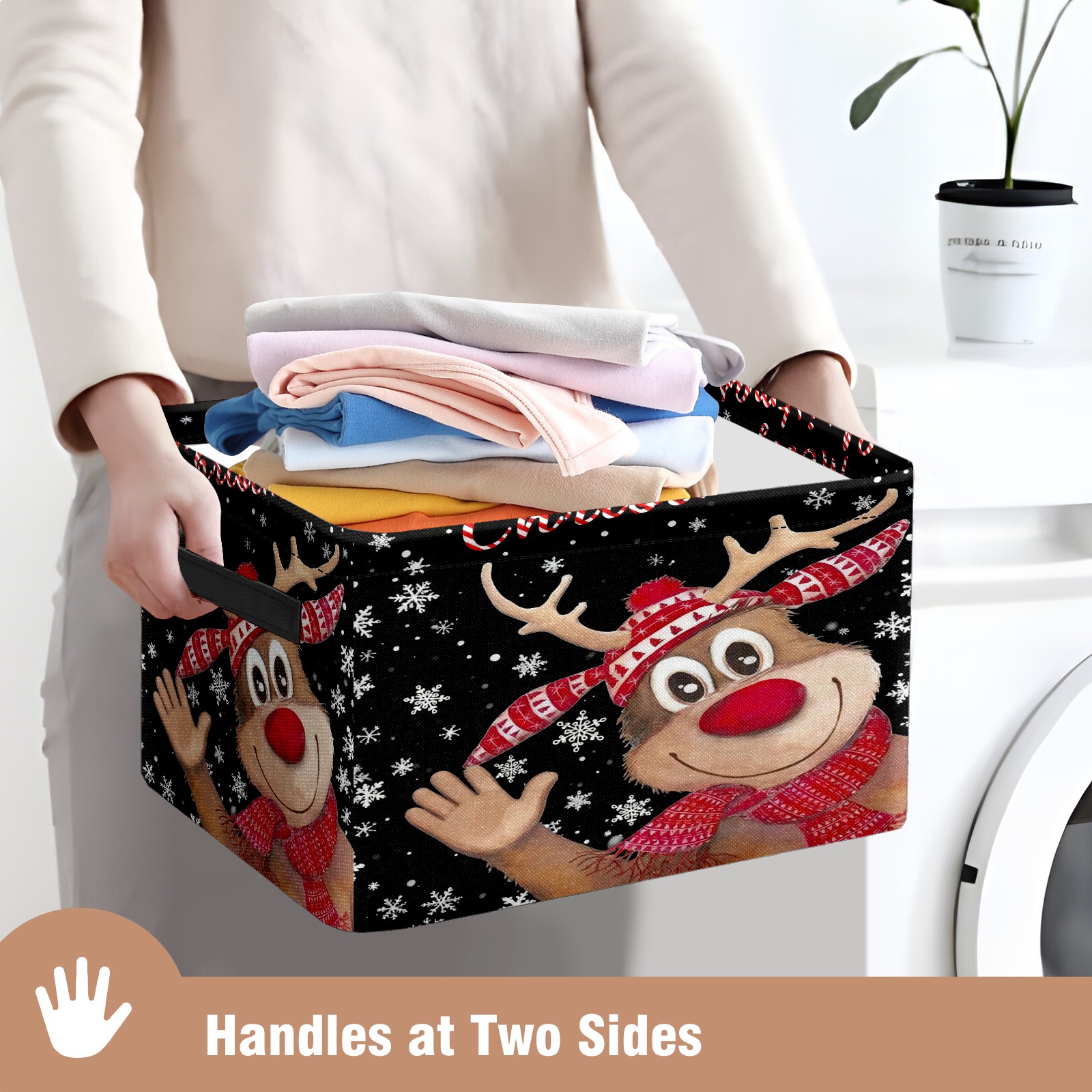 Large Storage Box,Christmas Reindeer Foldable Storage Baskets with Handles for Organizing Clothes, Gift Storage, Children's Toys