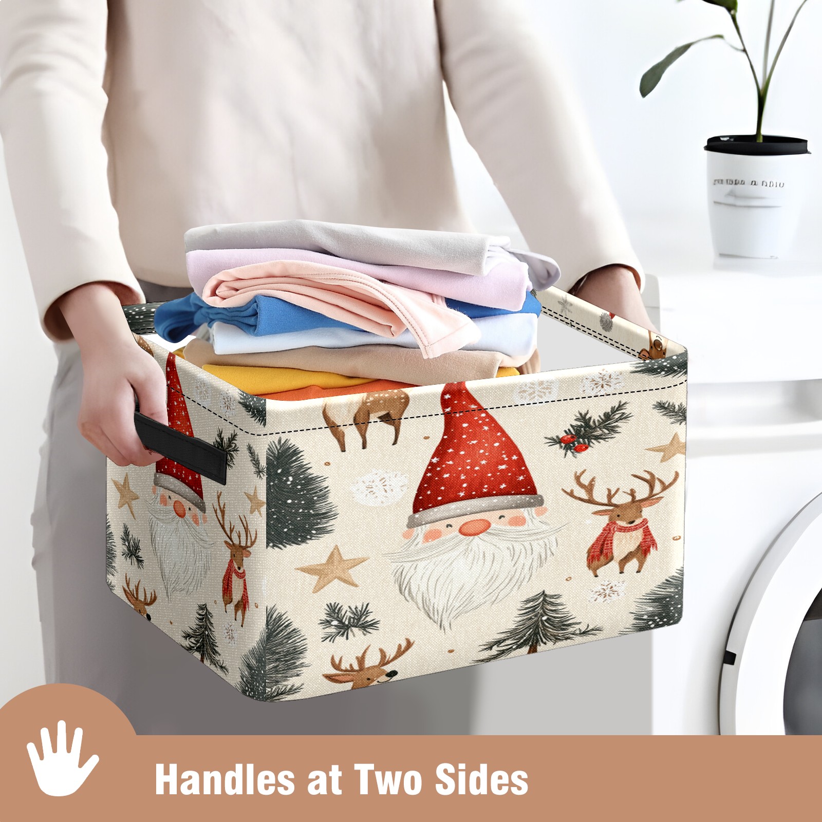 Large Storage Box,Christmas Red Gnome Foldable Storage Baskets with Handles for Organizing Clothes, Gift Storage, Children's Toys