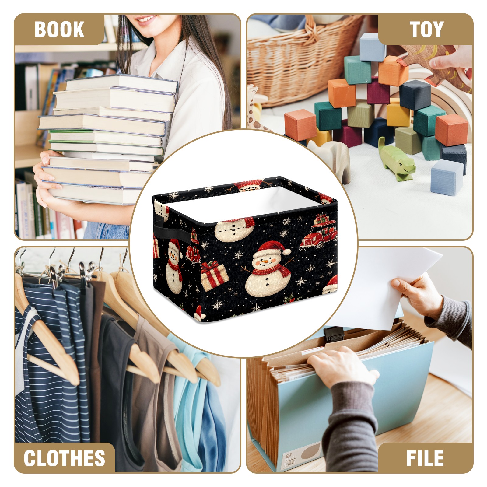 <p>This storage basket can be used for a variety of purposes, including bedroom organization baskets, laundry storage boxes, toy storage boxes, bathroom towel cube storage boxes, toilet storage containers, book and magazine storage boxes, holiday decoration storage cubes, living room storage, etc. The spacious size of 10×14×8 inches gives it ample storage capacity. This Christmas-themed storage basket is a great household item that combines practicality with a festive atmosphere! Made of easy-to-clean Oxford cloth, daily dirt can be cleaned by gently wiping with mild soapy water. With a sturdy metal frame and hard bottom support, it ensures a crisp shape when stored, but also needs to avoid machine washing to extend its service life. It is lightweight and flat after folding, taking up no space</p>