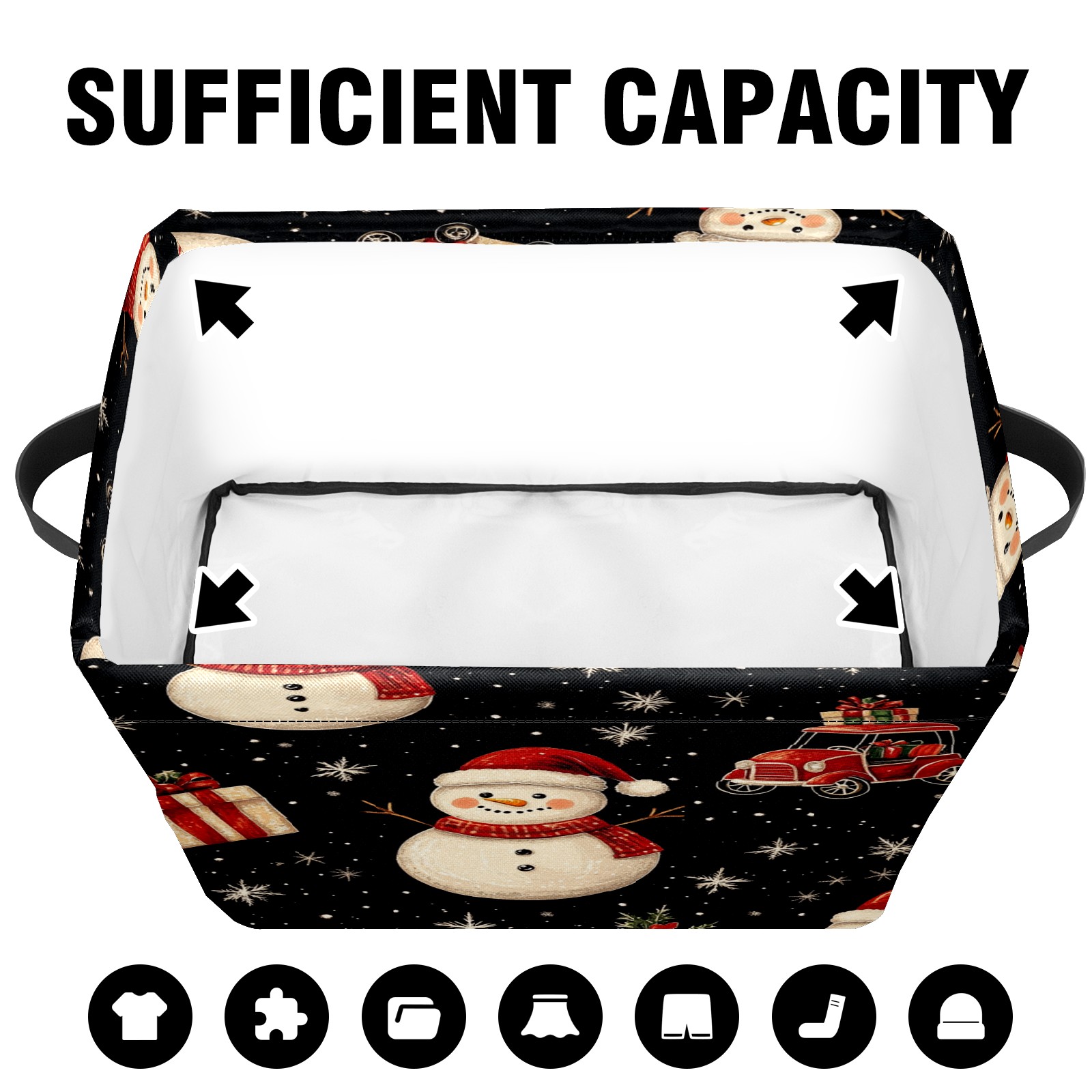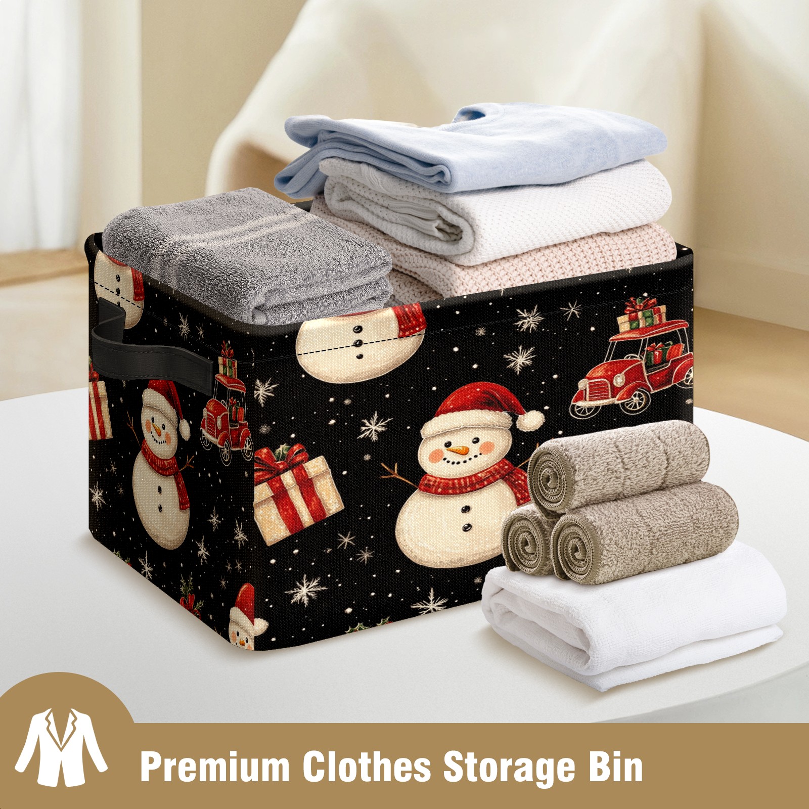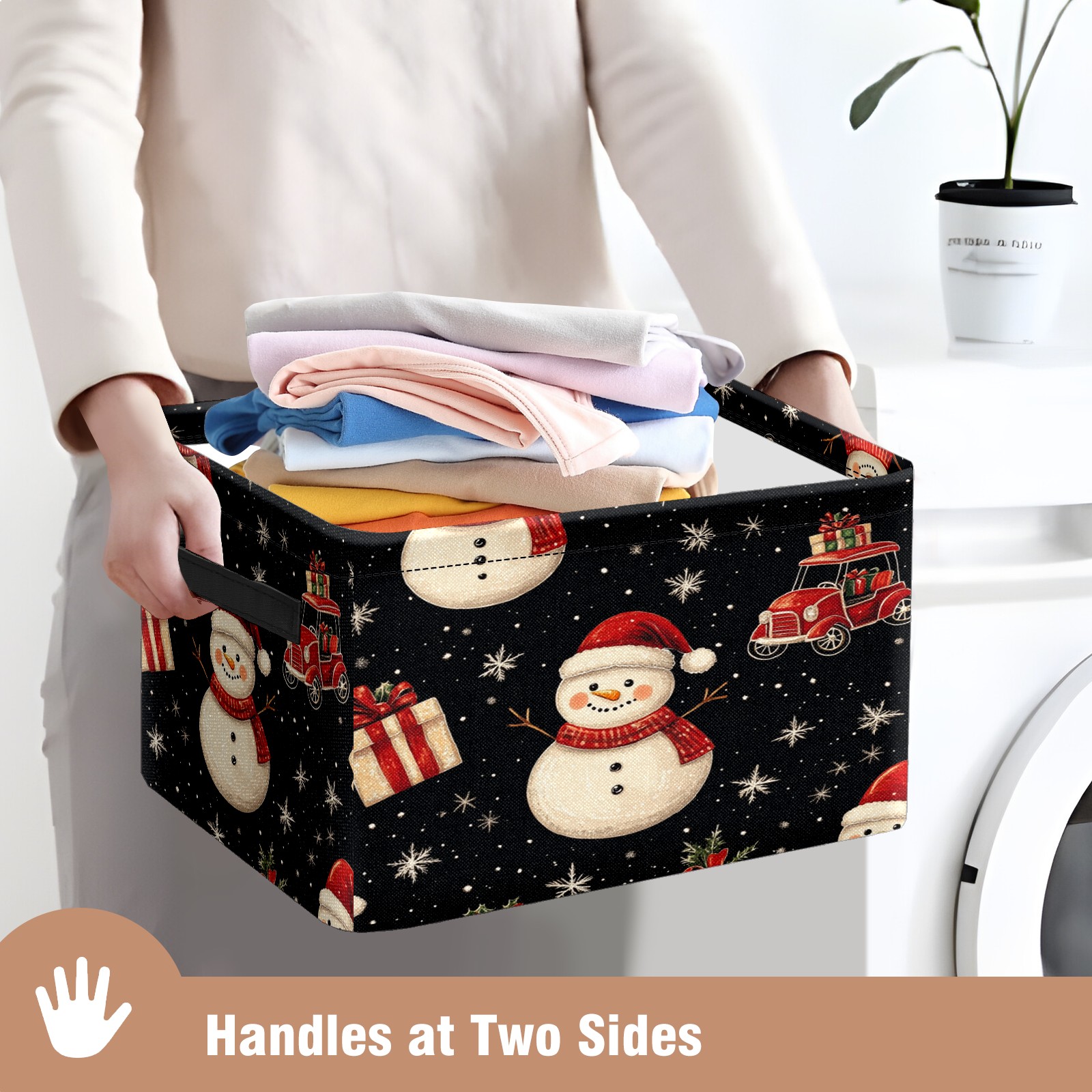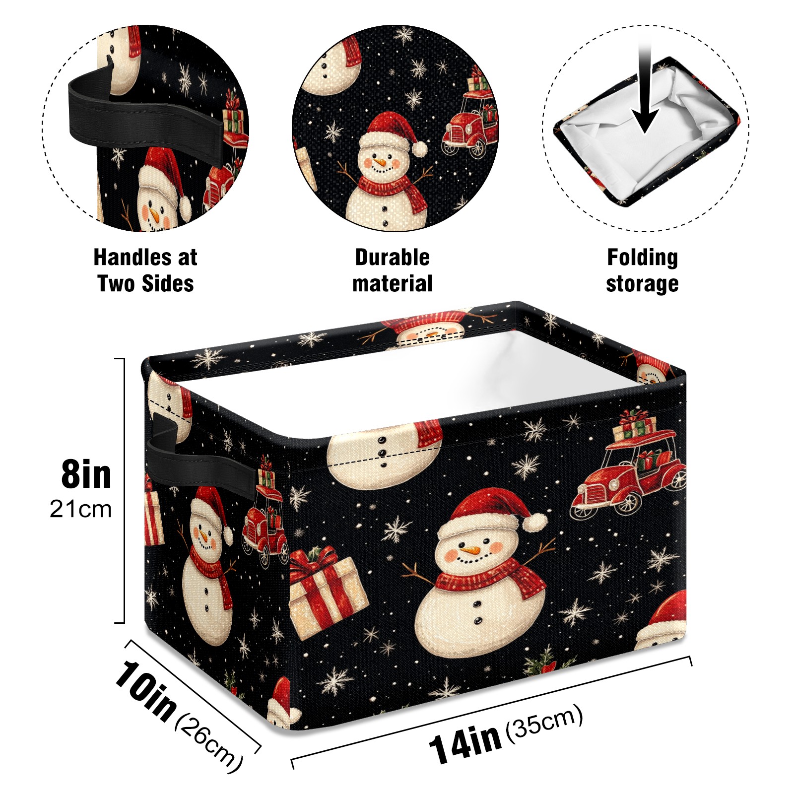 Large Storage Box,Christmas Snowman Car Foldable Storage Baskets with Handles for Organizing Clothes, Gift Storage, Children's Toys