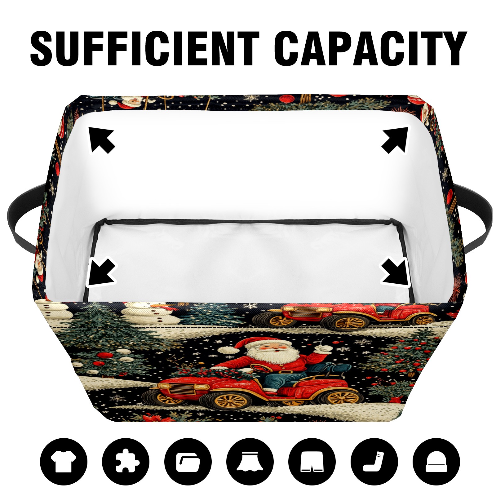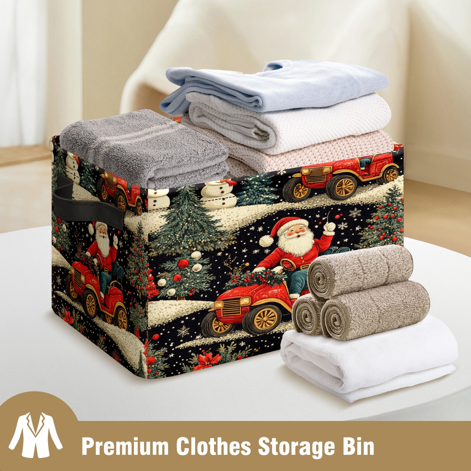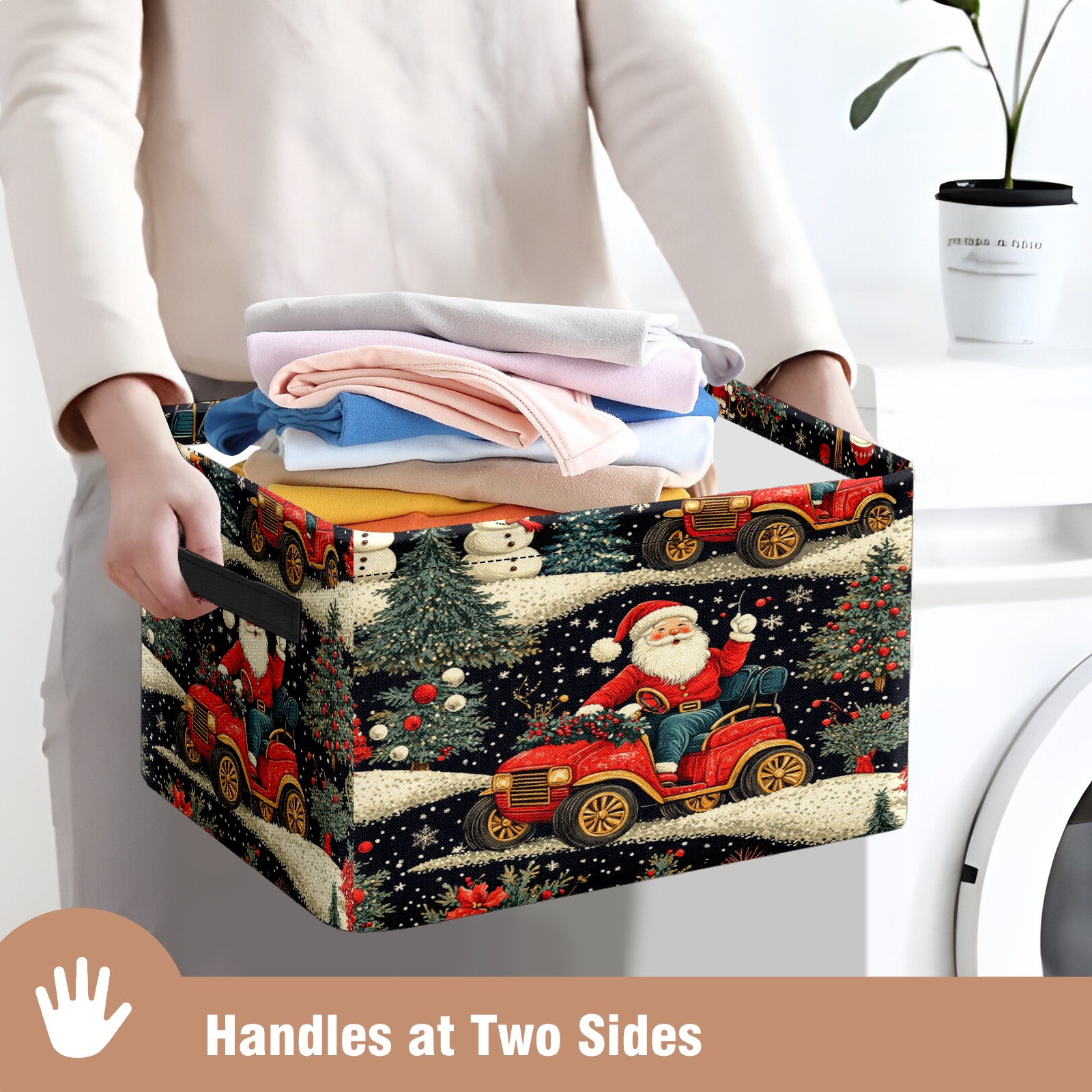 Large Storage Box,Santa Claus Car Foldable Storage Baskets with Handles for Organizing Clothes, Gift Storage, Children's Toys