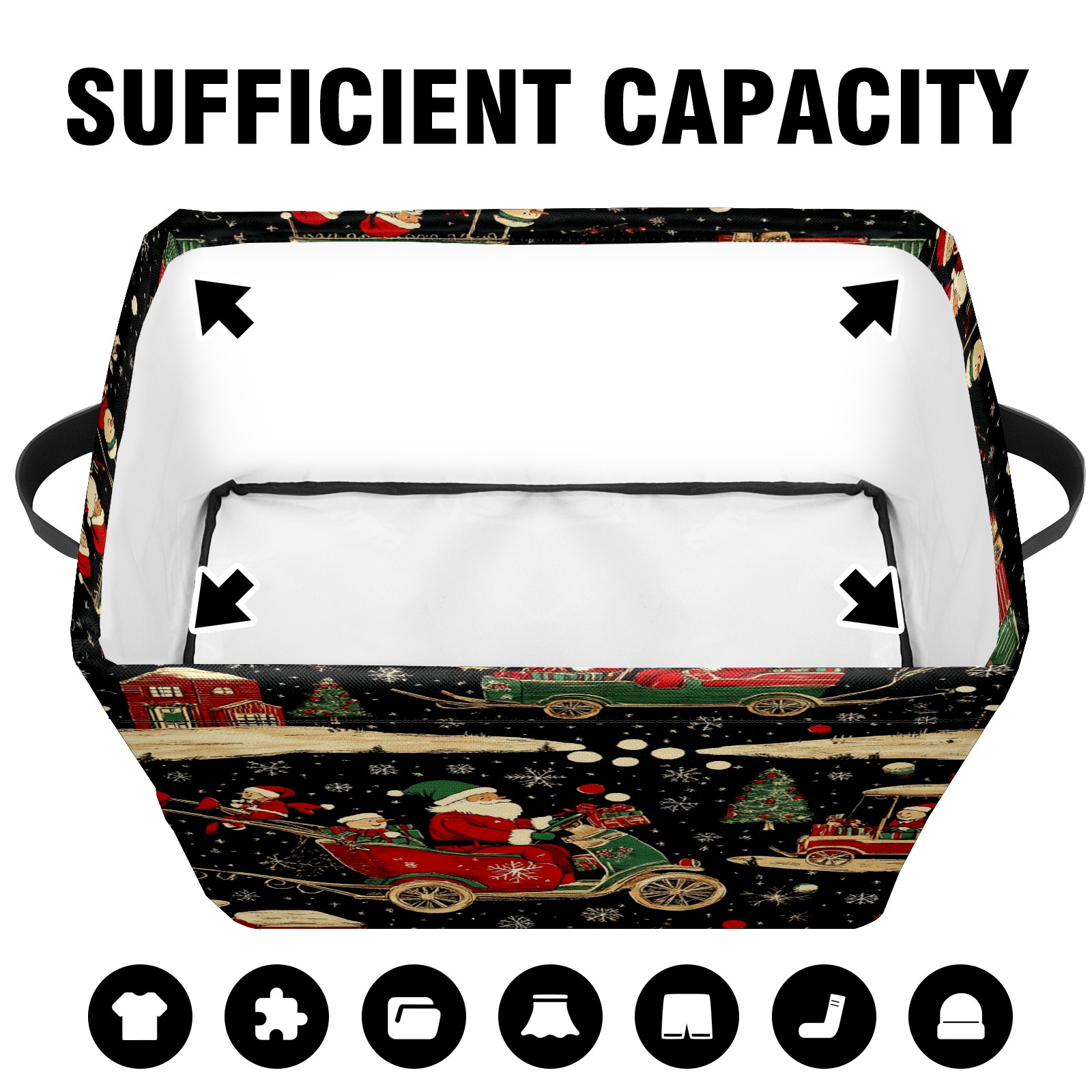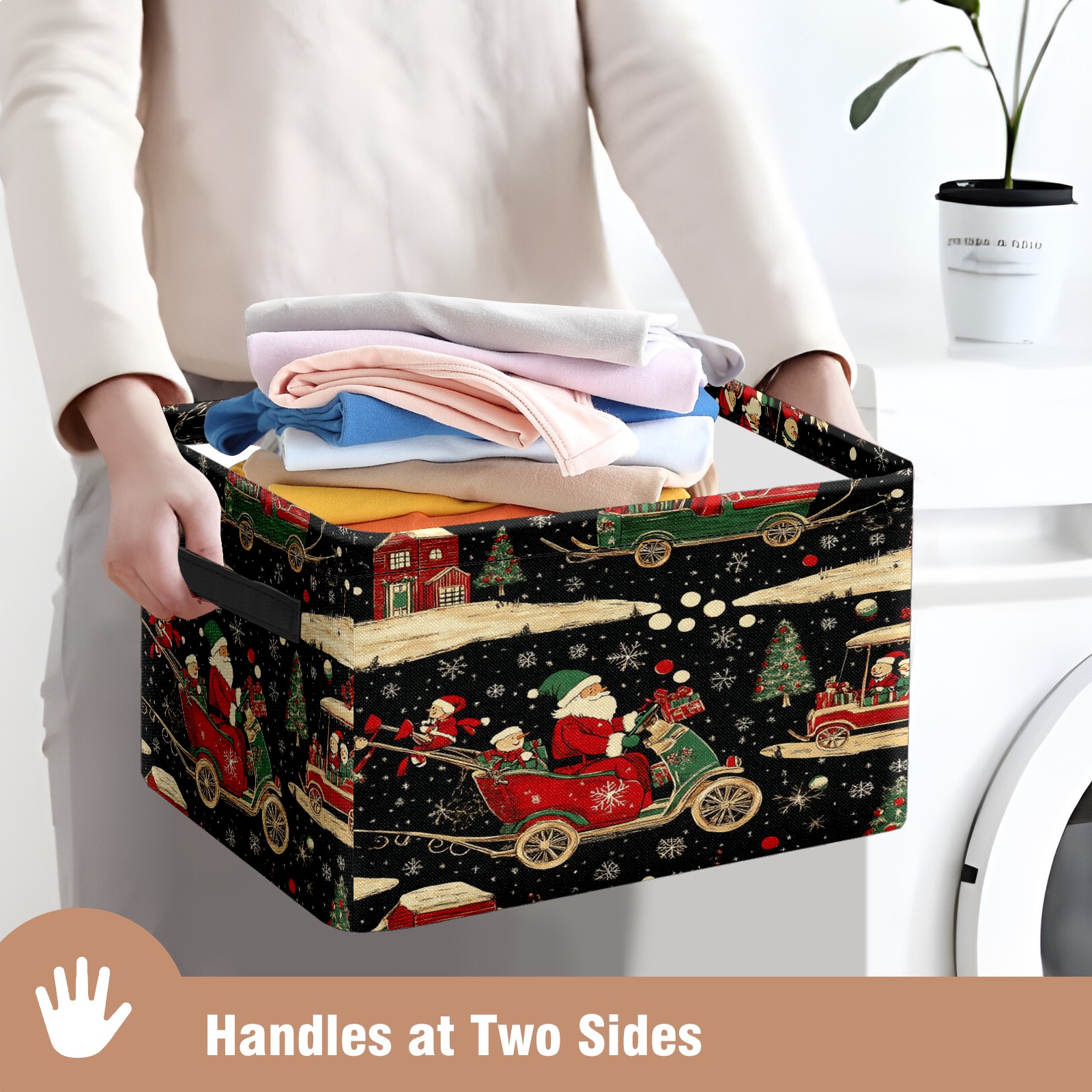 Large Storage Box,Santa Claus Sleigh Foldable Storage Baskets with Handles for Organizing Clothes, Gift Storage, Children's Toys