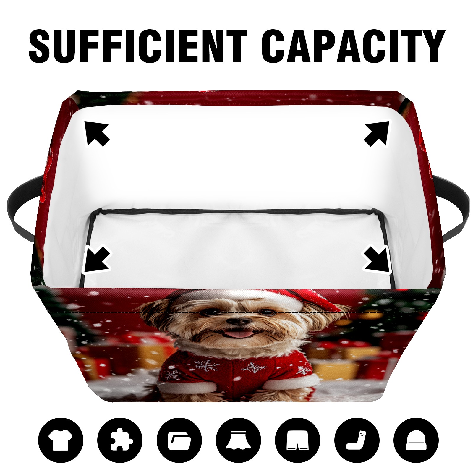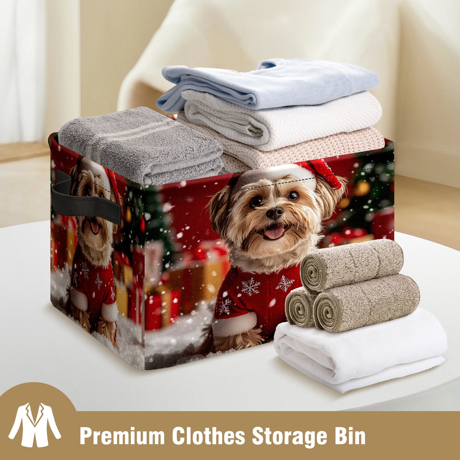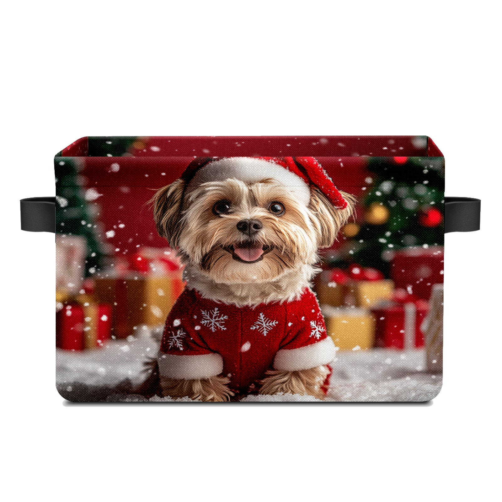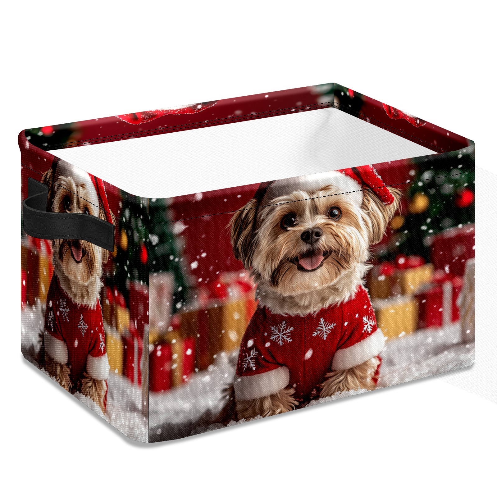 Large Storage Box,Cute Dog Christmas Santa Hat Foldable Storage Baskets with Handles for Organizing Clothes, Gift Storage, Children's Toys