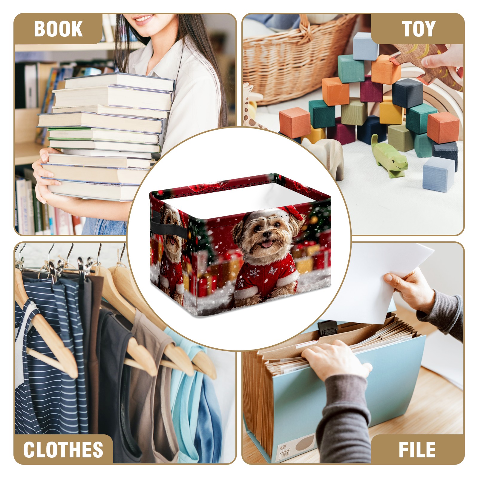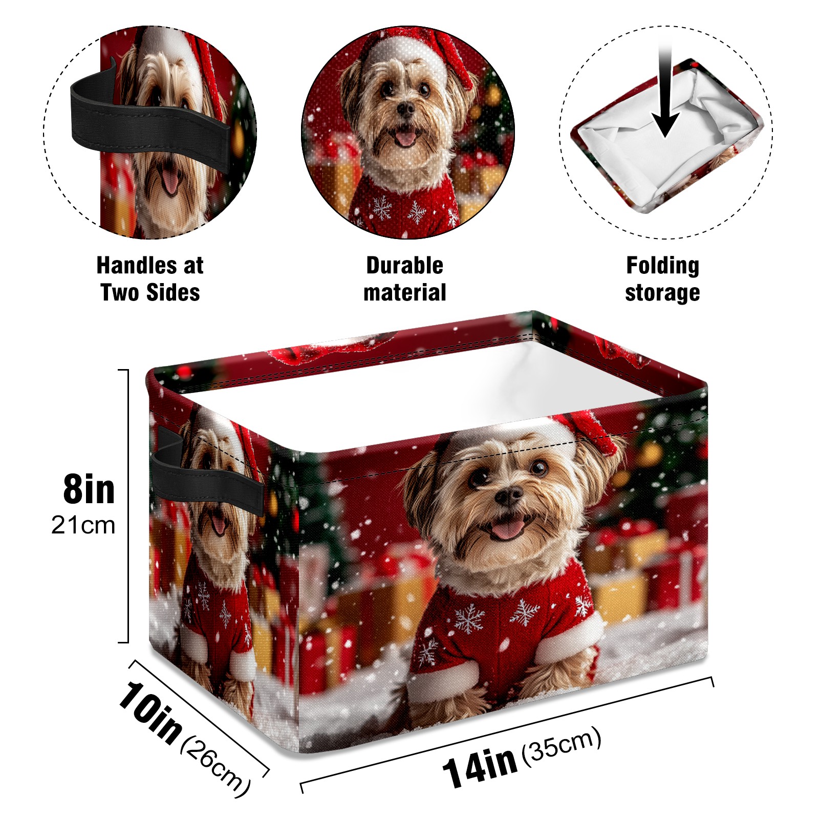 <p>This storage basket can be used for a variety of purposes, including bedroom organization baskets, laundry storage boxes, toy storage boxes, bathroom towel cube storage boxes, toilet storage containers, book and magazine storage boxes, holiday decoration storage cubes, living room storage, etc. The spacious size of 10×14×8 inches gives it ample storage capacity. This Christmas-themed storage basket is a great household item that combines practicality with a festive atmosphere! Made of easy-to-clean Oxford cloth, daily dirt can be cleaned by gently wiping with mild soapy water. With a sturdy metal frame and hard bottom support, it ensures a crisp shape when stored, but also needs to avoid machine washing to extend its service life. It is lightweight and flat after folding, taking up no space</p>