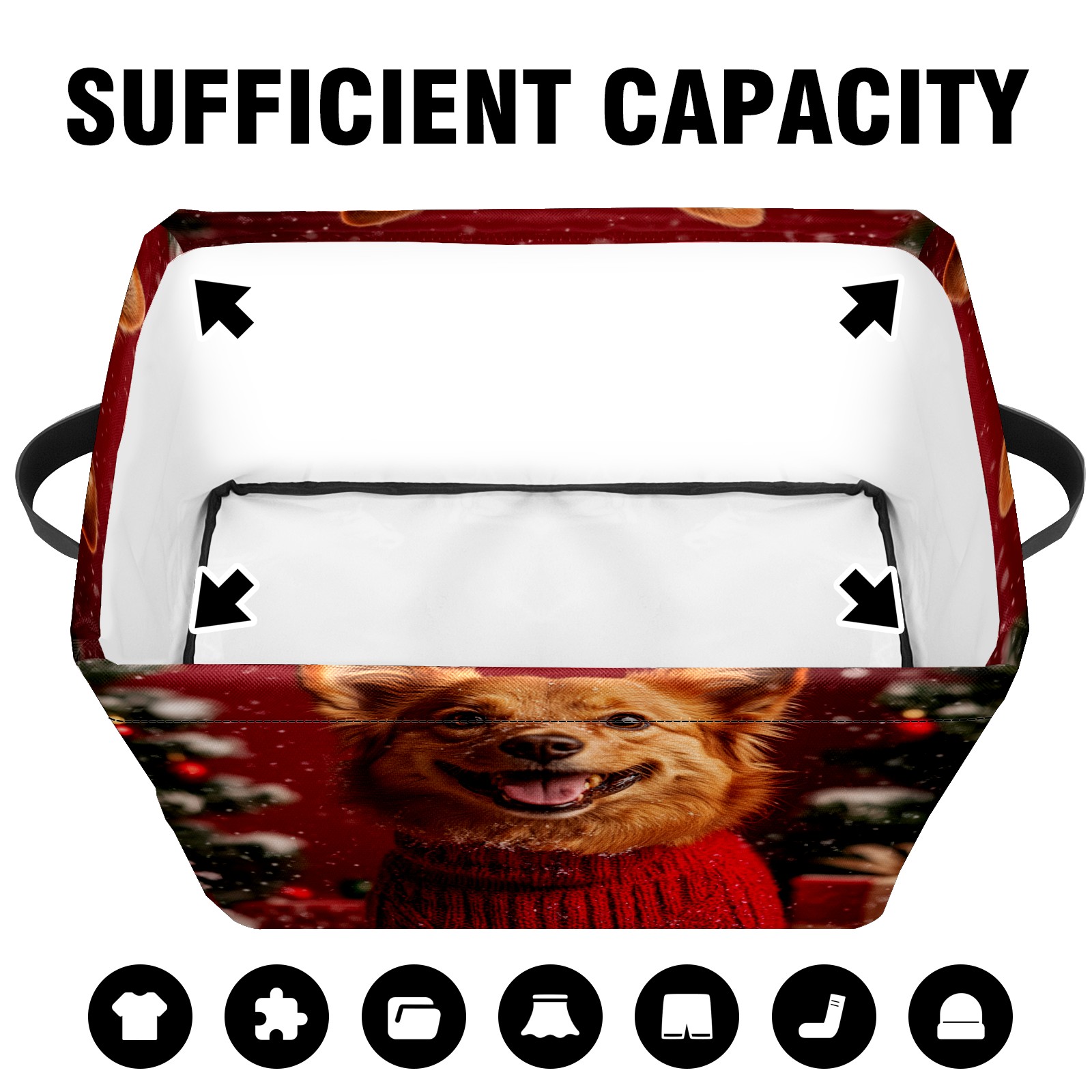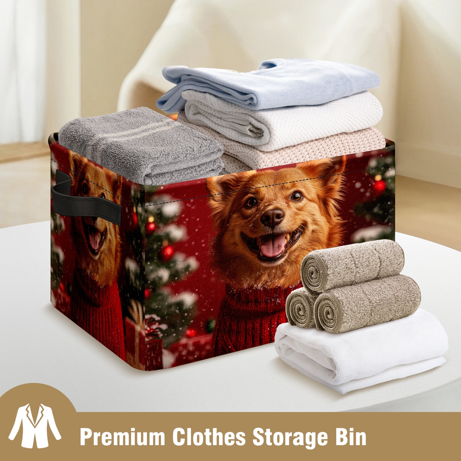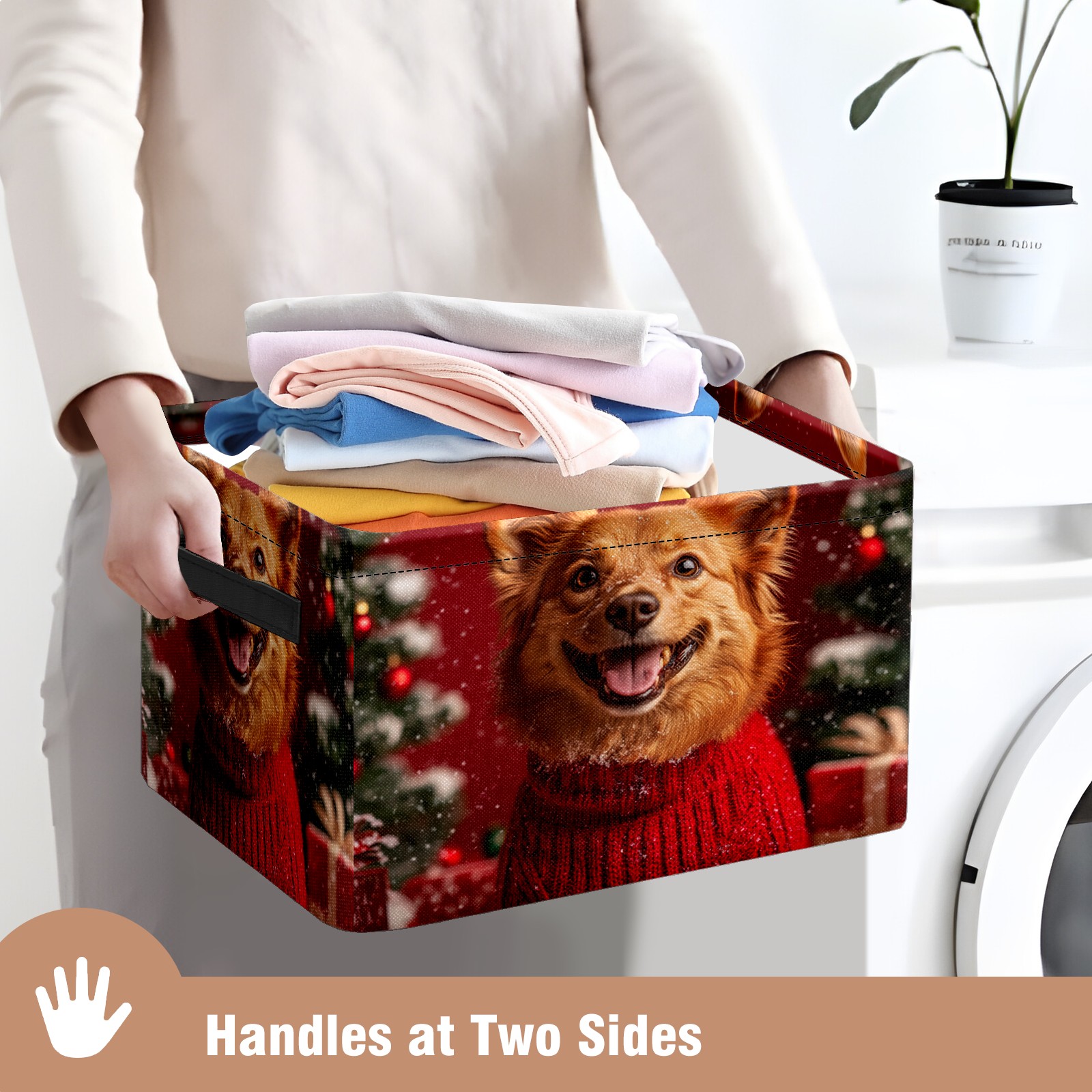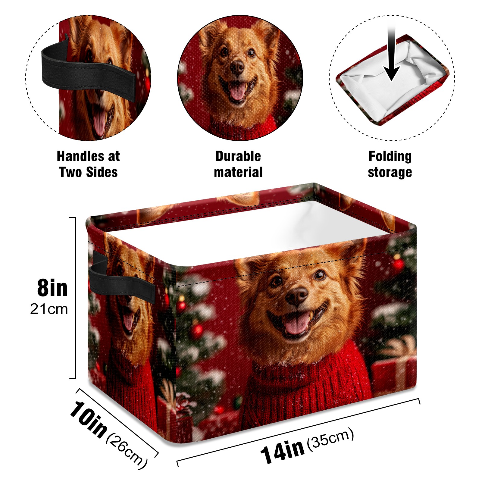 Large Storage Box,Cute Christmas Dog Foldable Storage Baskets with Handles for Organizing Clothes, Gift Storage, Children's Toys