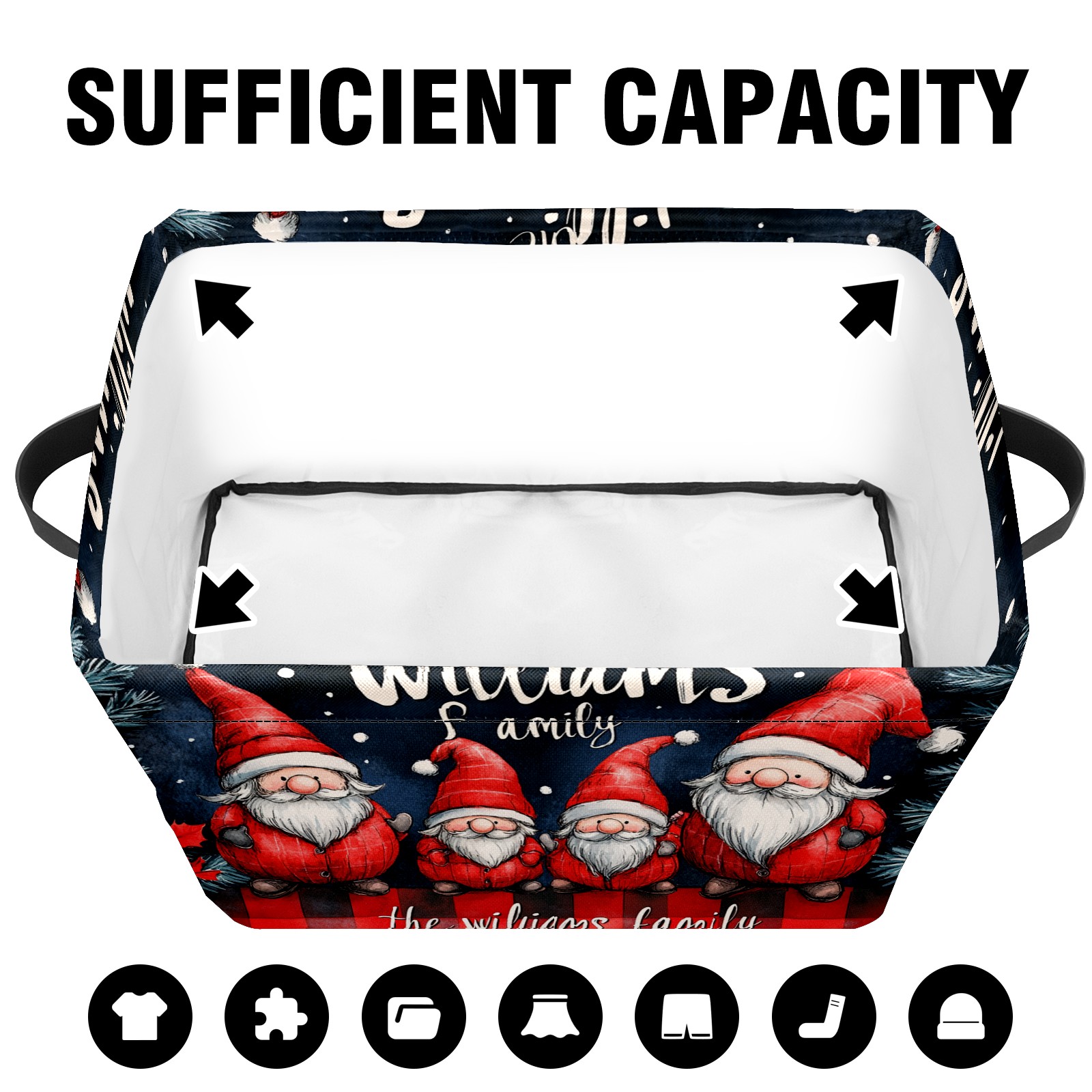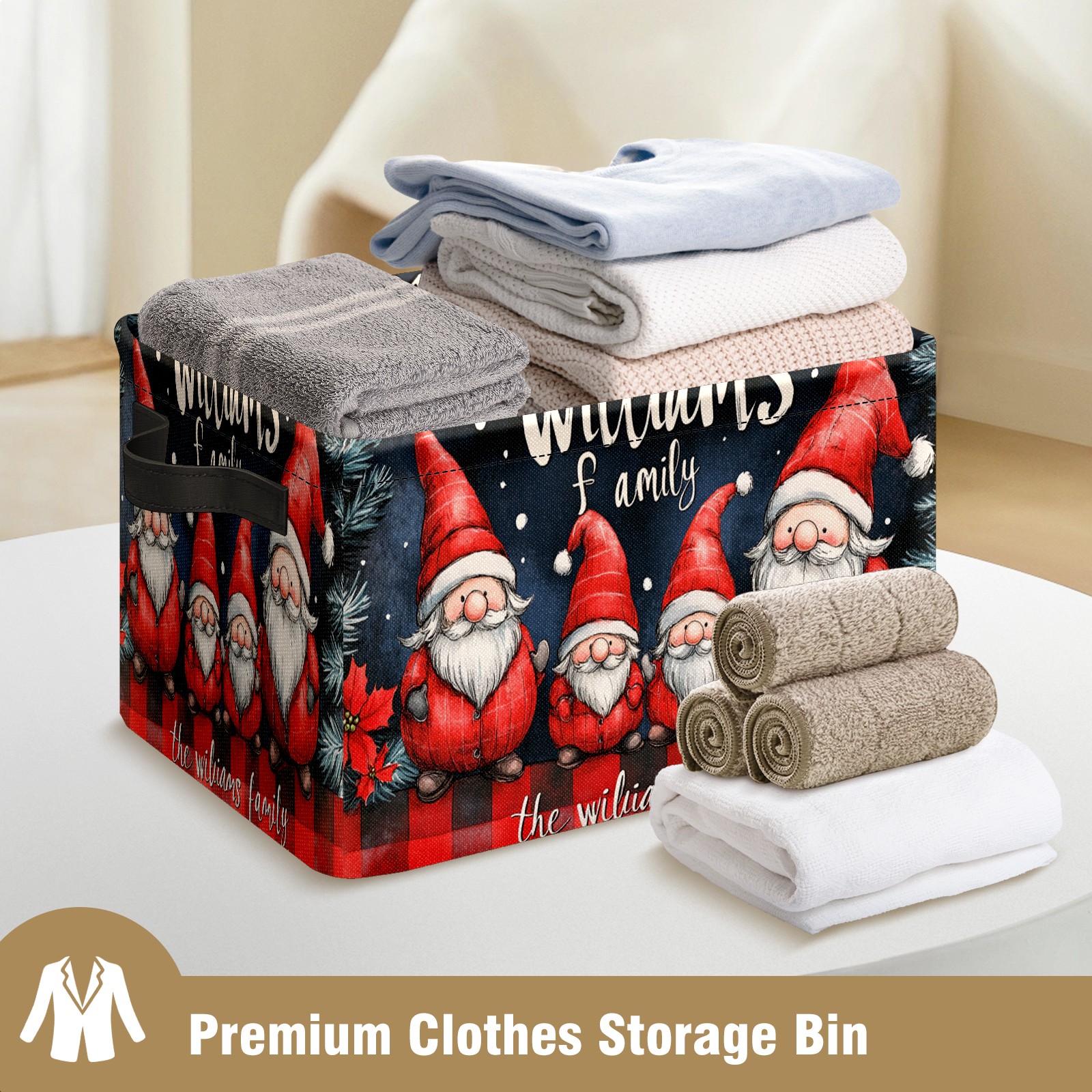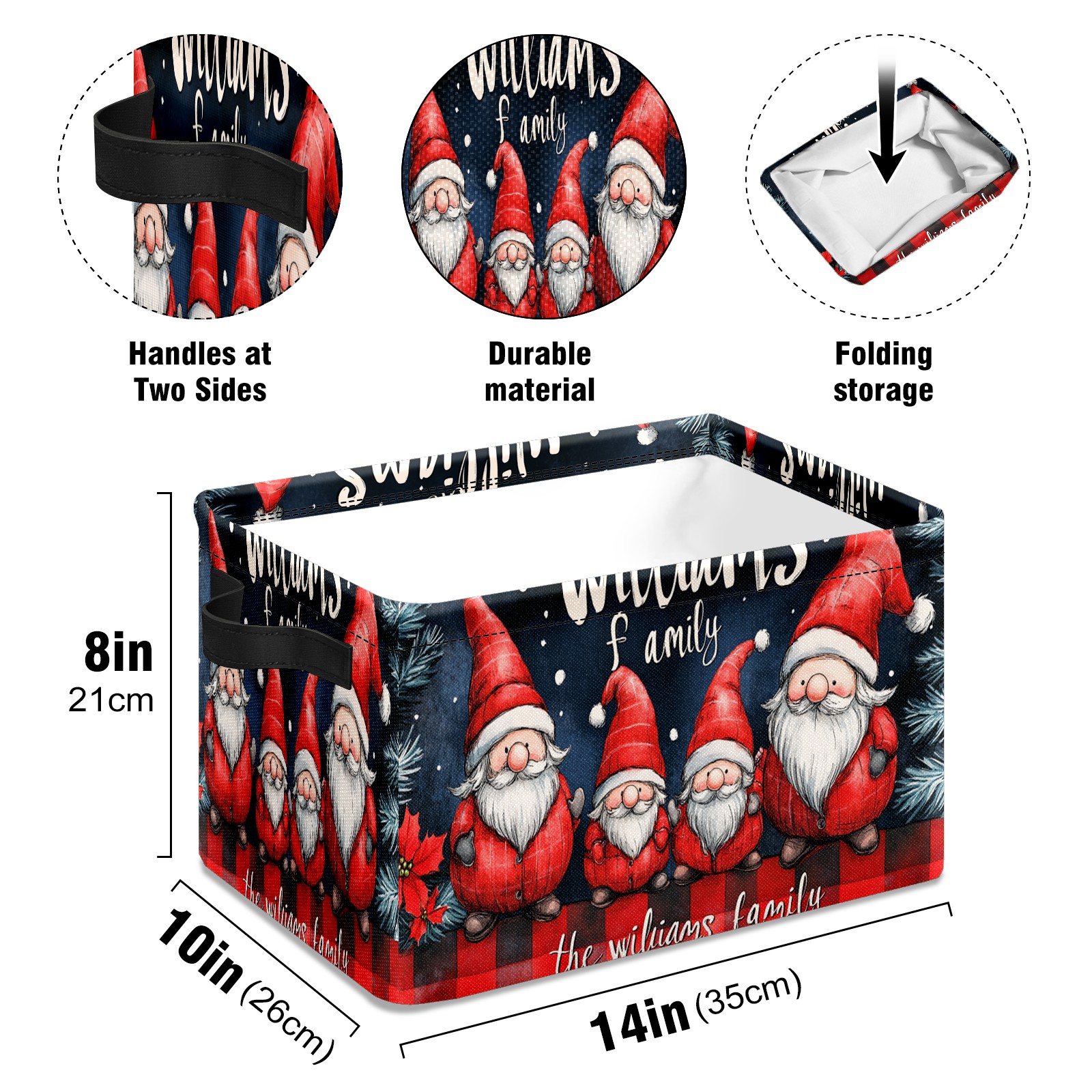 <p>This storage basket can be used for a variety of purposes, including bedroom organization baskets, laundry storage boxes, toy storage boxes, bathroom towel cube storage boxes, toilet storage containers, book and magazine storage boxes, holiday decoration storage cubes, living room storage, etc. The spacious size of 10×14×8 inches gives it ample storage capacity. This Christmas-themed storage basket is a great household item that combines practicality with a festive atmosphere! Made of easy-to-clean Oxford cloth, daily dirt can be cleaned by gently wiping with mild soapy water. With a sturdy metal frame and hard bottom support, it ensures a crisp shape when stored, but also needs to avoid machine washing to extend its service life. It is lightweight and flat after folding, taking up no space</p>