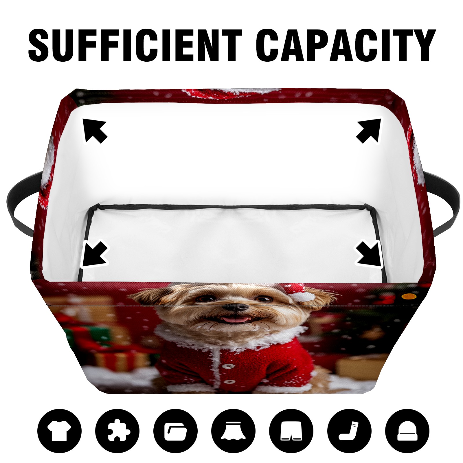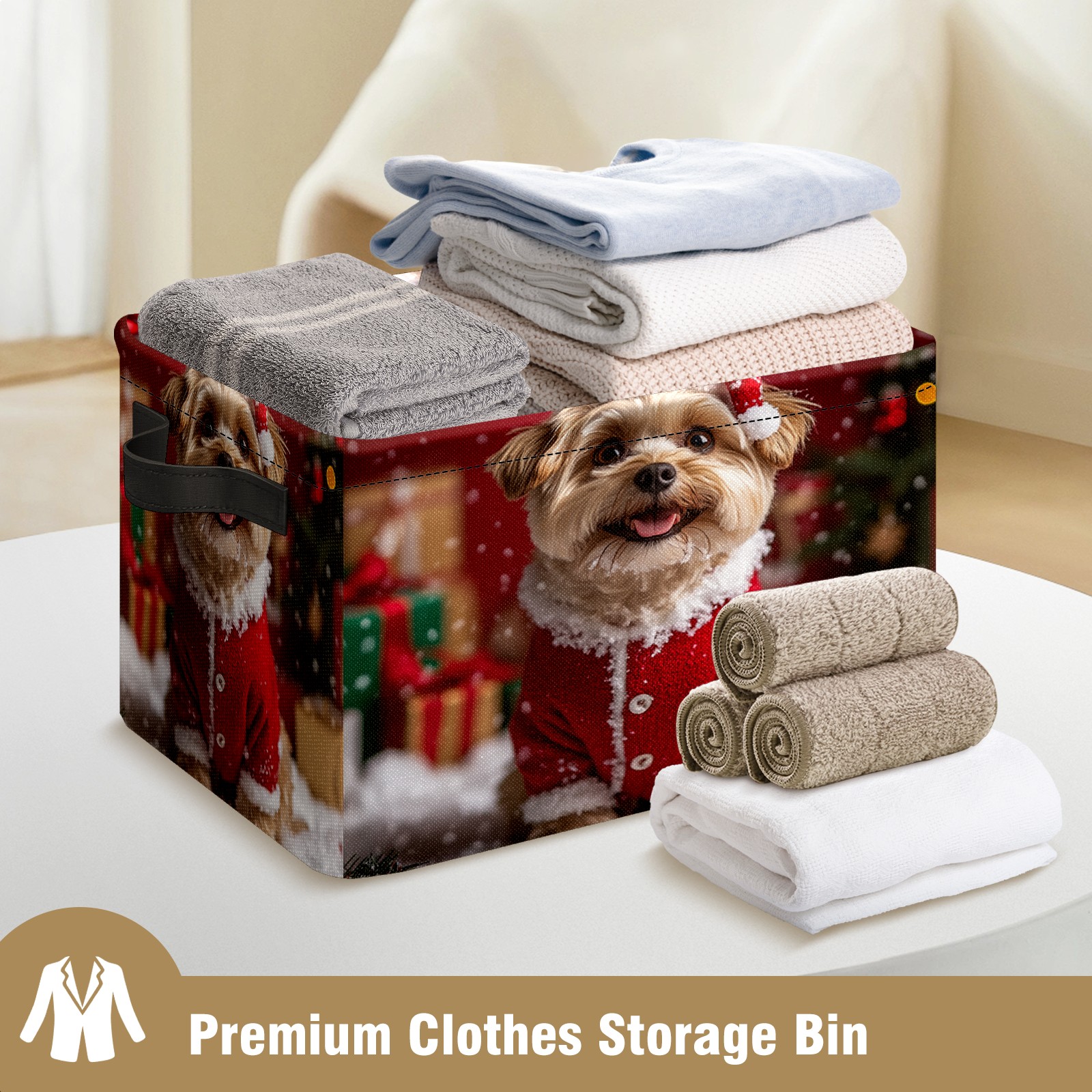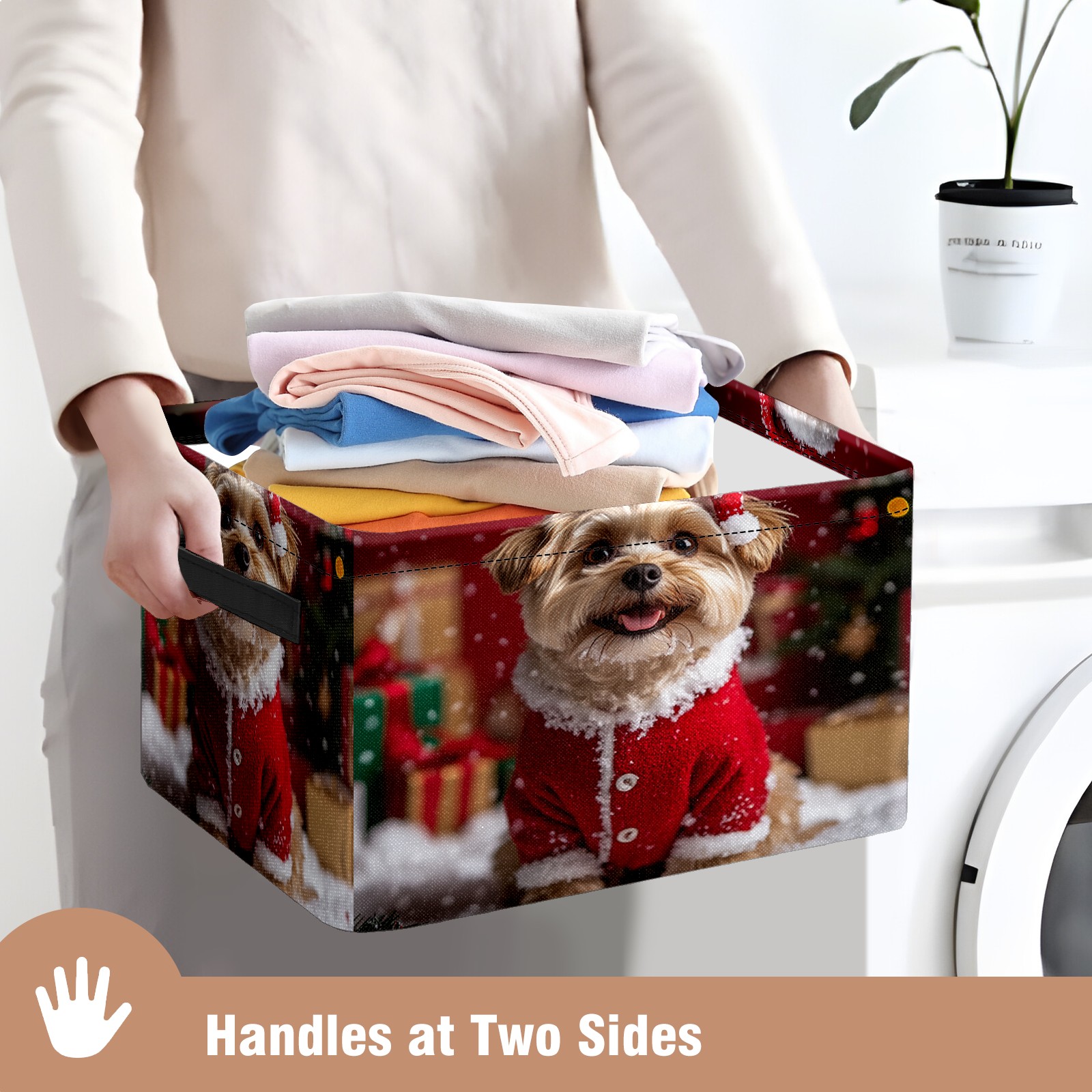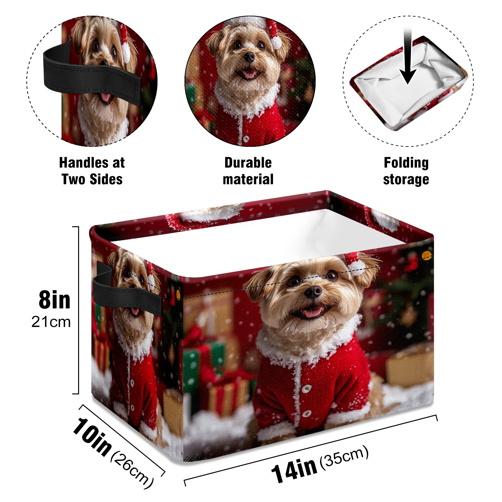 Large Storage Box,Christmas Dog Foldable Storage Baskets with Handles for Organizing Clothes, Gift Storage, Children's Toys