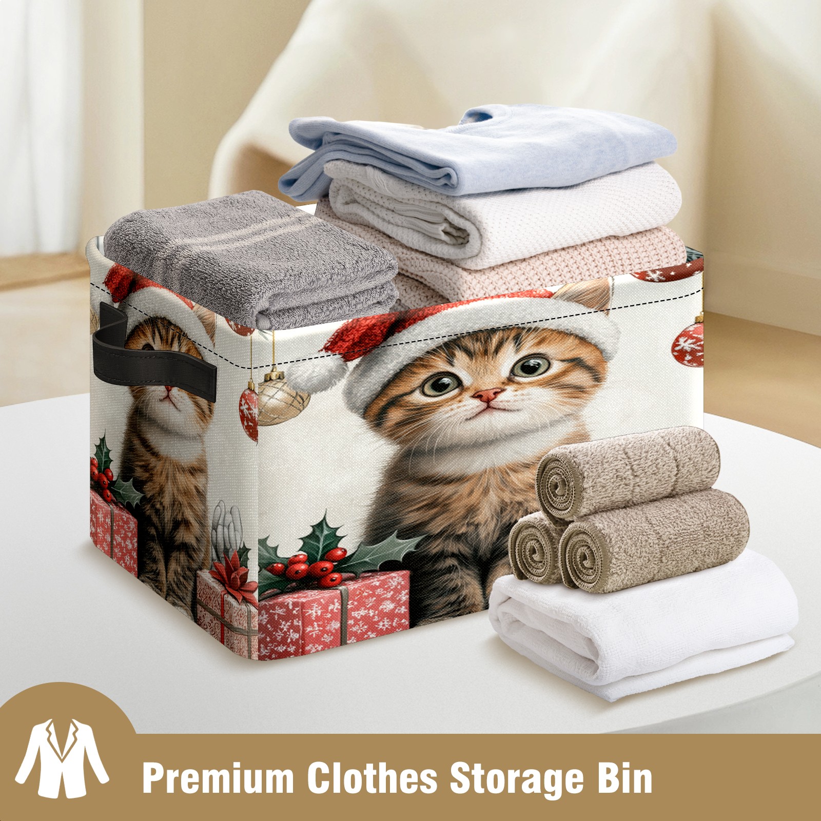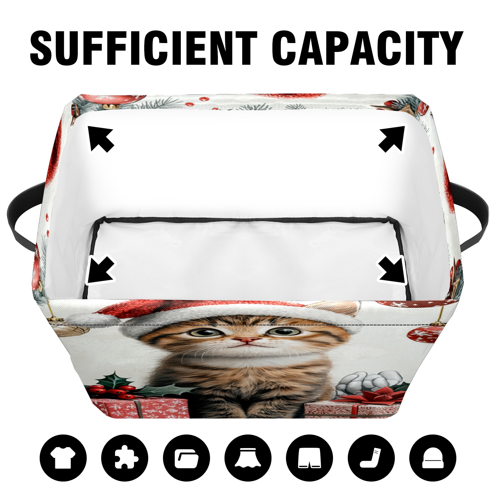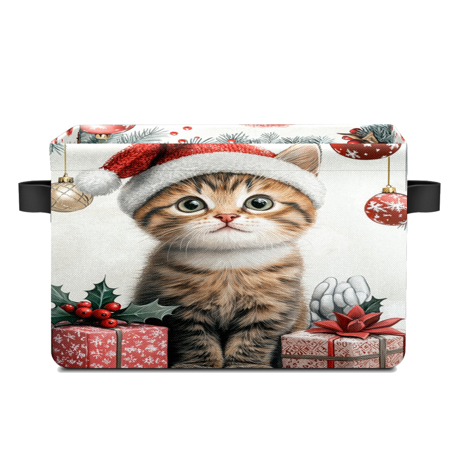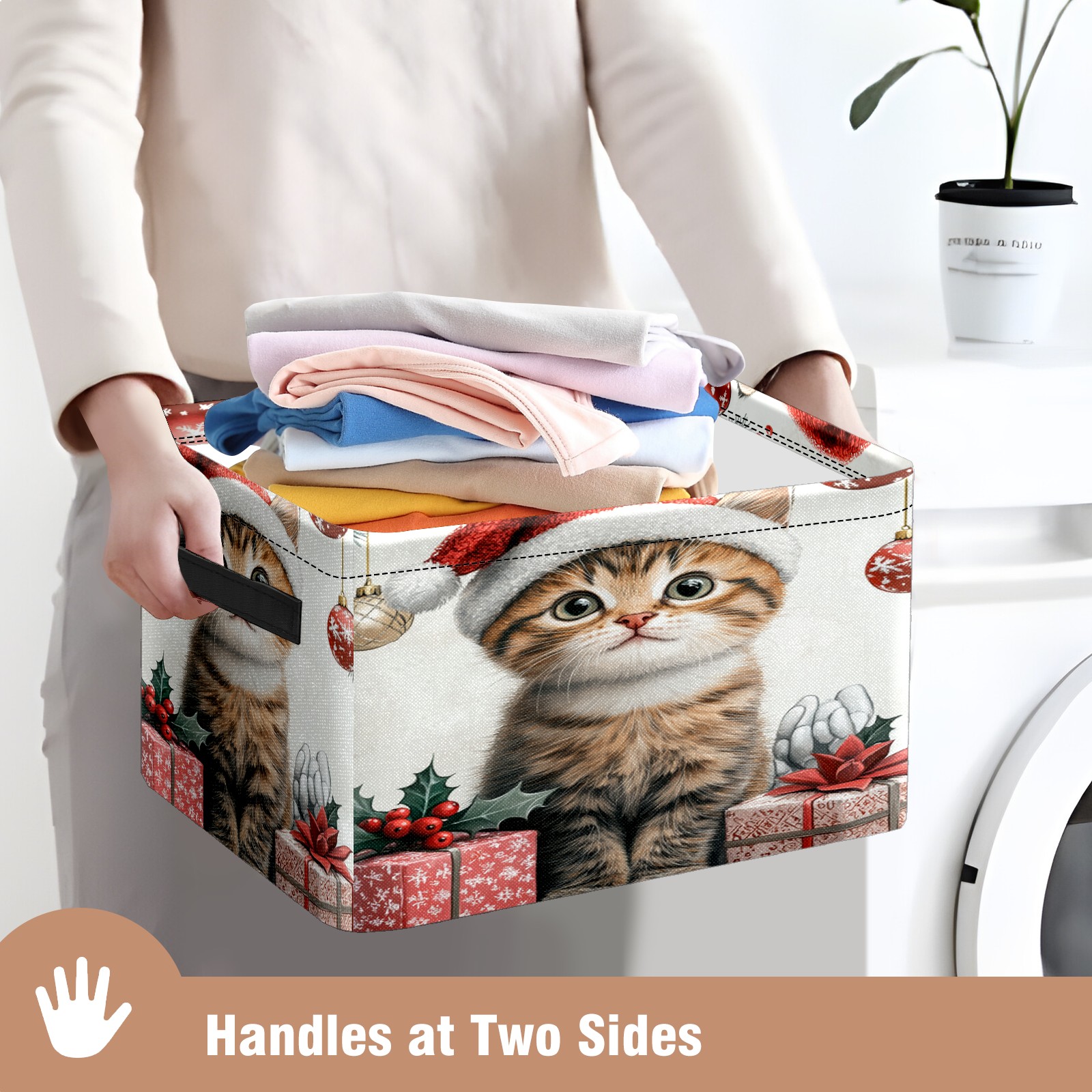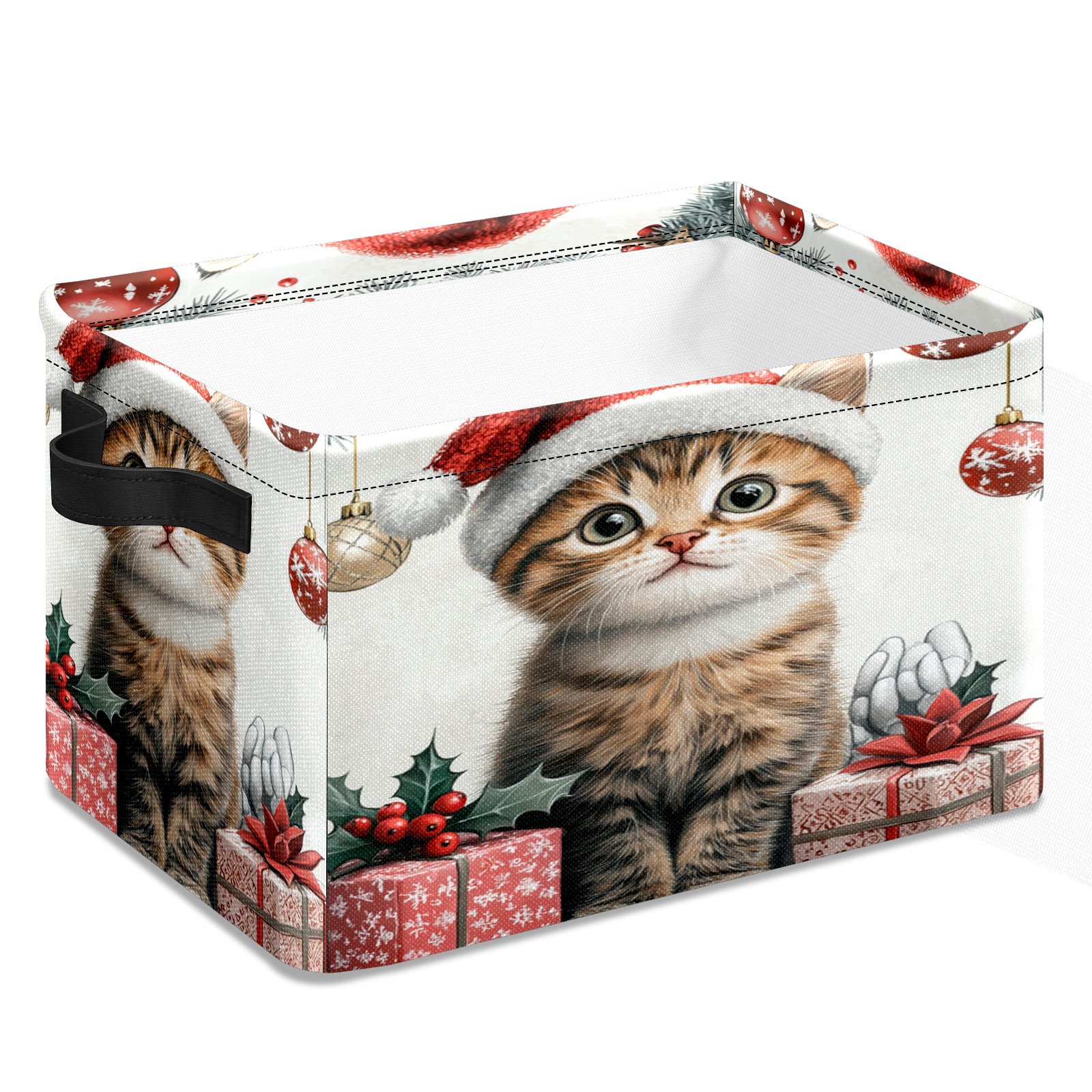 Large Storage Box,Cute Cat Christmas Santa Hat Foldable Storage Baskets with Handles for Organizing Clothes, Gift Storage, Children's Toys