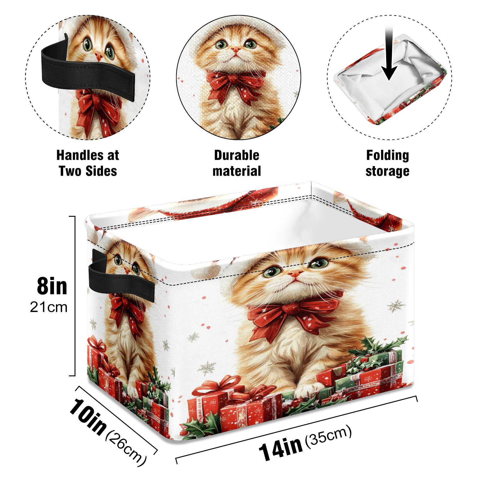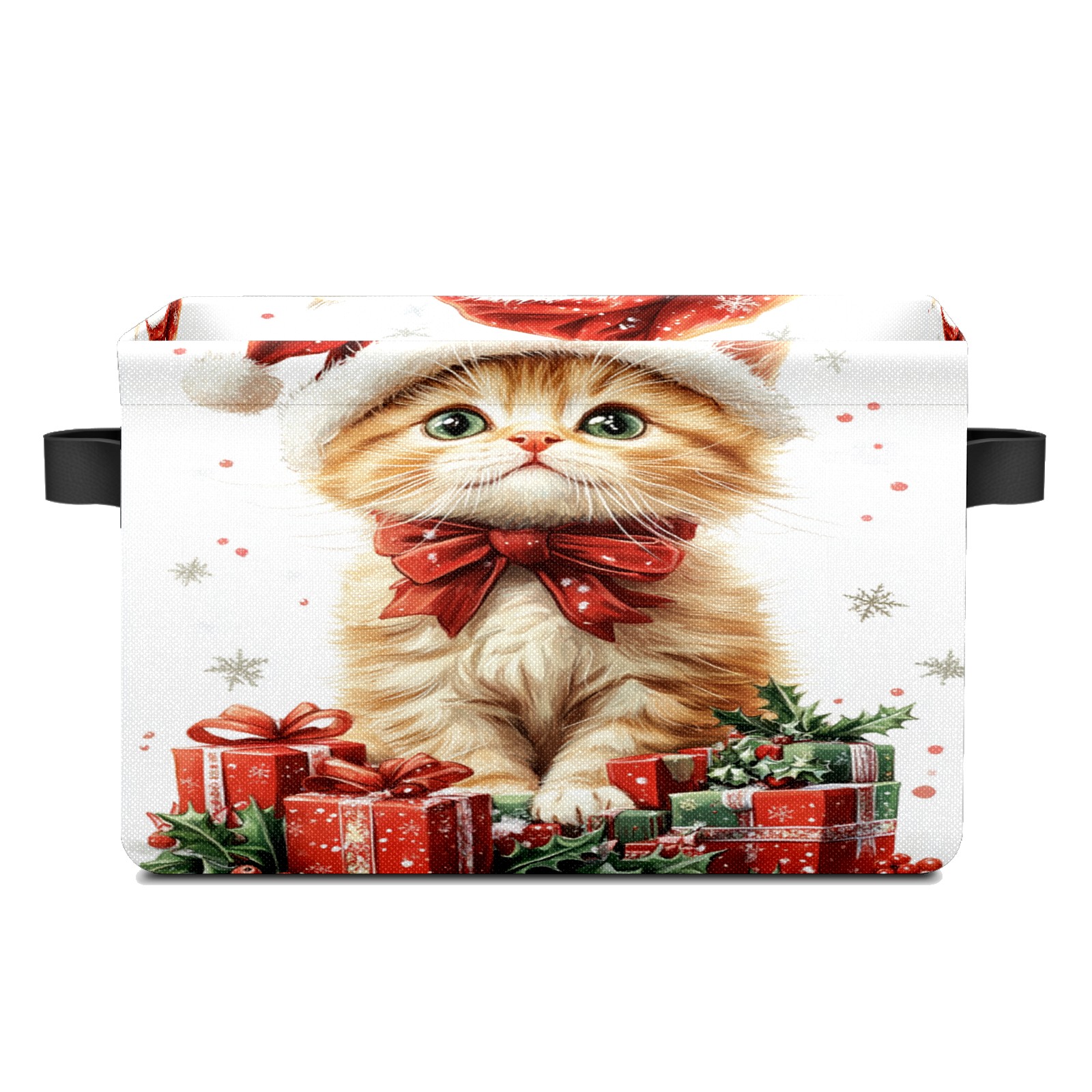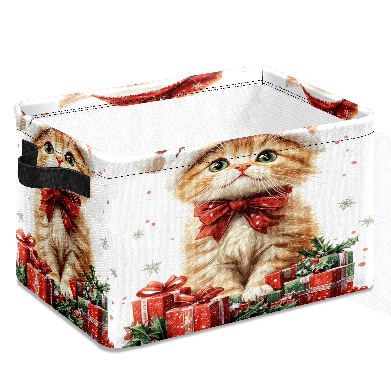 Large Storage Box,Christmas Cat Foldable Storage Baskets with Handles for Organizing Clothes, Gift Storage, Children's Toys