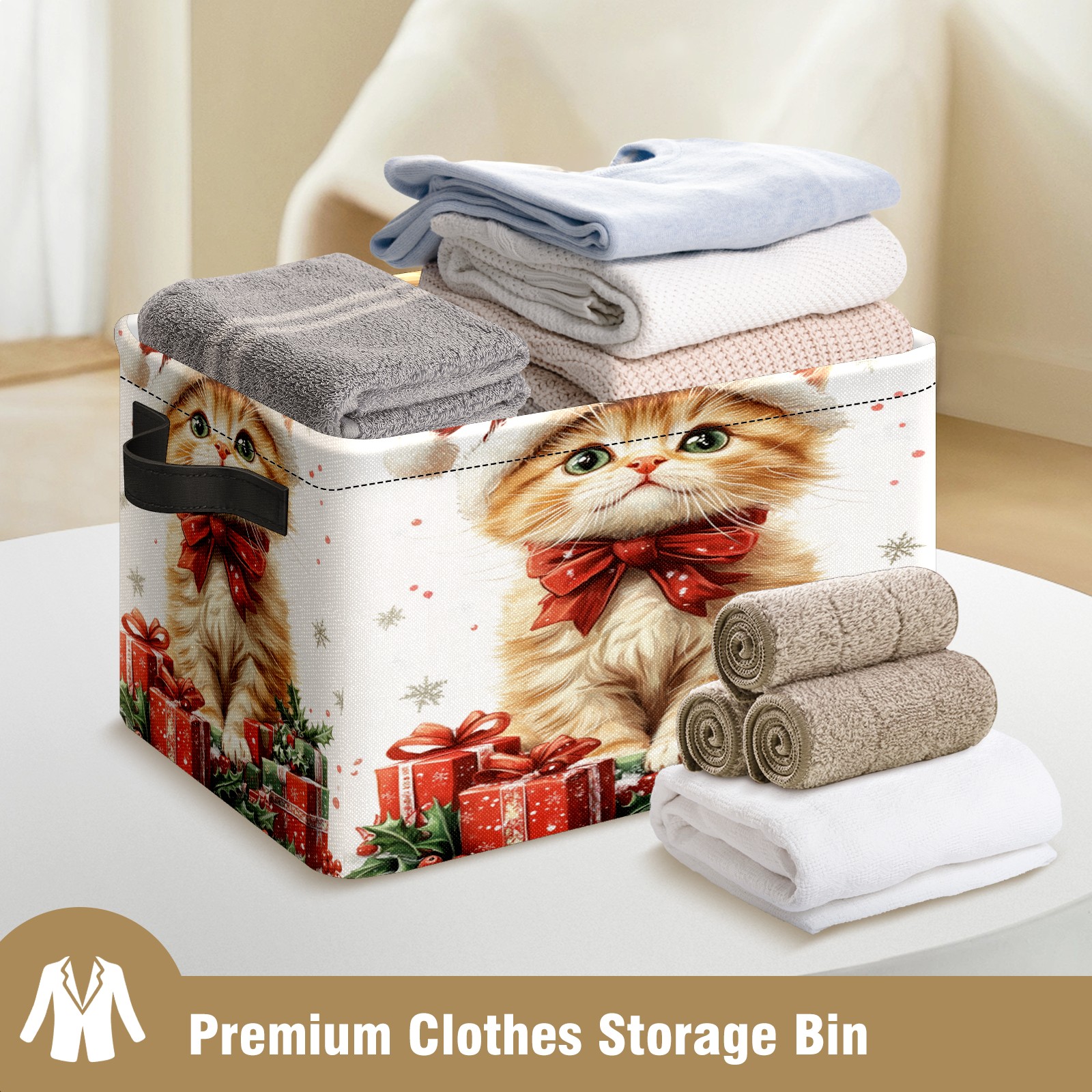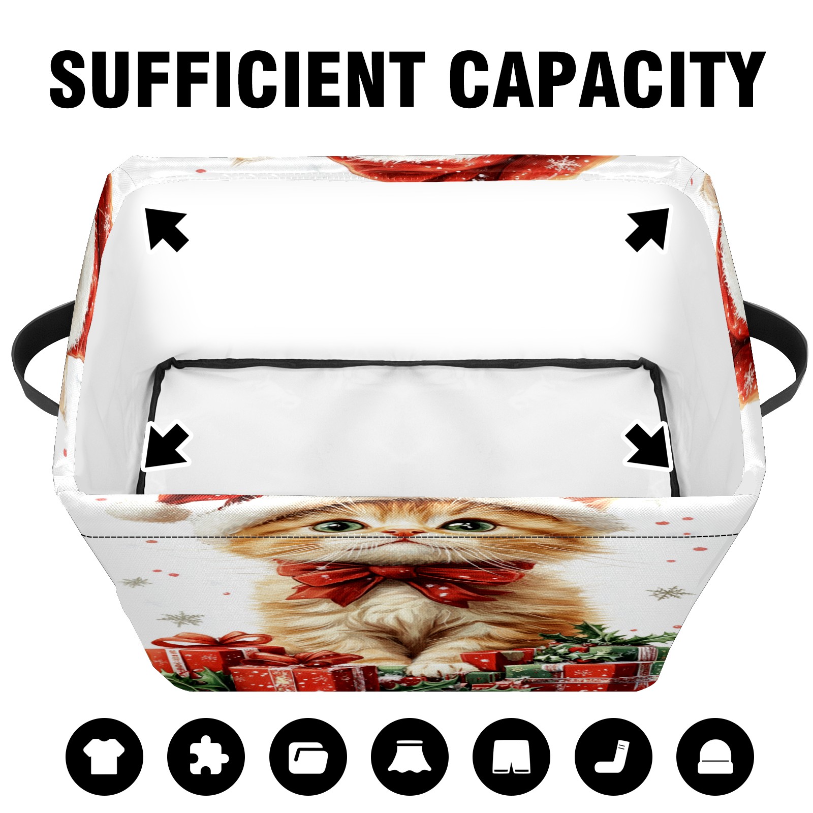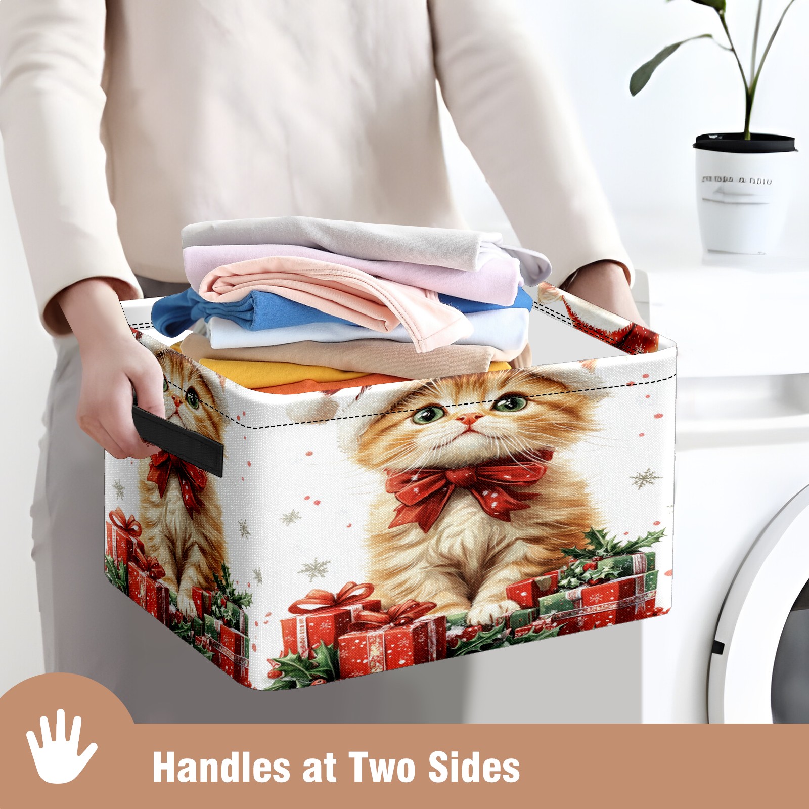 Large Storage Box,Christmas Cat Foldable Storage Baskets with Handles for Organizing Clothes, Gift Storage, Children's Toys