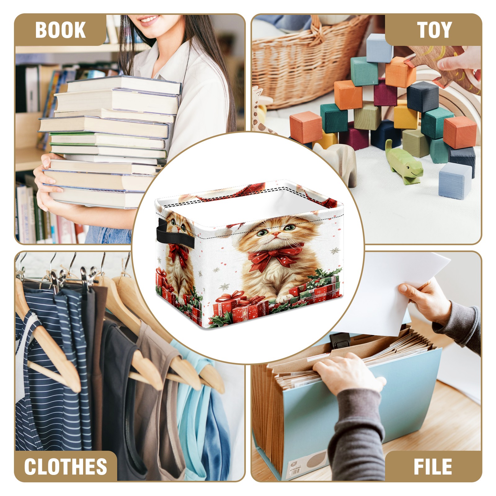<p>This storage basket can be used for a variety of purposes, including bedroom organization baskets, laundry storage boxes, toy storage boxes, bathroom towel cube storage boxes, toilet storage containers, book and magazine storage boxes, holiday decoration storage cubes, living room storage, etc. The spacious size of 10×14×8 inches gives it ample storage capacity. This Christmas-themed storage basket is a great household item that combines practicality with a festive atmosphere! Made of easy-to-clean Oxford cloth, daily dirt can be cleaned by gently wiping with mild soapy water. With a sturdy metal frame and hard bottom support, it ensures a crisp shape when stored, but also needs to avoid machine washing to extend its service life. It is lightweight and flat after folding, taking up no space</p>
