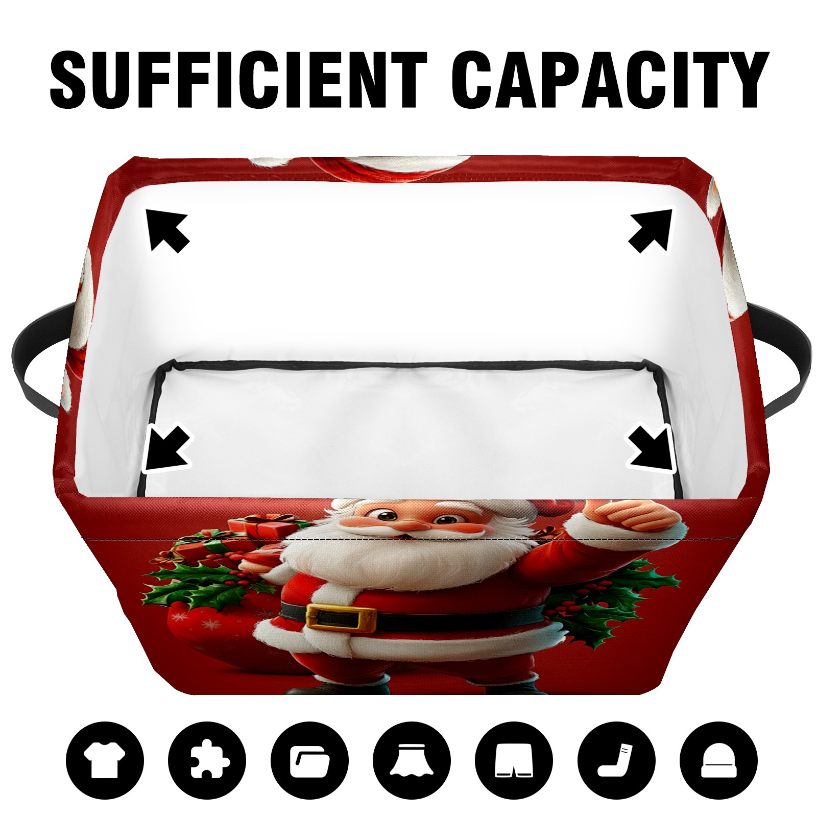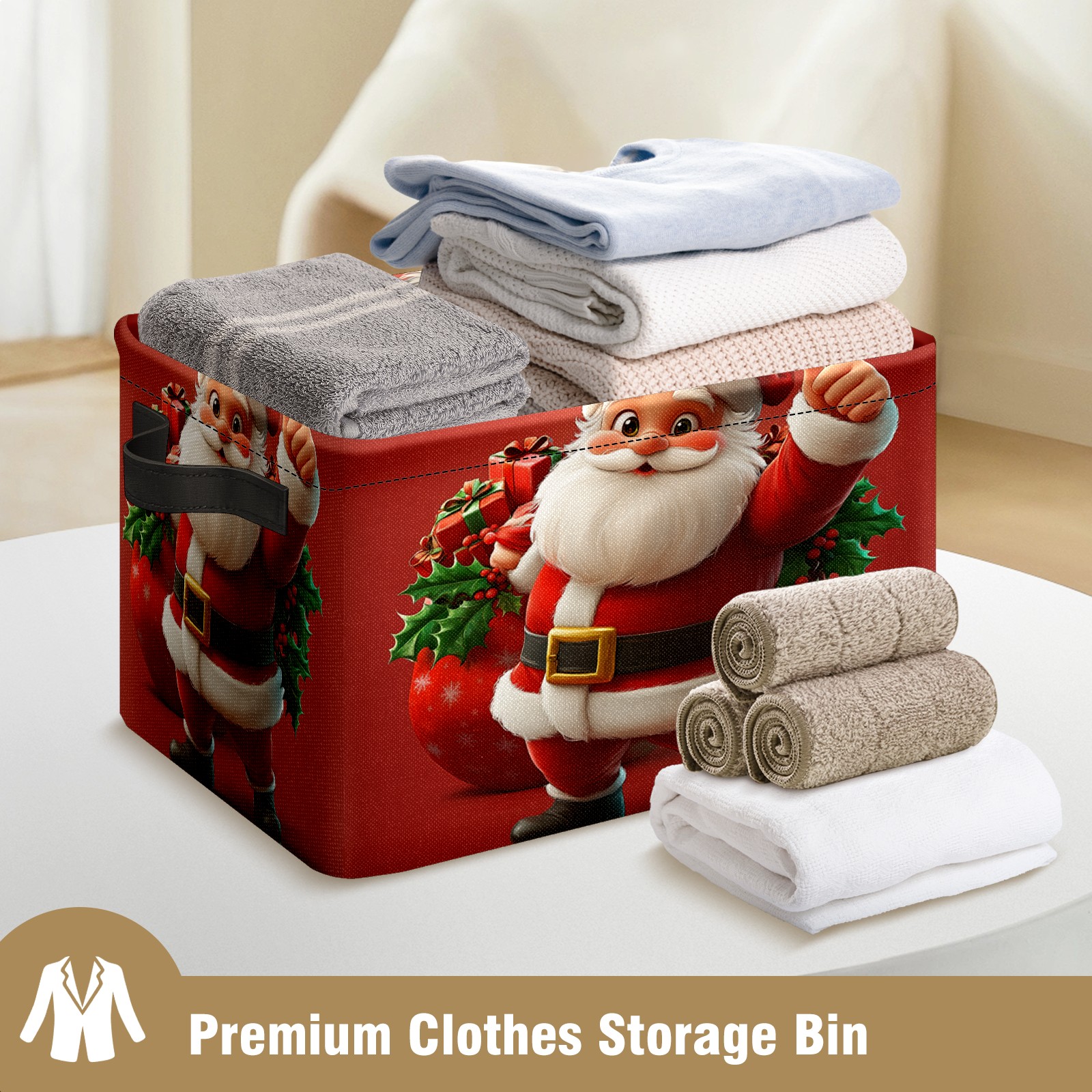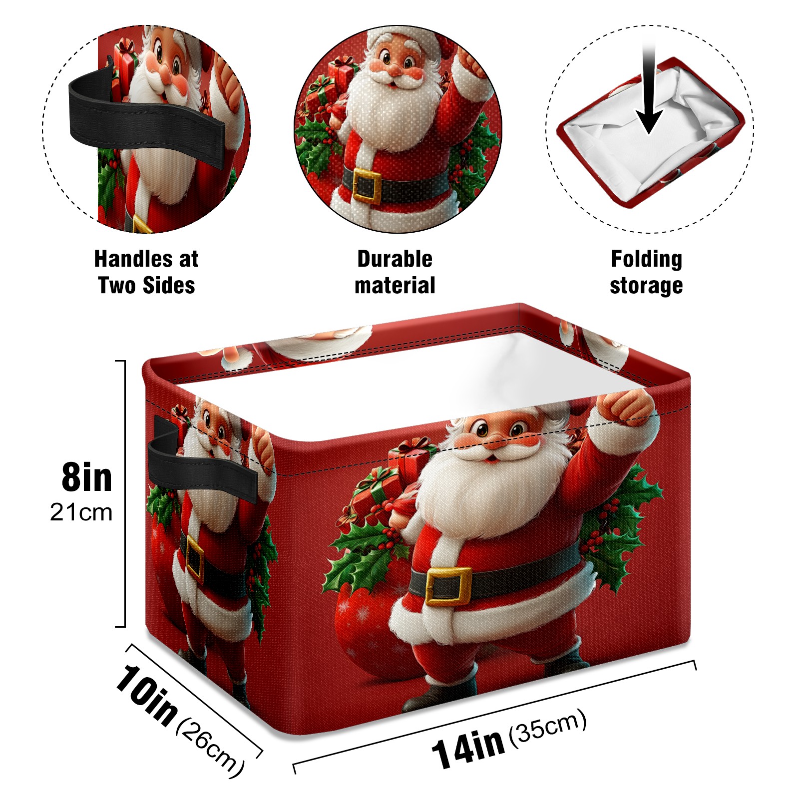 Large Storage Box,Santa Claus Foldable Storage Baskets with Handles for Organizing Clothes, Gift Storage, Children's Toys