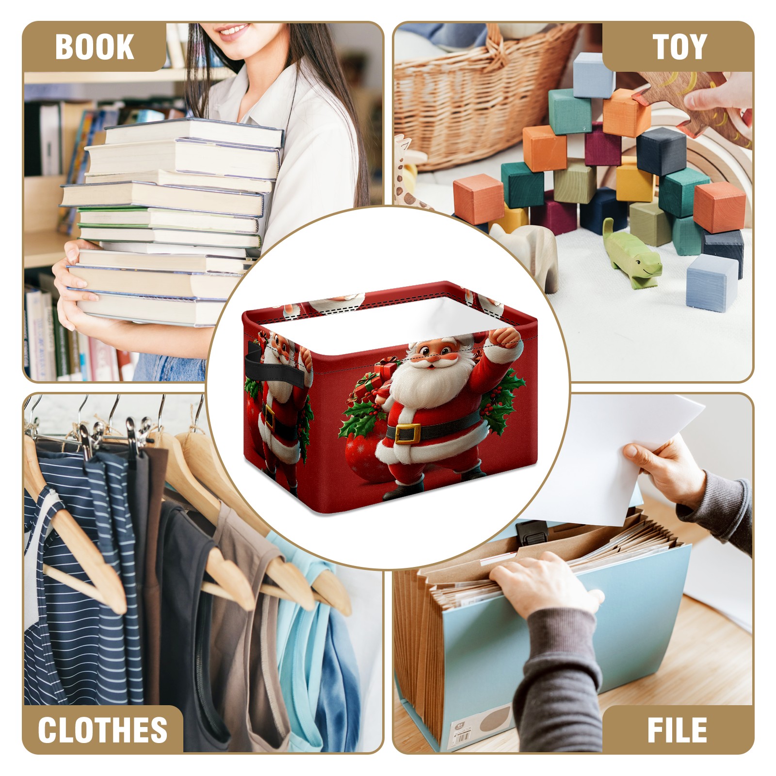 <p>This storage basket can be used for a variety of purposes, including bedroom organization baskets, laundry storage boxes, toy storage boxes, bathroom towel cube storage boxes, toilet storage containers, book and magazine storage boxes, holiday decoration storage cubes, living room storage, etc. The spacious size of 10×14×8 inches gives it ample storage capacity. This Christmas-themed storage basket is a great household item that combines practicality with a festive atmosphere! Made of easy-to-clean Oxford cloth, daily dirt can be cleaned by gently wiping with mild soapy water. With a sturdy metal frame and hard bottom support, it ensures a crisp shape when stored, but also needs to avoid machine washing to extend its service life. It is lightweight and flat after folding, taking up no space</p>