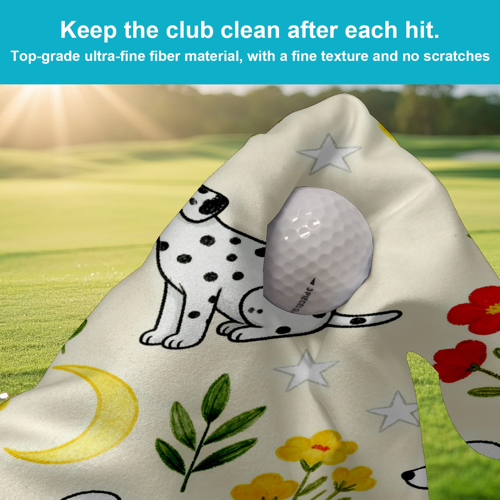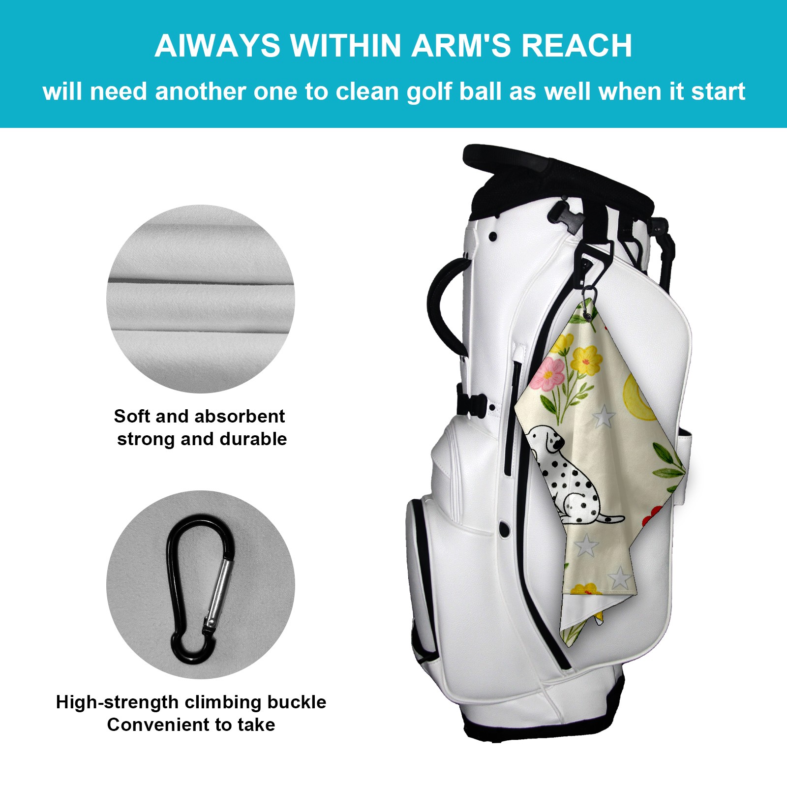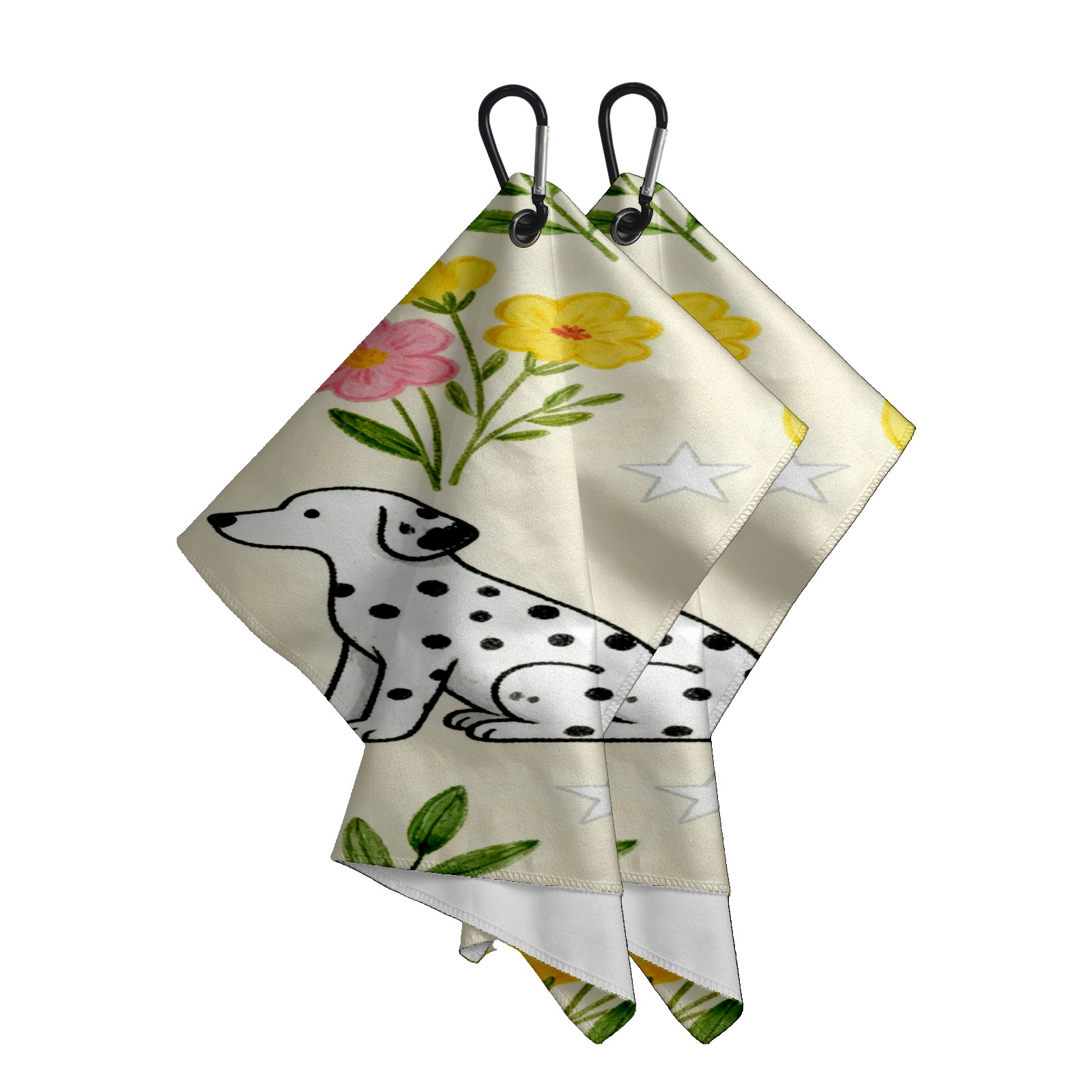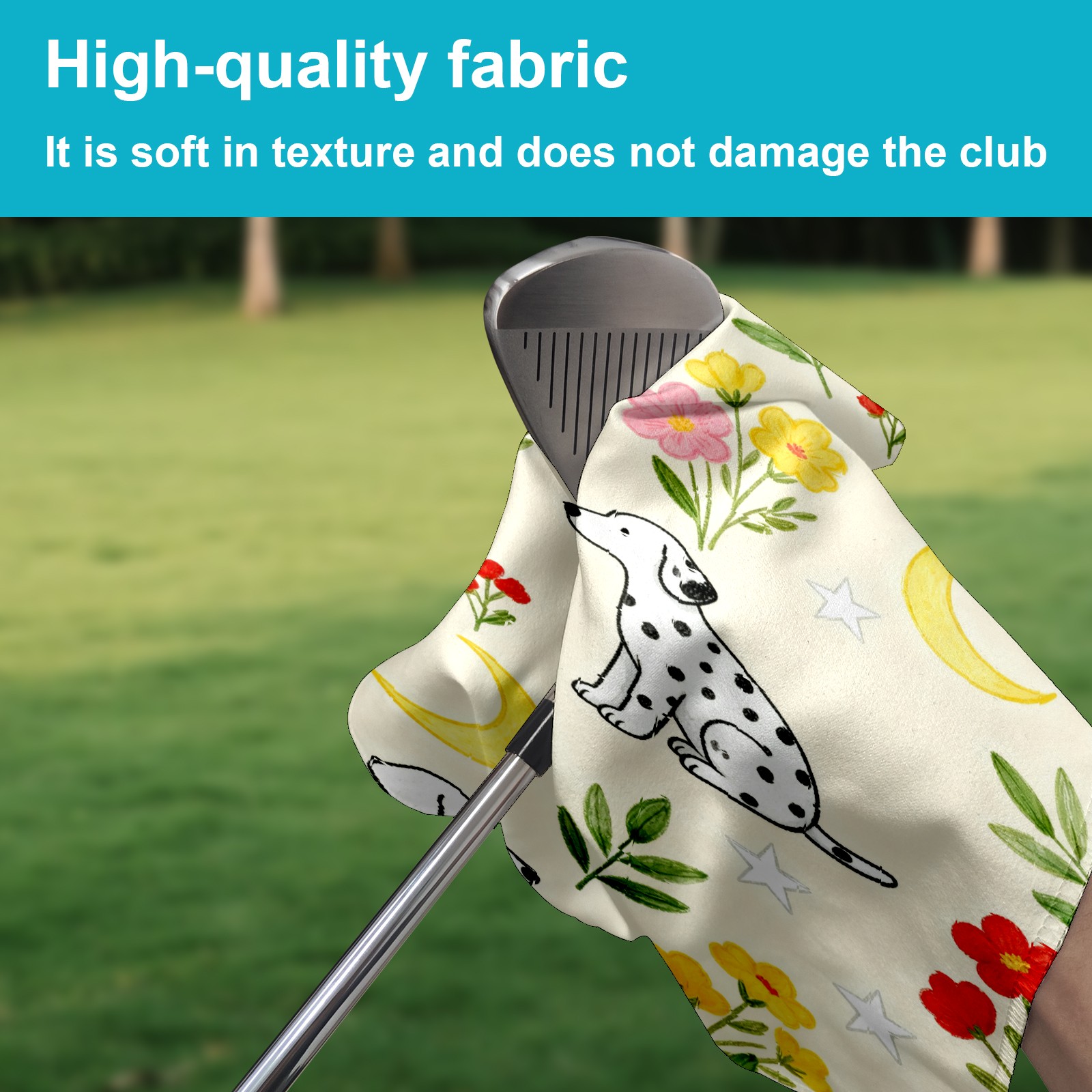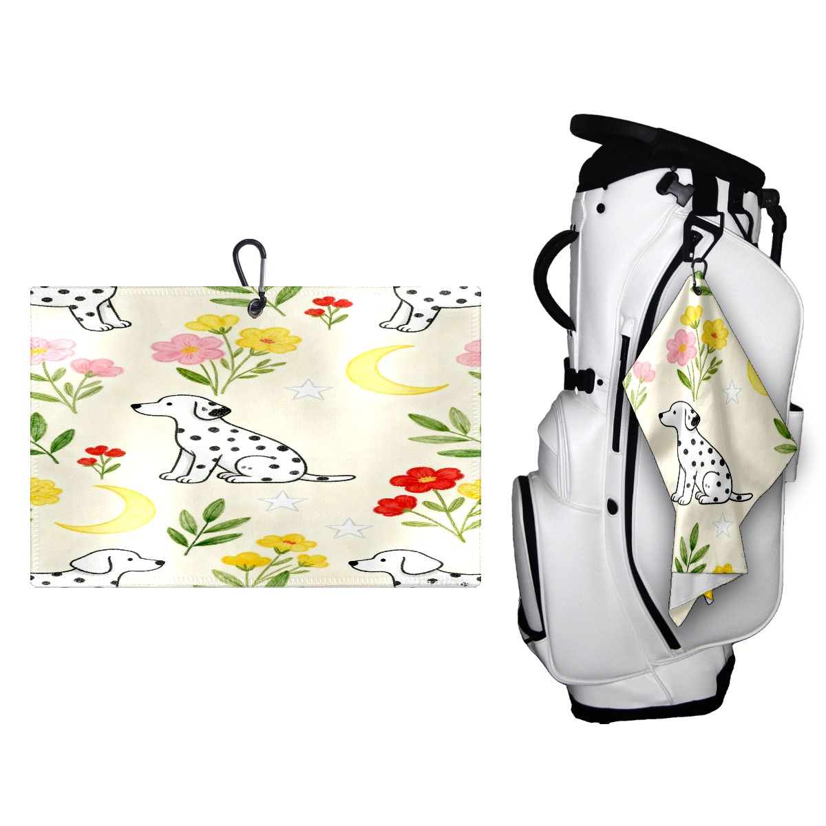 Golf Towel, Absorbent and Fast Drying, Portable and Easy to Store, for Cleaning Club Heads and Balls Dalmatian Flowers
