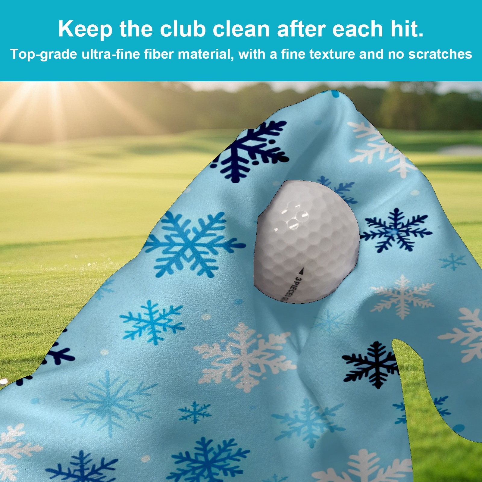 Golf Towel, Absorbent and Fast Drying, Portable and Easy to Store, for Cleaning Club Heads and Balls Blue Snowflake