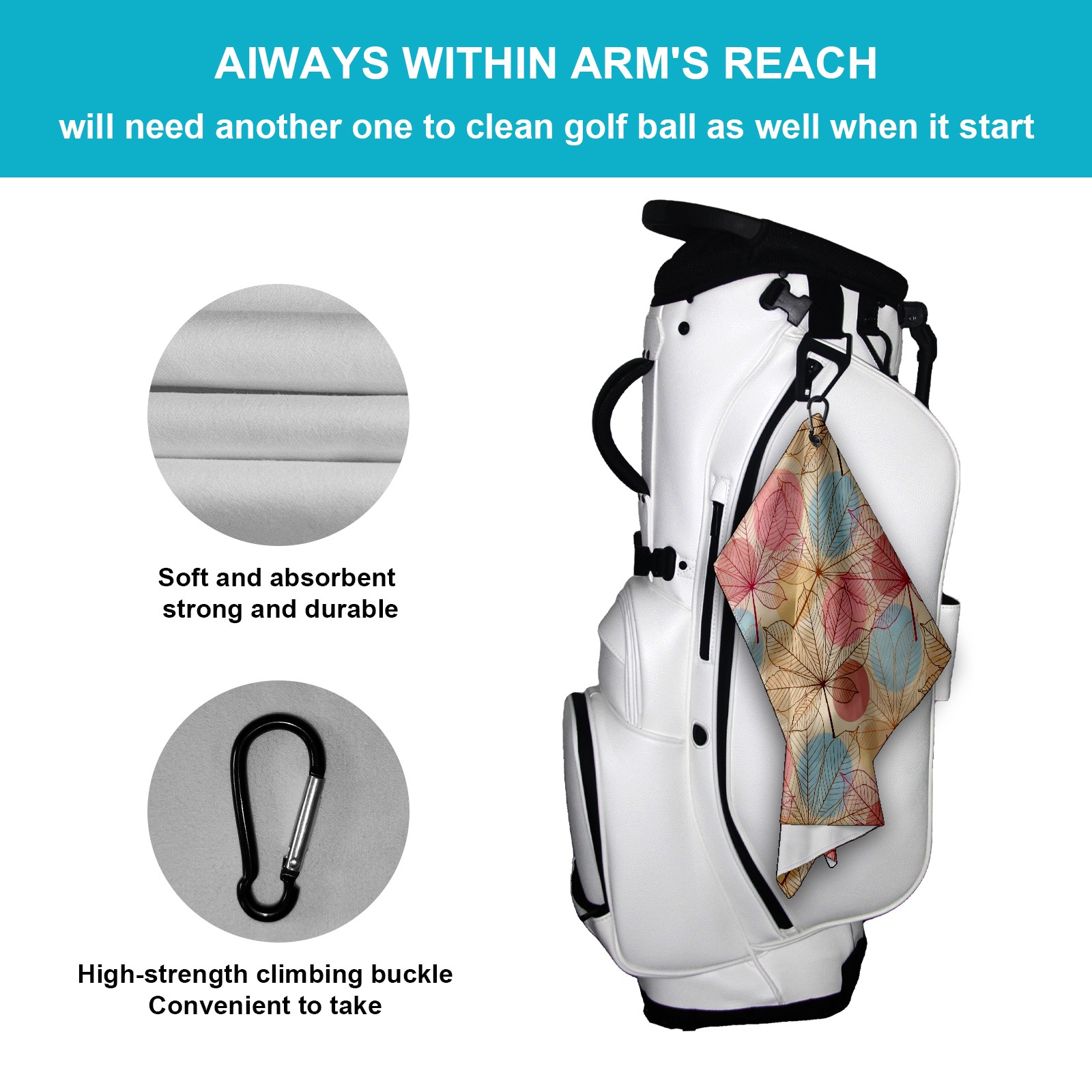 Golf Towel, Absorbent and Fast Drying, Portable and Easy to Store, for Cleaning Club Heads and Balls