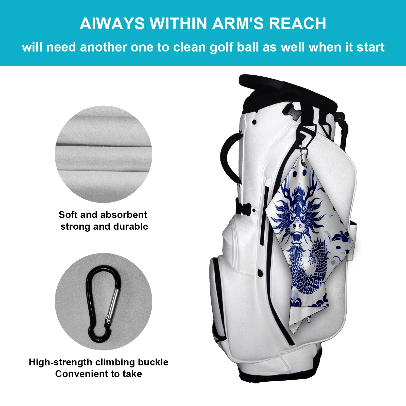 Golf Towel, Absorbent and Fast Drying, Portable and Easy to Store, for Cleaning Club Heads and Balls Dragon